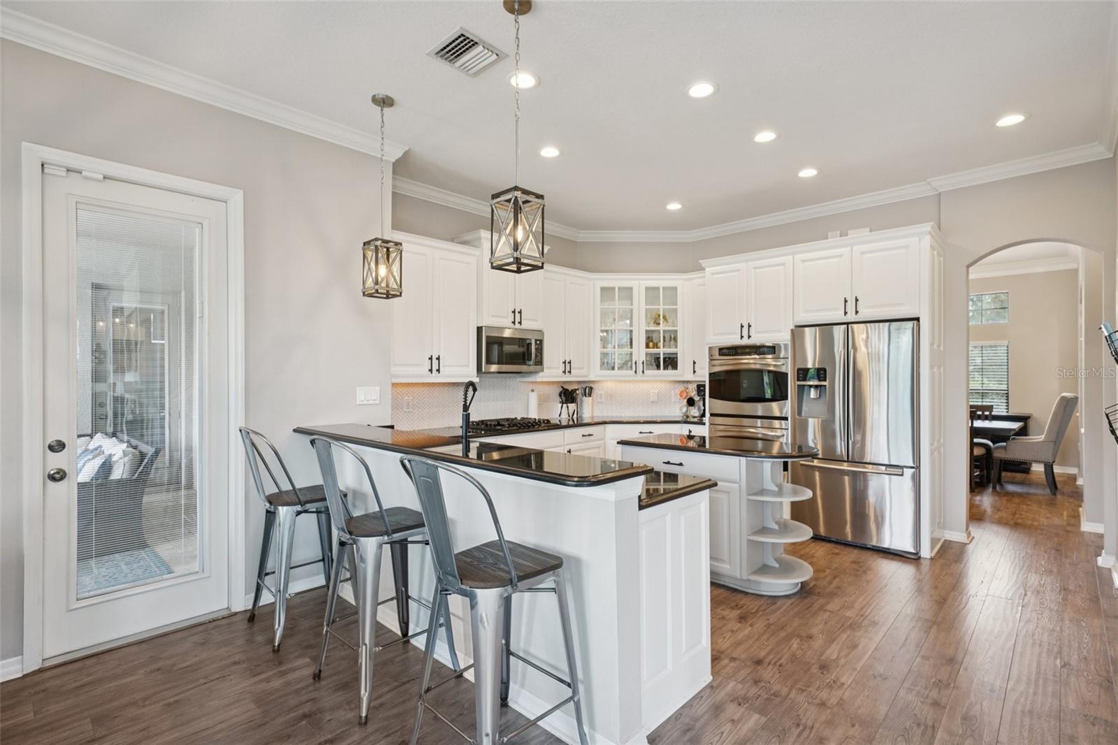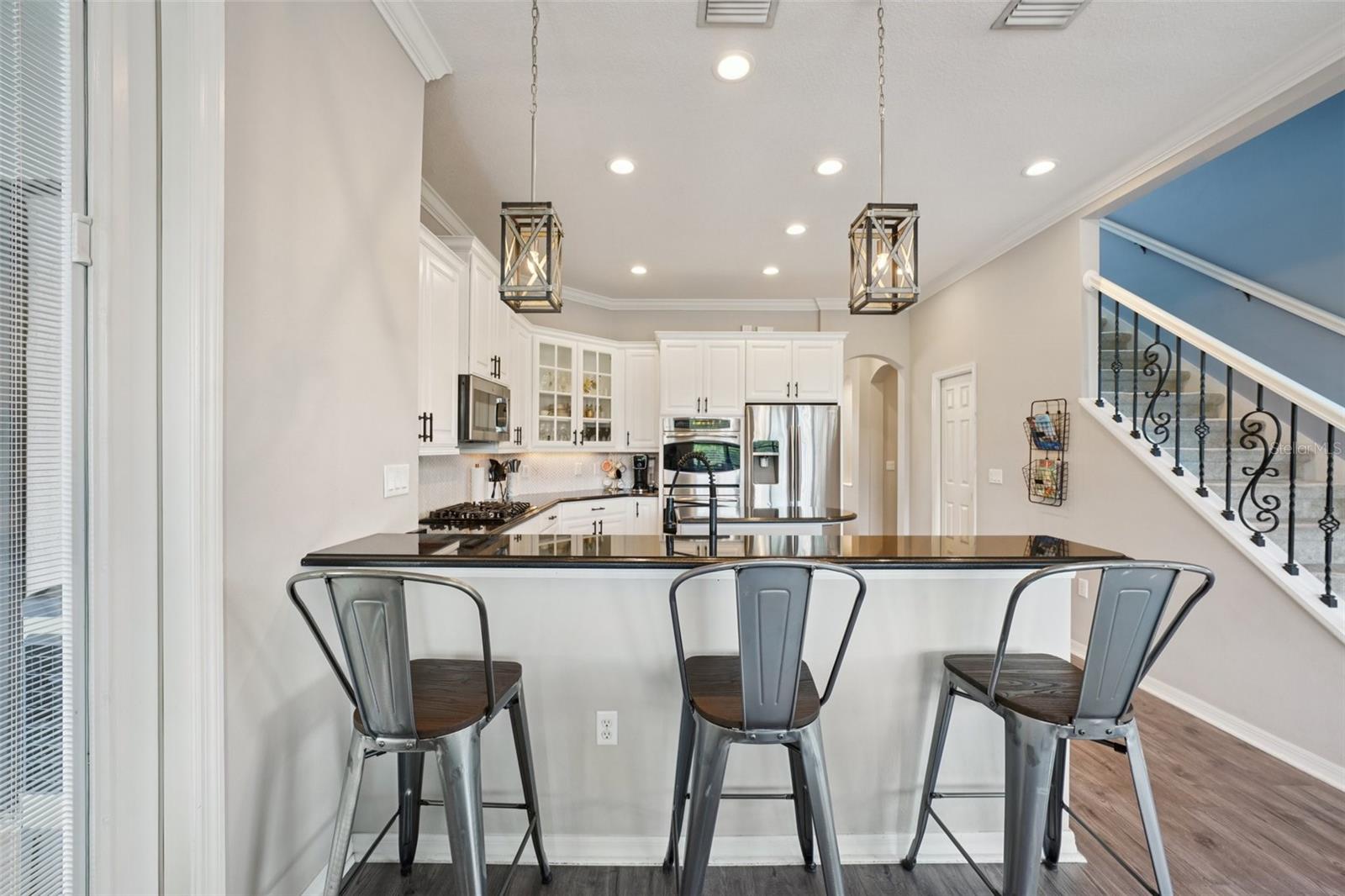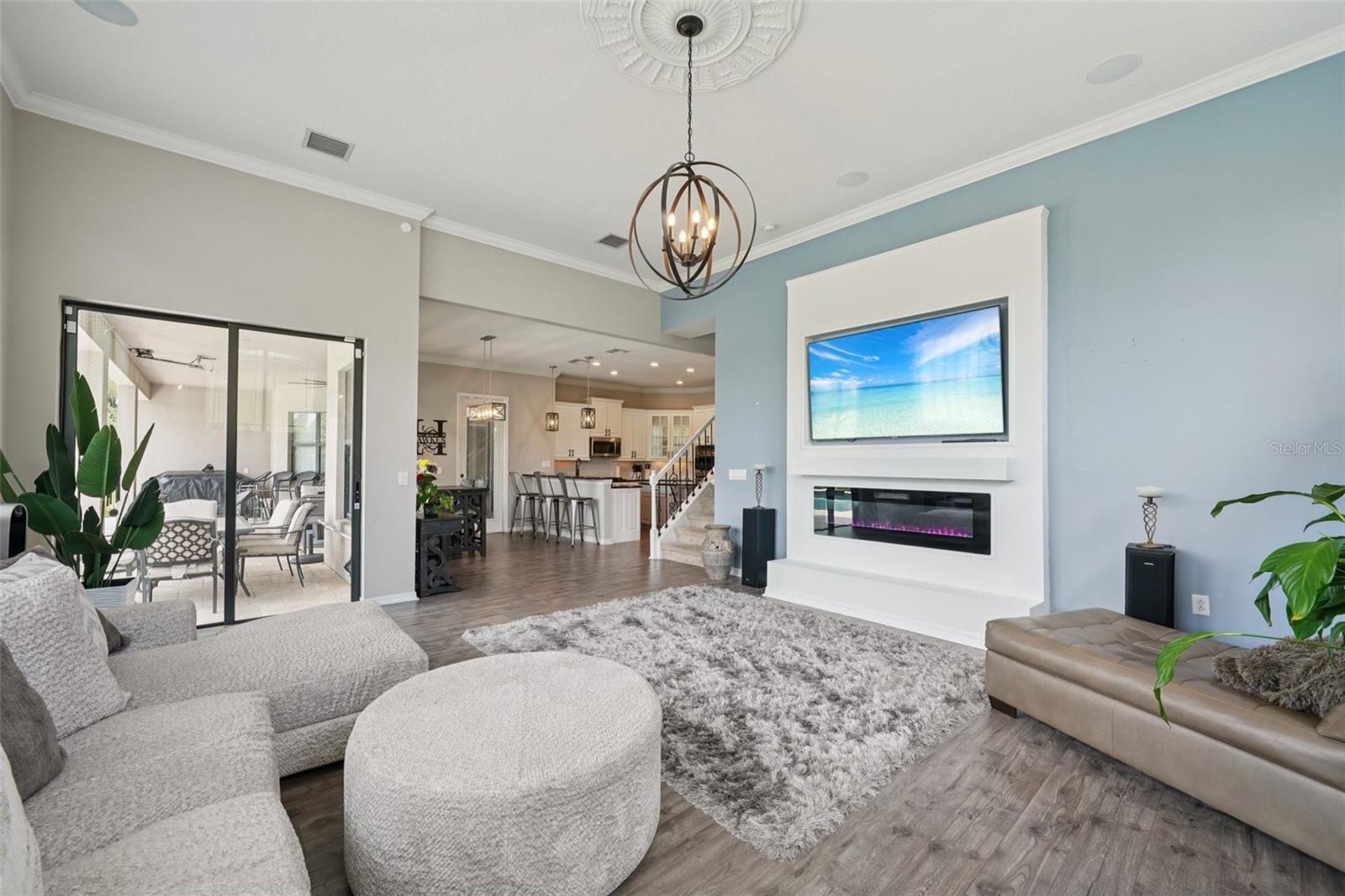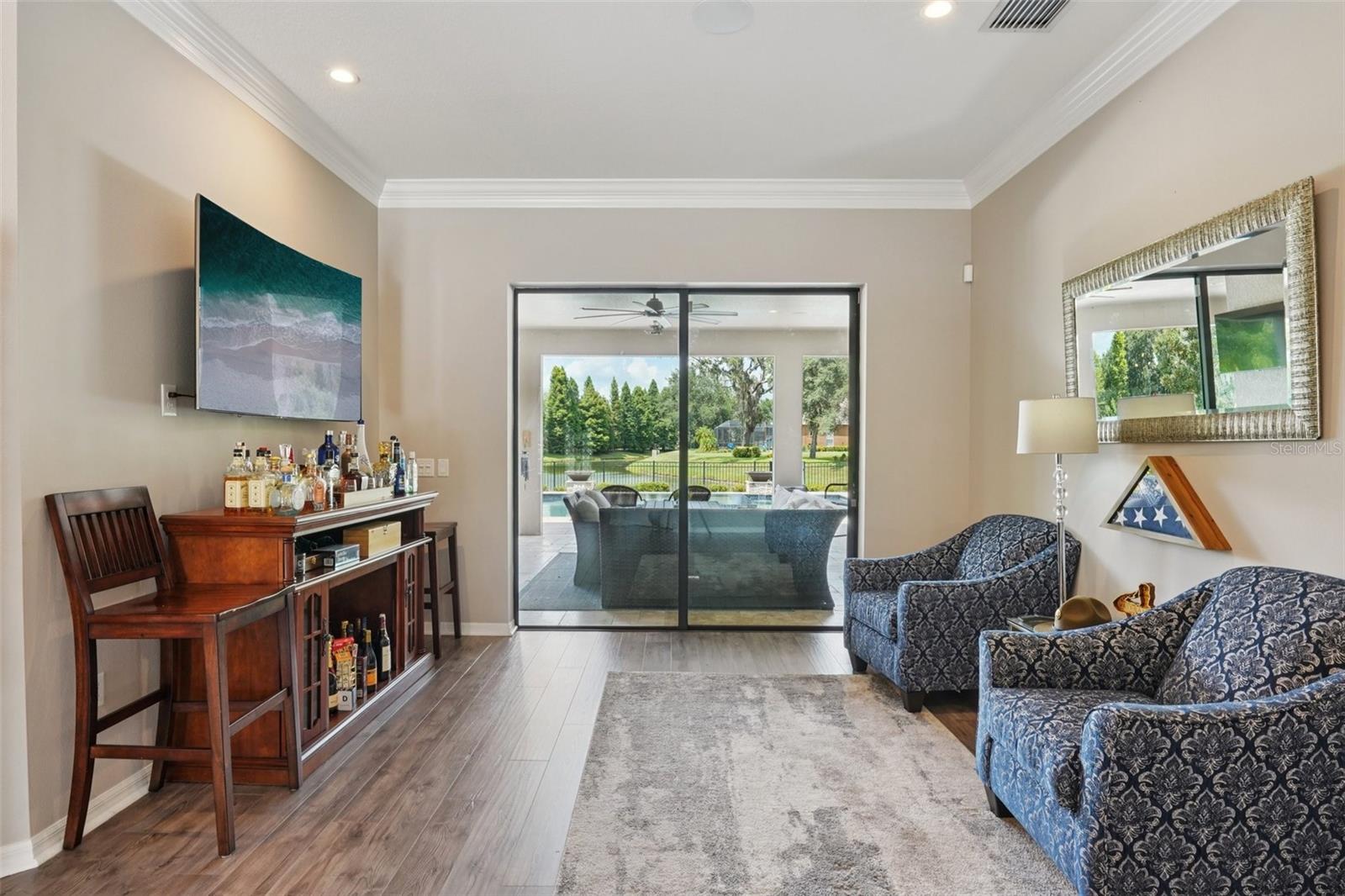 Step inside and stay a while—you might not want to leave. This thoughtfully designed home, set within Stonewood—a gated, secure community with perfectly manicured lawns—offers the kind of space, comfort, and perfect layout for comfortable multi-generational living that makes everyday life feel like a getaway. Over the past two years, key updates have elevated this home even further, including a stunning kitchen and pool remodel, a beautifully crafted living room buildout, and the addition of another spacious bedroom—creating even more room to spread out and settle in. With over 4,500 square feet, seven true bedrooms, three full baths, and two additional half baths (including one right by the pool), this home makes room for everyone—and then some. Whether you're hosting movie night in the oversized home theater with ceiling-mounted surround sound throughout the house, getting in a morning workout in your private gym with commercial-grade equipment, or relaxing poolside beside glowing fire bowls, every corner has been designed with intention and comfort in mind. The kitchen is a cook’s dream, featuring a gas stove, double ovens, and plenty of space to create and connect. And when it’s time to unwind, the primary suite offers a peaceful retreat with double showers, double vanities, two walk-in closets, an extra room that’s ideal for a home office, nursery, or an additional closet—and direct access to the sparkling pool just outside. Practical upgrades make life here even smoother, with a newer roof (2023), a tankless gas water heater, a wired-for-home generator, an electric car charging station in the garage, and spray foam insulation in the walk-in attic. Out back, the travertine-wrapped pool and spa create a resort-like setting with an infinity edge spa, gas fire bowls, and a fire pit—all surrounded by a private, oversized yard. The covered patio is pre-plumbed for an outdoor kitchen and already set up with multiple TVs and built-in ceiling audio—ready for quiet mornings or game-day gatherings. The private rear gate opens to a peaceful pond, perfect for a little fishing or just enjoying the view. There’s even a third-floor bonus room with a bay window overlooking the water, offering yet another serene spot to call your own. From big-ticket upgrades to thoughtful touches, this home offers something truly special at every turn. Come see it in person—you’ll feel it the moment you walk through the door.