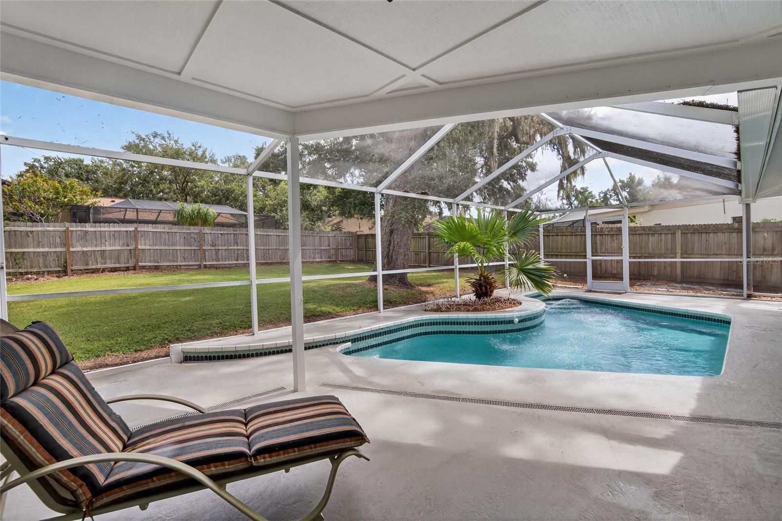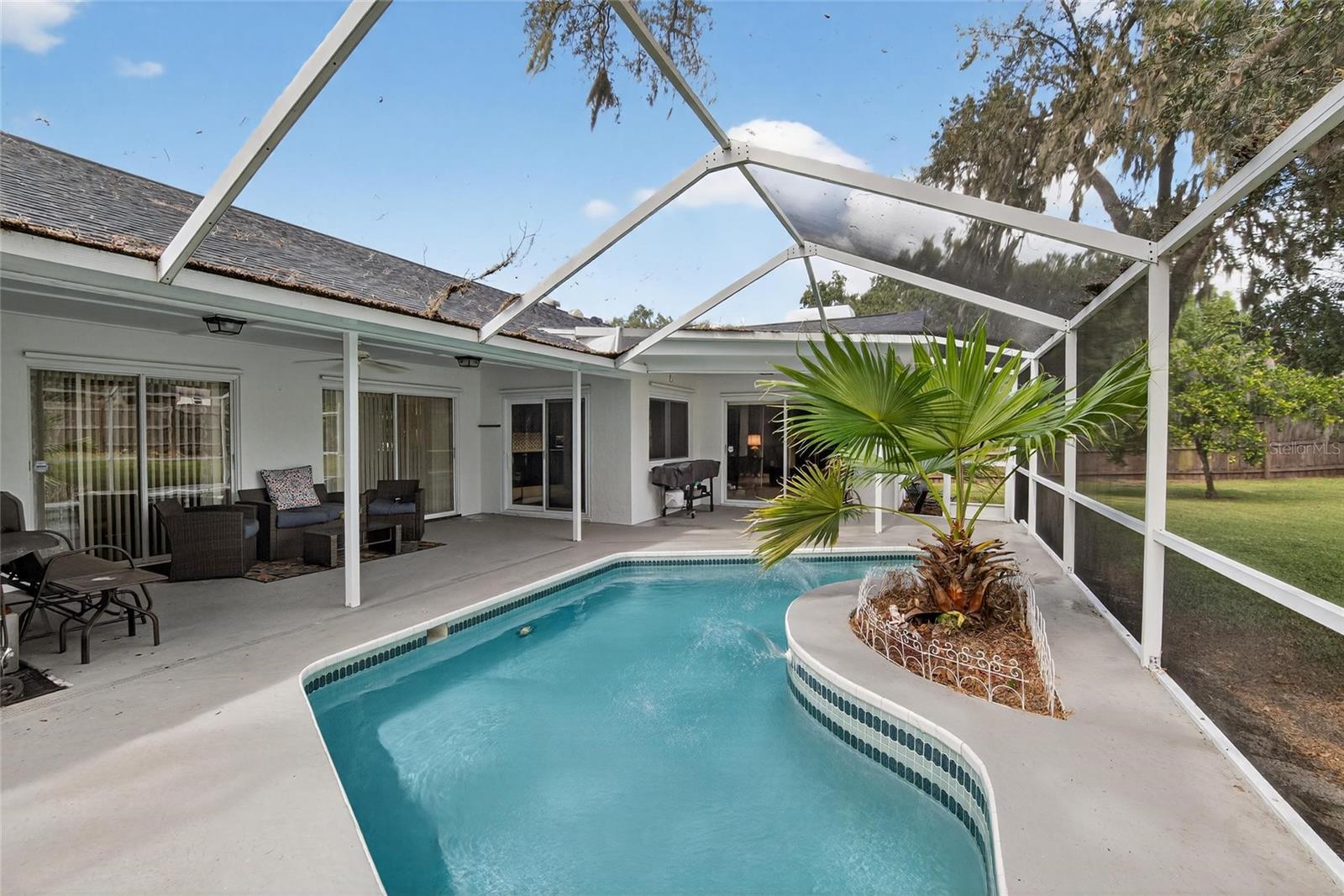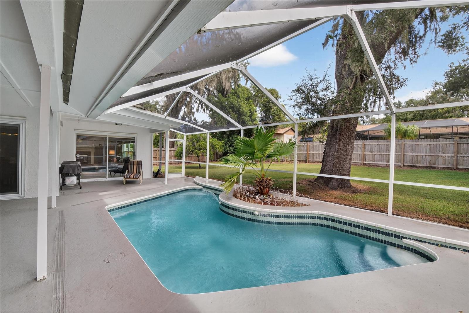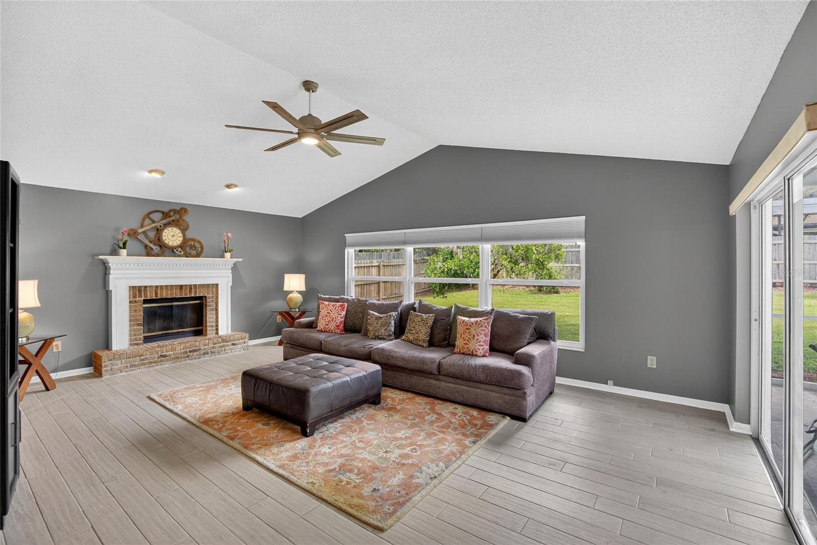 This lovely home offers 4 bedrooms, 2 bathrooms, formal living room, formal dining room, large kitchen, dinette area, family room and dedicated laundry room. Located in the heart of Brandon allowing quick access to Rte 60 & I-75, 30 minutes to MacDill Air Force base & Busch Gardens, and under an hour to Orlando's theme parks. As you enter the home you will appreciate the vaulted ceilings in the living room (which includes a slider to the lanai) and the dining room. To the right of the home you will find the generously sized master bedroom which includes a slider to the lanai, an ensuite with a large remodeled stand alone shower (2023), double vanity and double closets. To the left of the home, and conveniently located off the dining room, you will find the remodeled kitchen which includes new cabinets - with a pantry cabinet and numerous large storage drawers, and new quartz countertops, as well as a generously sized family room with a wood burning fireplace and slider to the screened lanai. Rounding out the left side of the home you will find 2 additional bedrooms, a full bathroom and a laundry room. Exiting through one of the 3 sliding glass doors you will find the screen lanai, sparkling swimming pool and sprawling backyard. The outdoor area provides you with the perfect spot to gather with family and friends. Upgrades/amenities include: Luxury vinyl flooring & ceramic tile 2023, Roof 2021, AC 2020, Windows (partial) 2018, Hurricane shutters, Pool pump - heater - filter - resurfacing 2017, newer lighting and ceiling fans, 2 sun tubes (natural lighting - kitchen), Updated 5 zone sprinkler system, Ring doorbell & exterior camera, Orange trees.