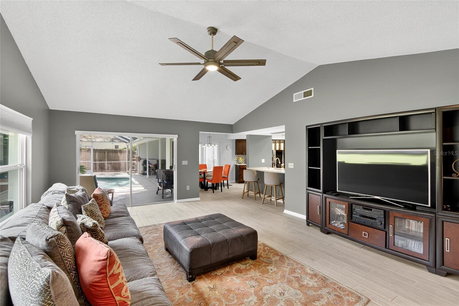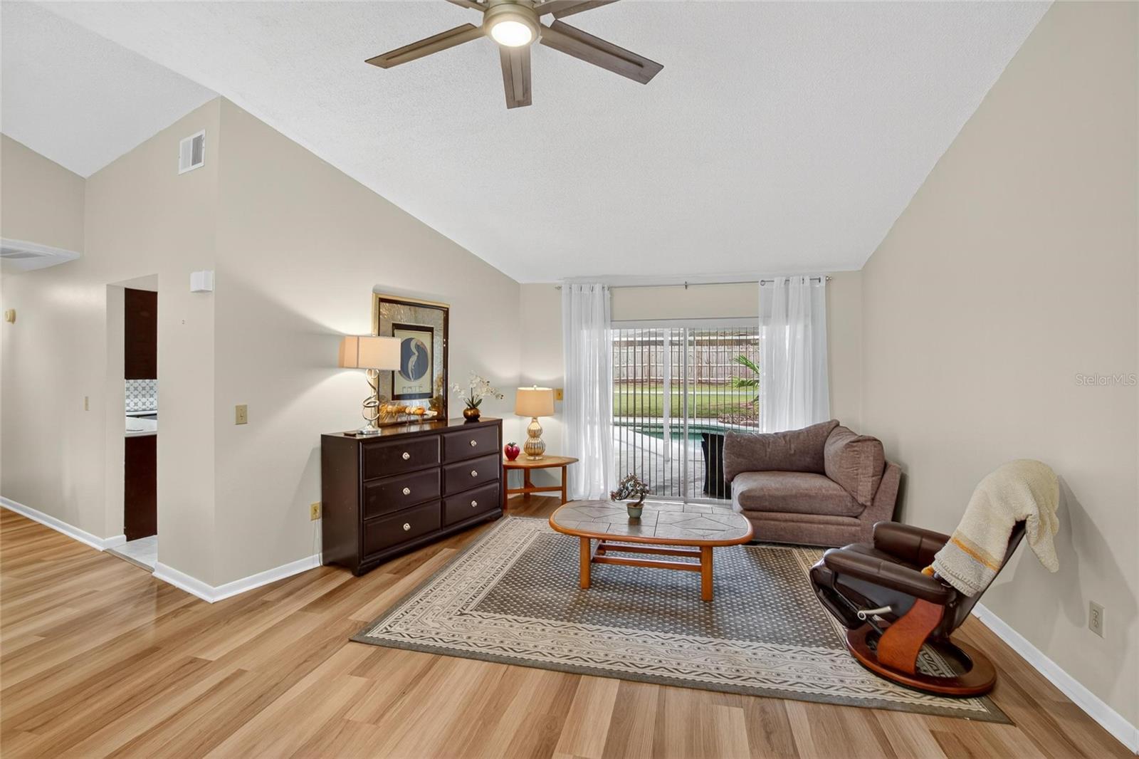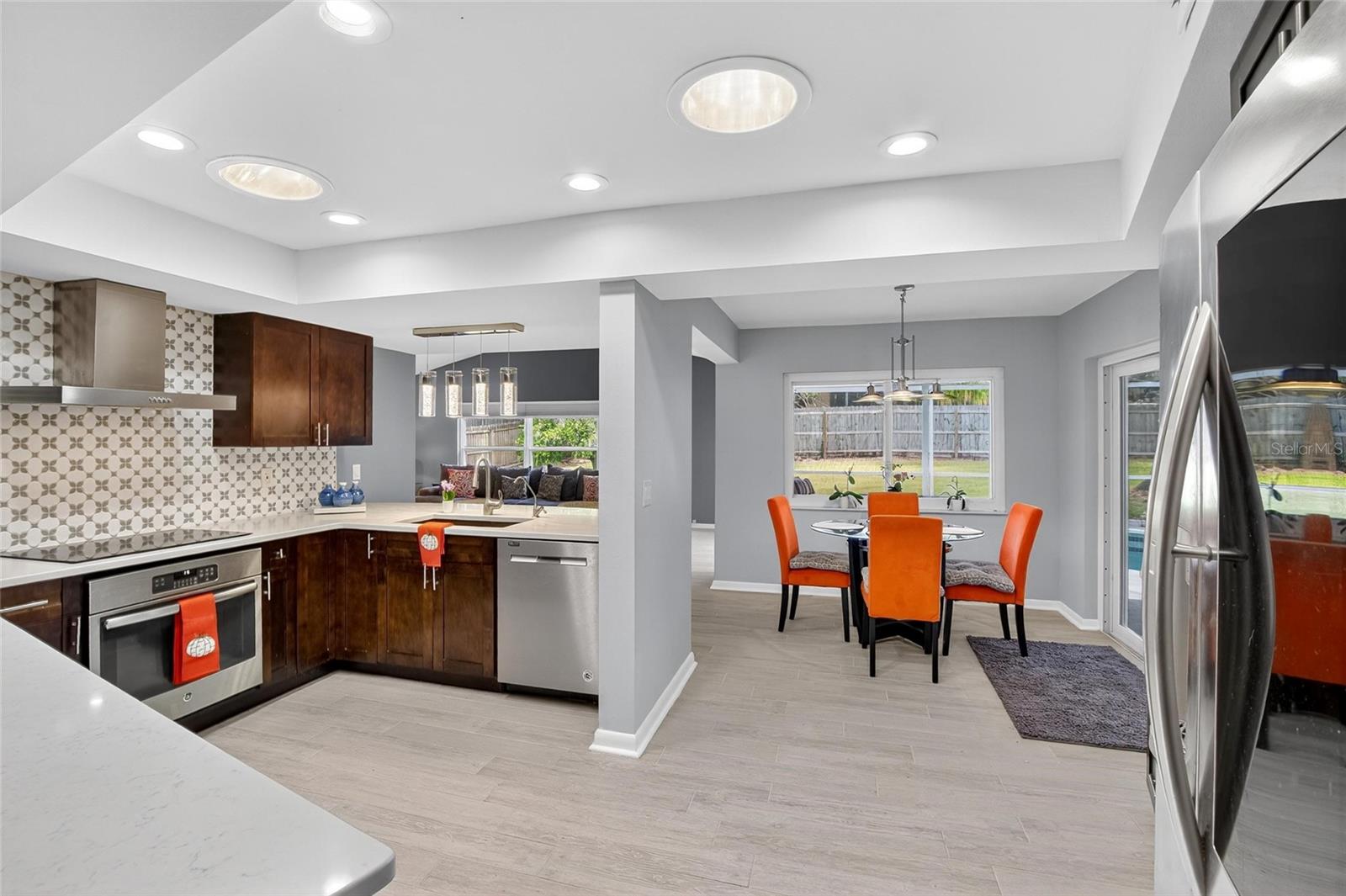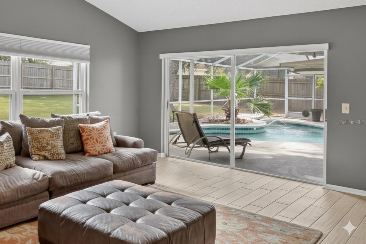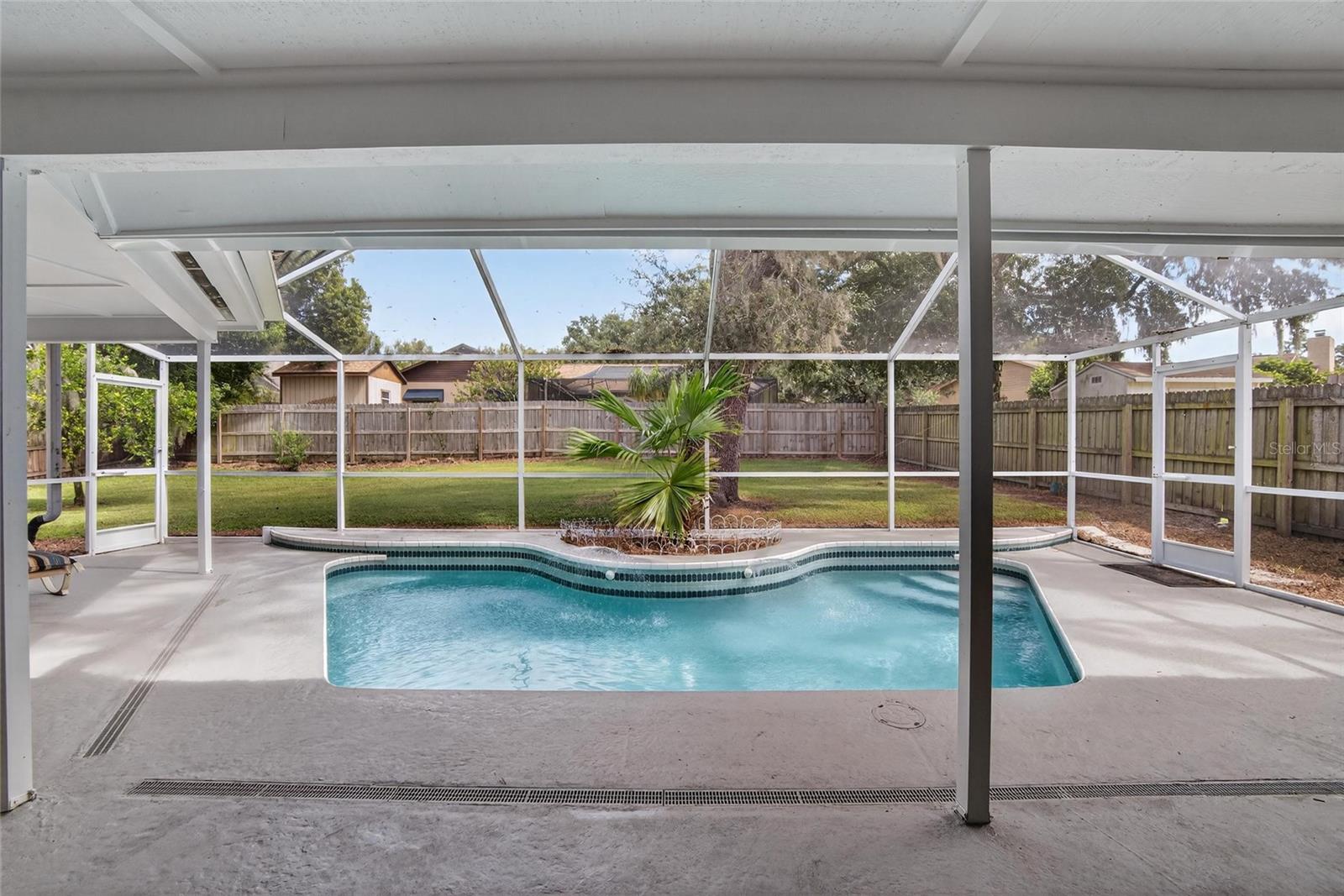 This lovely home offers 4 bedrooms, 2 bathrooms, formal living room, formal dining room, large kitchen, dinette area, family room and dedicated laundry room. Located in the heart of Brandon allowing quick access to Rte 60 & I-75, 30 minutes to MacDill Air Force base & Busch Gardens, and under an hour to Orlando's theme parks. As you enter the home you will appreciate the vaulted ceilings in the living room (which includes a slider to the lanai) and the dining room. To the right of the home you will find the generously sized master bedroom which includes a slider to the lanai, an ensuite with a large remodeled stand alone shower (2023), double vanity and double closets. To the left of the home, and conveniently located off the dining room, you will find the remodeled kitchen which includes new cabinets - with a pantry cabinet and numerous large storage drawers, and new quartz countertops, as well as a generously sized family room with a wood burning fireplace and slider to the screened lanai. Rounding out the left side of the home you will find 2 additional bedrooms, a full bathroom and a laundry room. Exiting through one of the 3 sliding glass doors you will find the screen lanai, sparkling swimming pool and sprawling backyard. The outdoor area provides you with the perfect spot to gather with family and friends. Upgrades/amenities include: Luxury vinyl flooring & ceramic tile 2023, Roof 2021, AC 2020, Windows (partial) 2018, Hurricane shutters, Pool pump - heater - filter - resurfacing 2017, newer lighting and ceiling fans, 2 sun tubes (natural lighting - kitchen), Updated 5 zone sprinkler system, Ring doorbell & exterior camera, Orange trees.