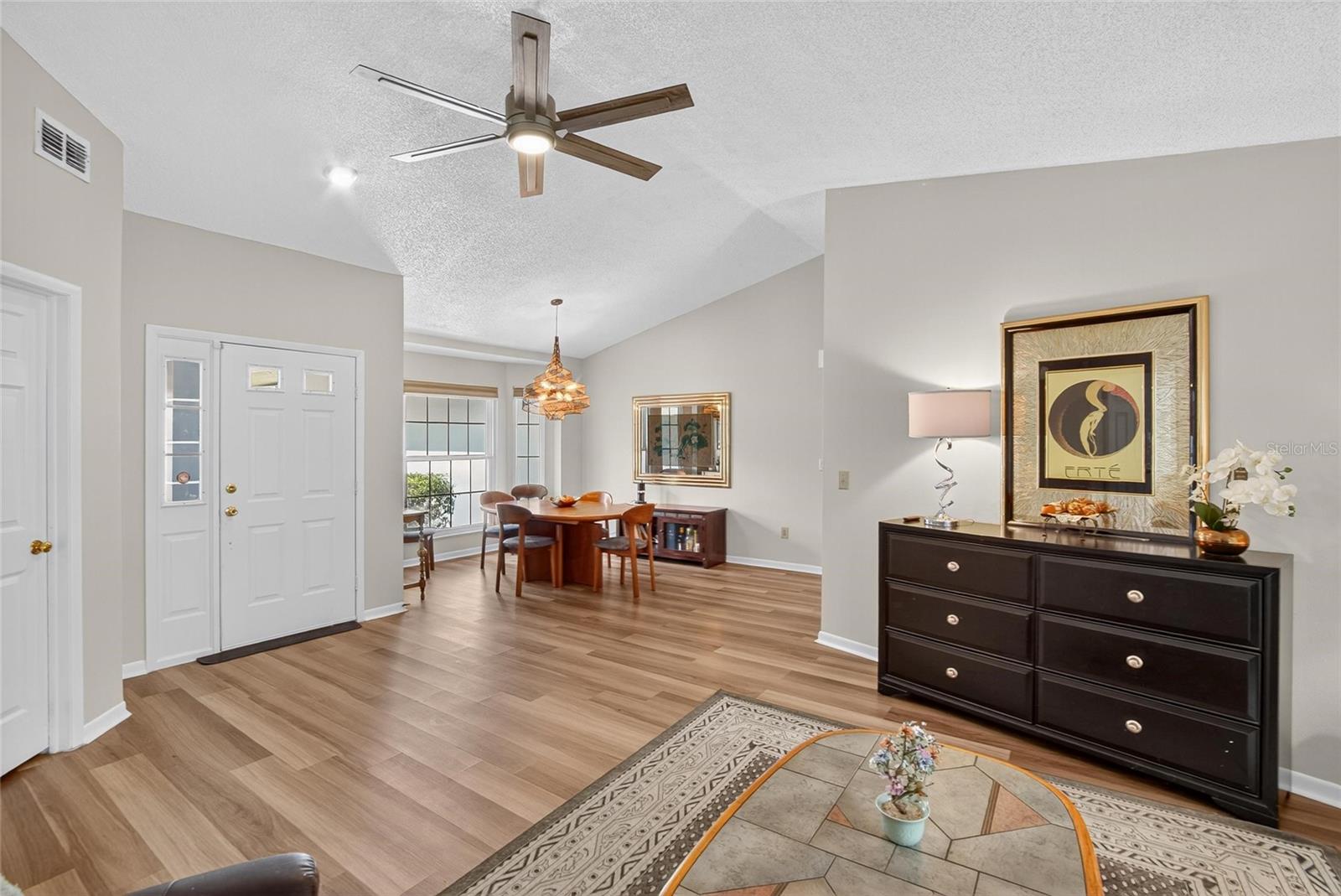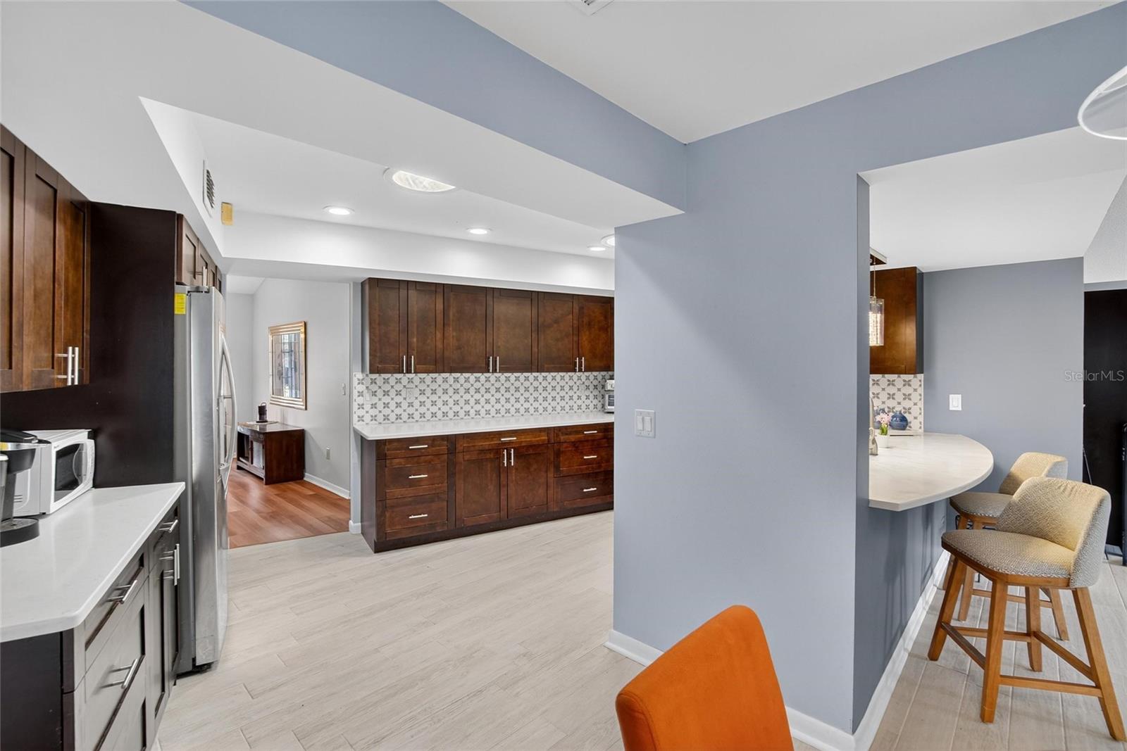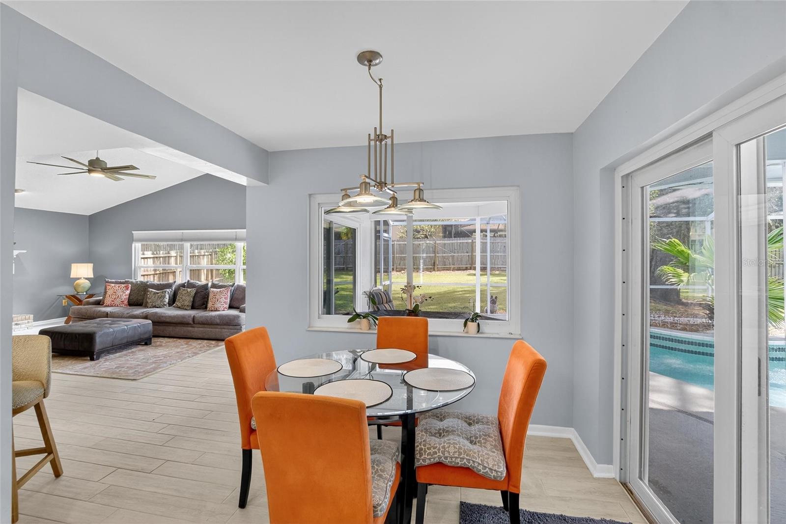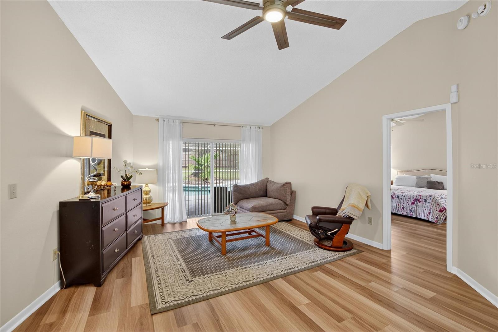 This lovely home offers 4 bedrooms, 2 bathrooms, formal living room, formal dining room, large kitchen, dinette area, family room and dedicated laundry room. Located in the heart of Brandon allowing quick access to Rte 60 & I-75, 30 minutes to MacDill Air Force base & Busch Gardens, and under an hour to Orlando's theme parks. As you enter the home you will appreciate the vaulted ceilings in the living room (which includes a slider to the lanai) and the dining room. To the right of the home you will find the generously sized master bedroom which includes a slider to the lanai, an ensuite with a large remodeled stand alone shower (2023), double vanity and double closets. To the left of the home, and conveniently located off the dining room, you will find the remodeled kitchen which includes new cabinets - with a pantry cabinet and numerous large storage drawers, and new quartz countertops, as well as a generously sized family room with a wood burning fireplace and slider to the screened lanai. Rounding out the left side of the home you will find 2 additional bedrooms, a full bathroom and a laundry room. Exiting through one of the 3 sliding glass doors you will find the screen lanai, sparkling swimming pool and sprawling backyard. The outdoor area provides you with the perfect spot to gather with family and friends. Upgrades/amenities include: Luxury vinyl flooring & ceramic tile 2023, Roof 2021, AC 2020, Windows (partial) 2018, Hurricane shutters, Pool pump - heater - filter - resurfacing 2017, newer lighting and ceiling fans, 2 sun tubes (natural lighting - kitchen), Updated 5 zone sprinkler system, Ring doorbell & exterior camera, Orange trees.
