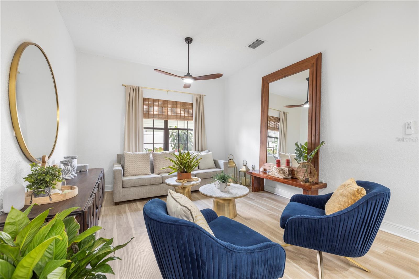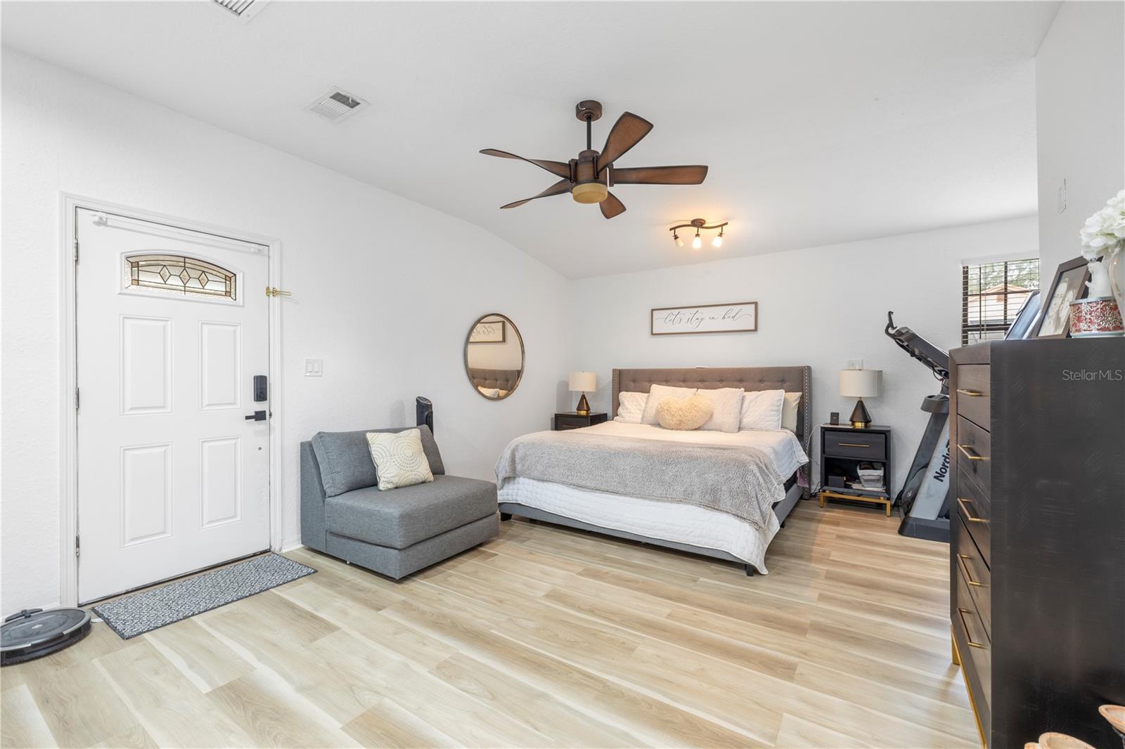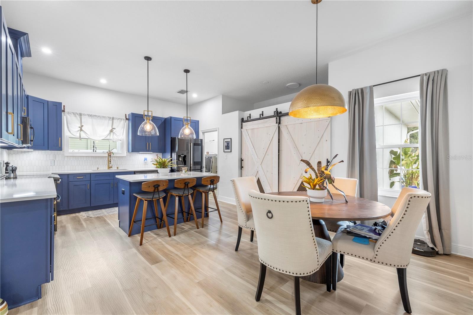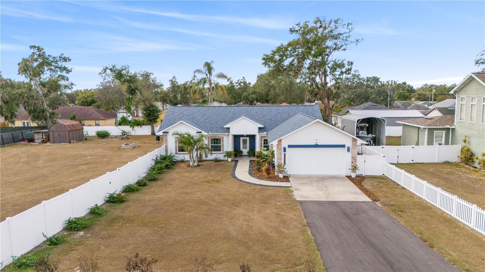 Discover 1120 Moms Way, a rare combination of privacy, elegance, and convenience. This beautifully cared-for 4-bedroom home (including a versatile bedroom/flex-family room) features two en-suite bedrooms, 3.1 bathrooms, no HOA or CDD, and sits on nearly ¾ of an acre, offering exceptional space for parking, outdoor living, or future expansion. This property shines with major upgrades, including: New Roof (2024), Impact Windows (2025), Newly Paved Road (2025), New Engineered Flooring, New LED Interior Lighting, Fresh Premium Sherwin-Williams Interior Paint (2024), New Pergola + Electrical (2025), Expanded Kitchen Pantry, Septic Drained (2024), and A/C unit installed in 2022 and serviced in 2025 with UV lights. Home comes equipped with surveillance wiring and five brand-new 4K security cameras for added peace of mind. The designer-upgraded kitchen impresses with Genuine Italian Calacatta marble countertops, an Italian marble backsplash, modern open shelving, upgraded pendant lighting, and an exterior-vented hood. Both refrigerators, washer, and dryer are included, offering immediate convenience. Perfectly located near top dining, shopping, and entertainment options, this residence provides the ideal balance of comfort and accessibility. Immaculate, move-in ready, and truly a must-see, homes like this are hard to find.