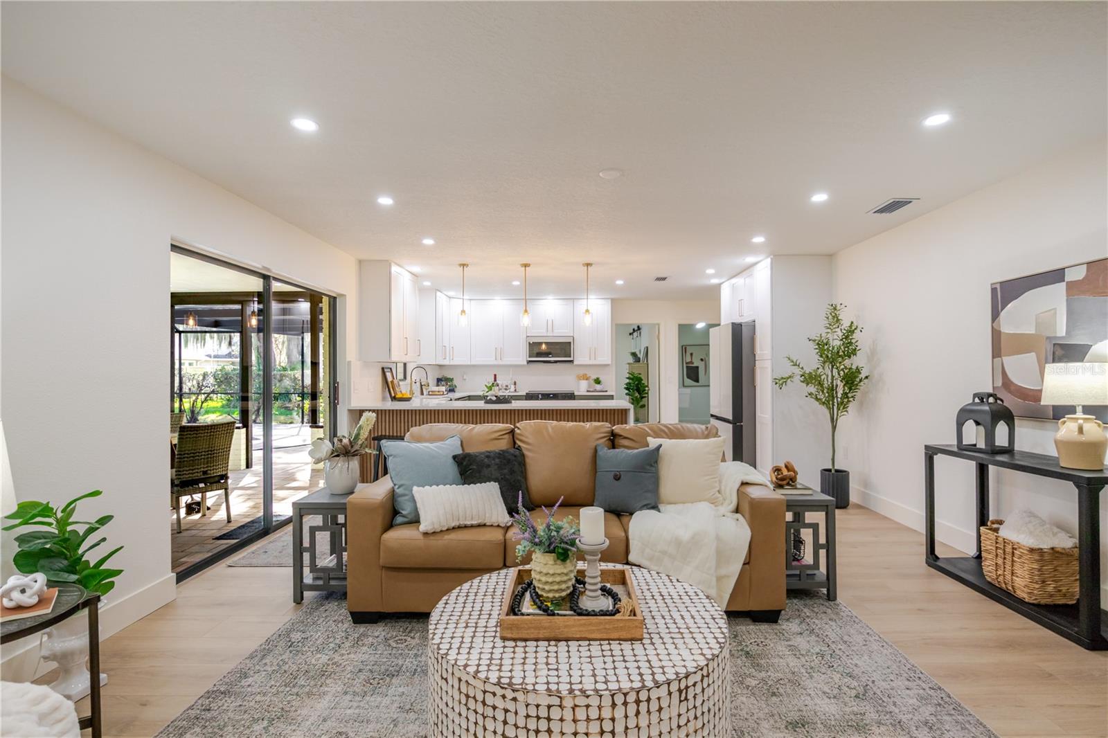 Welcome home to this spacious 4-bedroom, 2-bath pool home nestled in the desirable Oak Landing neighborhood of Brandon. Known for its quiet streets, distinctive homes, and evident pride of ownership, Oak Landing offers a serene and refined setting while remaining close to everything Tampa Bay has to offer. This 2,234 square foot home features an inviting layout designed for both comfortable everyday living and entertaining. The living space is enhanced by elegant wood accent details, including batten wall designs and an expansive wood-burning fireplace with built-in shelving, adding warmth, character, and a timeless, upscale feel. The kitchen is a true focal point, showcasing contemporary cabinetry, beautiful white quartz countertops, and all-new white glass appliances. An inside laundry room adds convenience, while the spacious two-car garage provides ample room for parking and storage. Both bathrooms feature contemporary tile designs, generous layouts, and large vanities, including an impressive 72-inch hall bath vanity—perfect for guests or busy mornings. Step outside to your private outdoor retreat featuring an enormous screened and enclosed pool with an expansive pool deck—ideal for entertaining, relaxing, or enjoying Florida living year-round. The large lot offers a spacious front yard and backyard, providing plenty of room to enjoy the outdoors. Additional highlights include all-new luxury vinyl plank flooring throughout and fresh interior and exterior paint. Conveniently located with easy access to I-75, this home makes commuting to Tampa or anywhere else in Florida effortless. Enjoy nearby shopping and dining options, including the Brandon Mall, and everything else you could need just minutes from your door. Don’t miss out on this opportunity to own a beautifully maintained pool home in a sought-after part of Brandon in a quiet neighborhood.