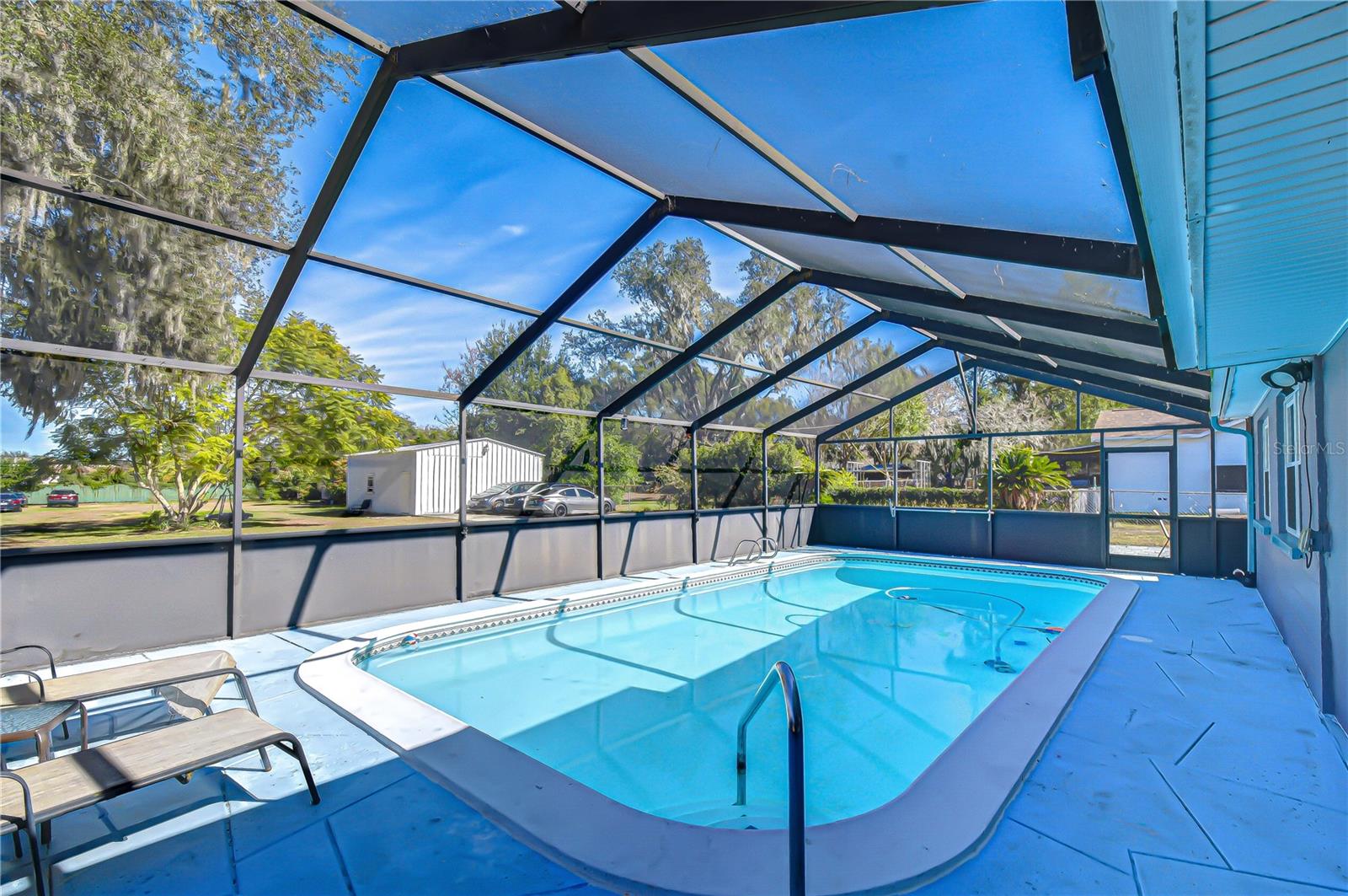 Looking for space, freedom, and a peaceful setting without being far from everything you need? Set on .79 acre of flat, usable land, this 3-bedroom, 2-bath pool home offers a rare country-style atmosphere with no HOA or CDD restrictions. The wide-open, fully fenced yard provides endless possibilities — whether you’re dreaming of a garden, workshop space, play area, or simply room to enjoy the outdoors without feeling boxed in. Major system updates provide peace of mind, including an AC replaced in 2020, water heater in 2018, pool pump in 2024, and exterior repainted in 2023. The 2-car garage features a hurricane-rated garage door. The property is exceptionally functional, with a large storage building and ample space to park and store your boat, RV, trailers, or additional vehicles, making it ideal for hobbyists and car enthusiasts. The front of the home makes a strong first impression with recent landscaping updates and newly repaved areas, enhancing both curb appeal and everyday use. Inside, the home has been thoughtfully updated with remodeled kitchen and bathrooms, blending modern finishes with comfortable living. The kitchen offers granite countertops, stainless steel appliances, an island, and wood cabinetry, opening into the dining and living areas. Wood flooring flows throughout, creating a warm, cohesive feel that’s perfect for both daily life and entertaining. The primary suite features a private en-suite bath, while two additional bedrooms share a full bath. At the back of the home, the great room and bonus room flow together, overlooking the backyard and pool. A convenient office with a barn door sits just off the bonus room, offering privacy for work or hobbies. Step outside to enjoy a sparkling pool and an expansive backyard that truly sets this property apart — open, level, and ready to be enjoyed year-round. Located just off Lumsden Road, this home delivers a tranquil, rural feel while remaining minutes from shopping, dining, major roadways, and all the conveniences of Brandon, with an easy drive to downtown Tampa.