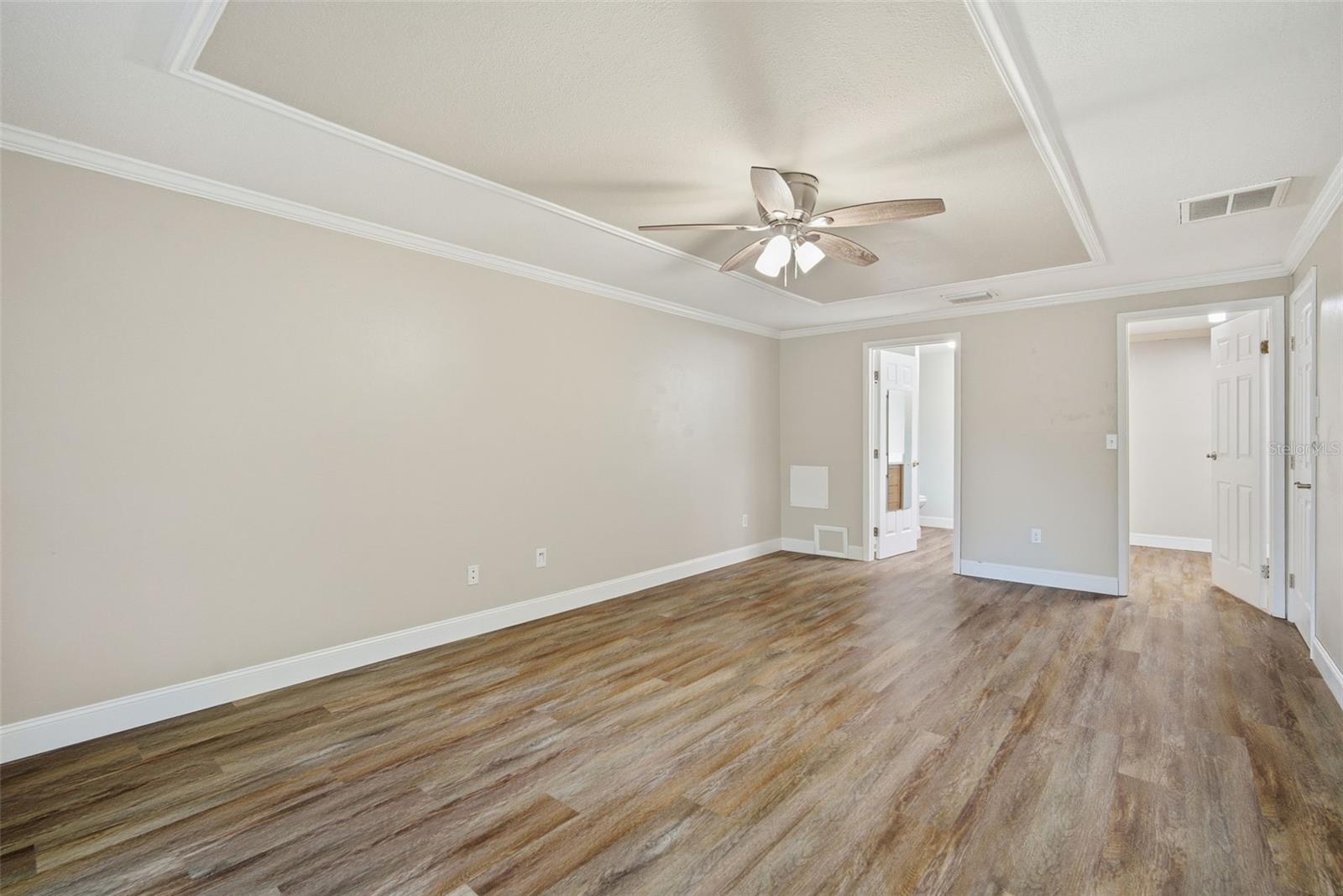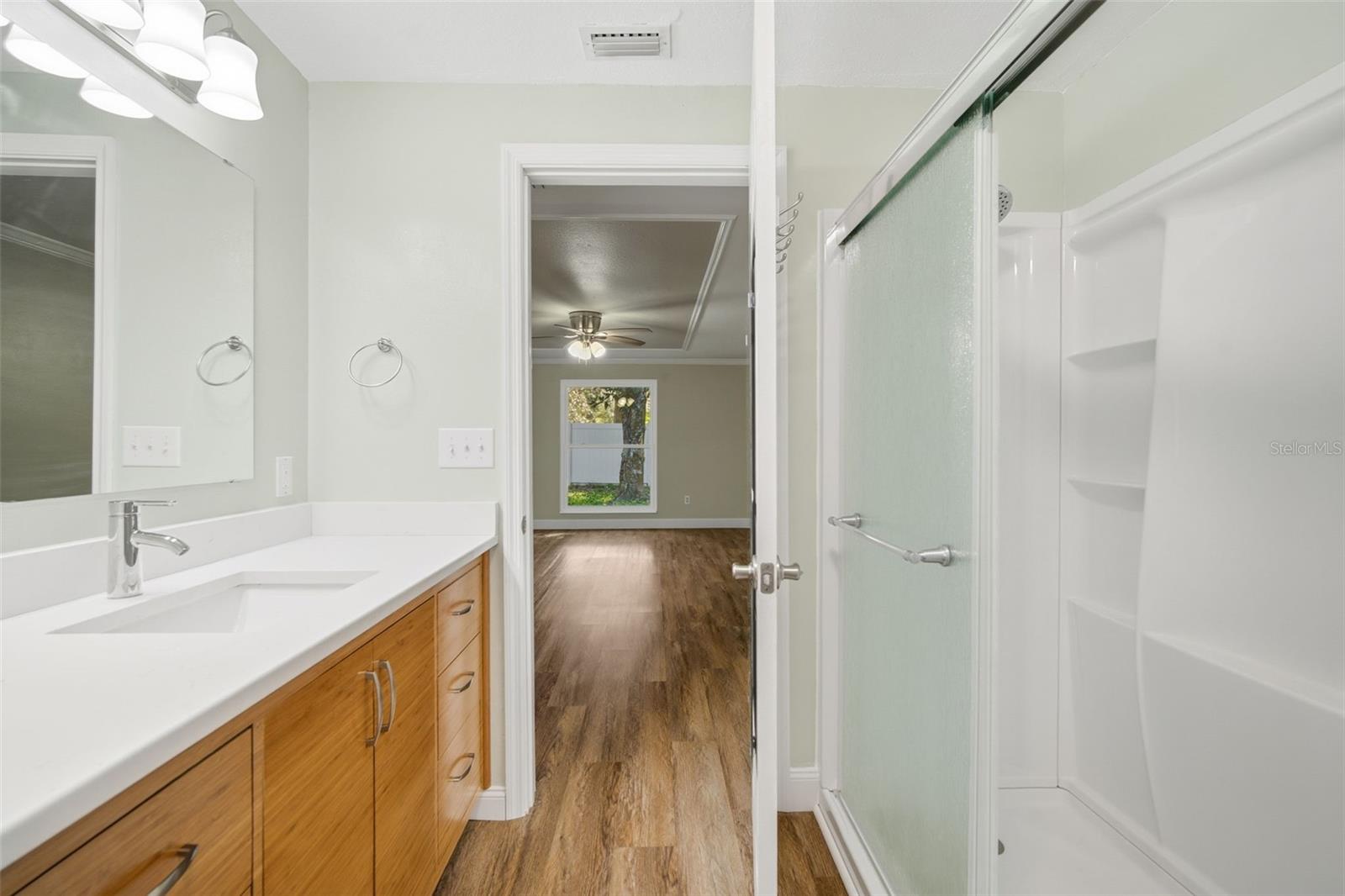 Welcome to 4107 Fallon Court in Brandon, a well-maintained home located on a quiet cul-de-sac with multiple living spaces for everyday living and entertaining. The kitchen features quartz countertops, stainless steel appliances, an electric cooktop, separate oven, and a vaulted ceiling with decorative wood detailing. The spacious family room offers vaulted ceilings, crown molding, and built-in in-wall surround sound, while a separate den or home office provides flexible space. The primary suite includes a walk-in closet and an updated bath with quartz countertops, a new attached vanity, and a stand-up shower. Three additional bedrooms and a full secondary bath complete the layout. Enjoy a private backyard with mature landscaping and lush greenery, perfect for relaxing or outdoor activities. Conveniently located near schools, shopping, dining, and major roadways.