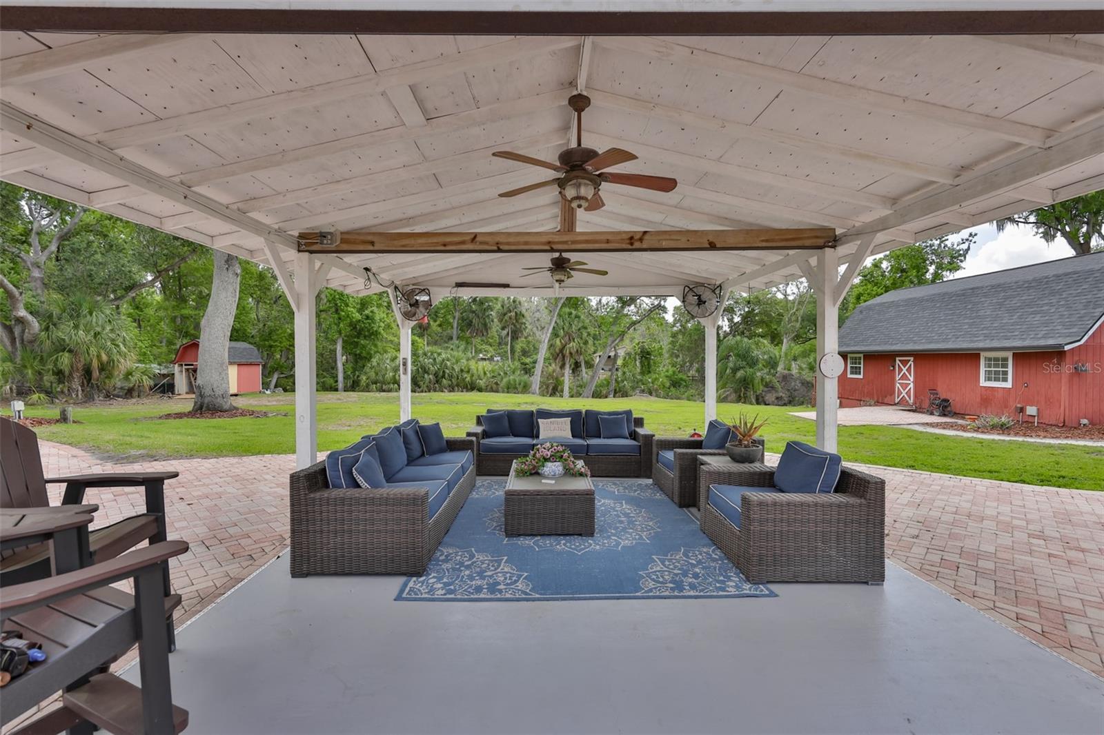 Welcome to this gem of a home in the highly sought-after equestrian community of Hickory Creek, located in Brandon. This truly one-of-a-kind property offers space, versatility, and timeless charm.From the moment you step through the front door, you are welcomed by an abundance of natural light and inviting living spaces. The formal living room features a charming wood-burning fireplace and flows seamlessly into the spacious dining room, creating the perfect setting for entertaining family and friends.The heart of the home is the chef's kitchen, complete with a gas range, a beautiful island ideal for gathering, a butler's pantry, and a dual-sided gas fireplace that connects the kitchen to the cozy family room. Just off the kitchen is an additional flexible living space that can easily serve as a home office, gym, media room, or additional lounge area perfectly suited to your lifestyle.The primary suite is conveniently located on the main floor and offers two large walk-in closets with built-ins, including laundry hookups in one closet for added convenience.The bathroom has dual vanities, a soaking tub and large walk-in shower. Upstairs, you'll find two generously sized bedrooms, each featuring its own private ensuite bathroom. A fourth bedroom is located above the private theater room and is accompanied by another full bathroom.Step outside to your private backyard oasis featuring a pool and spa combination surrounded by an expansive paved patio and a charming gazebo. With plenty of space to relax or escape the Florida sun, this outdoor retreat is ideal for entertaining or enjoying peaceful mornings and evenings overlooking the lush backyard.This property also offers incredible versatility with additional living space adjacent to the carport. This separate area includes a bedroom and living space and, with the addition of a bathroom, could easily become a private multi-generational suite. In addition, the guest house features a living area, kitchen, and laundry on the first floor, with a bedroom and bathroom upstairs,perfect for extended family or visiting guests.This remarkable property offers space, flexibility, and endless possibilities, all within the beautiful Hickory Creek community. Come experience everything this exceptional home has to offer!