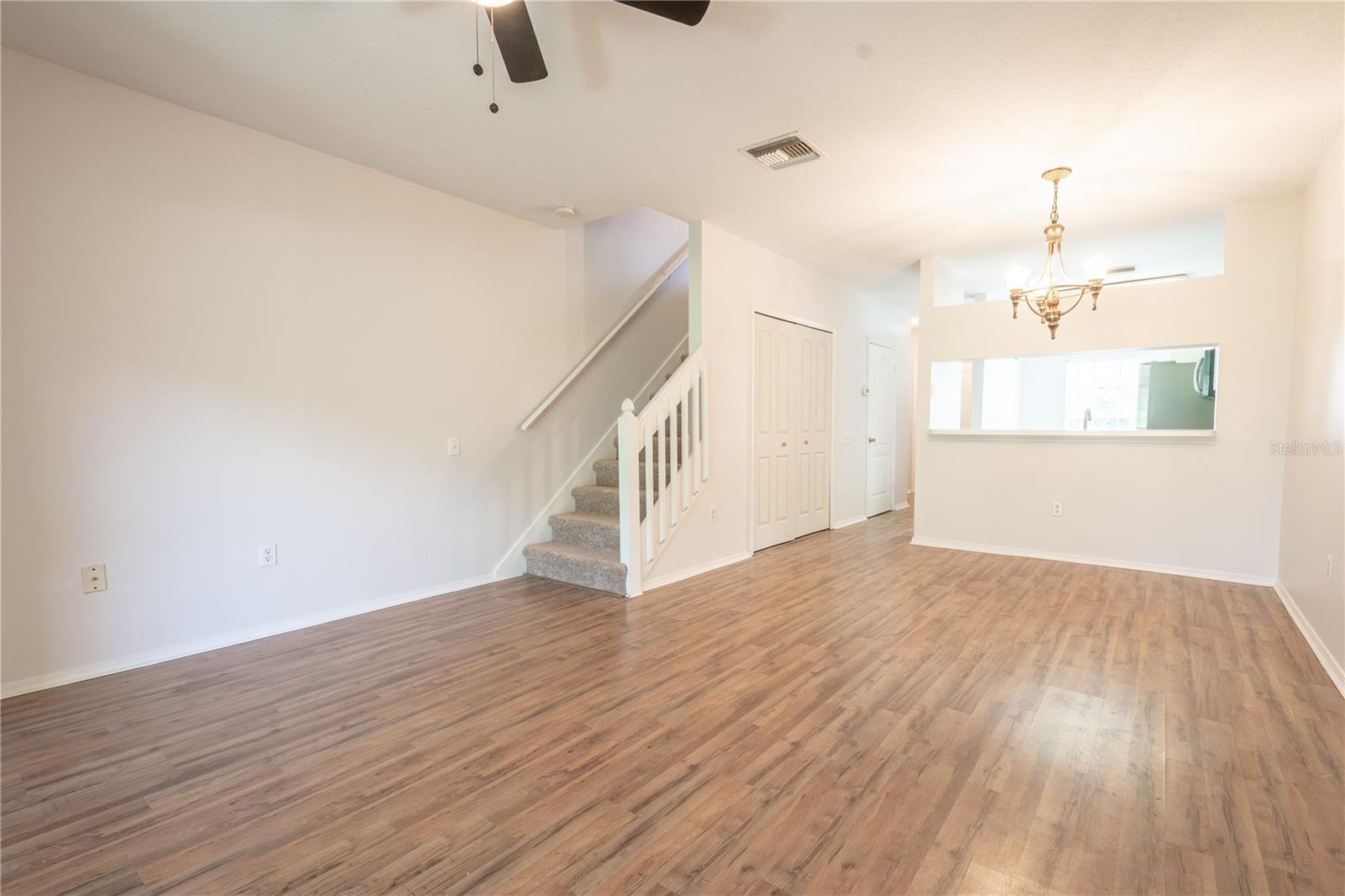 Check out this 2-bedroom, 2.5-bath townhome located in the desirable gated community of Regency Key Townhomes in Brandon. This home offers the perfect blend of convenience and comfort, starting with ample parking right in front of the unit. As you step inside, you're greeted by the warm wood laminate flooring in the entrance and NEW paint throughout. The kitchen is bathed in natural light and boasting ceramic tile floors and NEW stainless steel appliances, including a range, microwave, and French door refrigerator with a water dispenser. There's even room for a cozy breakfast table. Ample cabinet space ensures all your storage needs are met, and the convenient pass-through window to the dining and living rooms makes entertaining a breeze.The kitchen also features a double basin stainless steel sink. The dining area, illuminated by a brass chandelier, seamlessly flows into the living room, where neutral-tone walls and matching wood laminate flooring create a harmonious space. The living room is equipped with a ceiling fan with a light kit, and sliding glass doors open to a charming back porch. This 8’ x 11’ outdoor space is perfect for relaxation, featuring a tiled floor and ceiling fan. On the first floor, you'll find a half bathroom with ceramic tile flooring, neutral tones, a pedestal sink, mirror, and downlight fixture. The under-stairs laundry room offers hook-ups for your washer and dryer, a shelf for storage, and a ceramic tile floor. Upstairs, both bedrooms await. The carpeted stairway leads you to the second floor, where the hallway also features NEW carpeted flooring and a linen closet for additional storage. The primary bedroom is a peaceful retreat with 2 built-in closets, carpet, vaulted ceiling, and a large picture window. The ensuite bathroom is well-appointed with a tiled tub and shower, ceramic tile floor, and a mirrored vanity with storage. The second bedroom also boasts an ensuite bath, vaulted ceiling, ceiling fan with a light kit, neutral tones, a built-in closet, and a large window that allows for plenty of natural light. The second bathroom mirrors the primary ensuite with a tiled tub and shower, ceramic tile floor, and a mirrored vanity with storage. This townhome provides easy access to the interstate, downtown Tampa, and MacDill Airforce Base, making commuting a breeze. The monthly maintenance fee covers water and sewer, roof, basic cable, exterior building maintenance, lawn care, park, community pool with bath facilities, beach volleyball court, and master insurance policy on buildings and grounds. Don't miss the opportunity to make this delightful townhome your own!