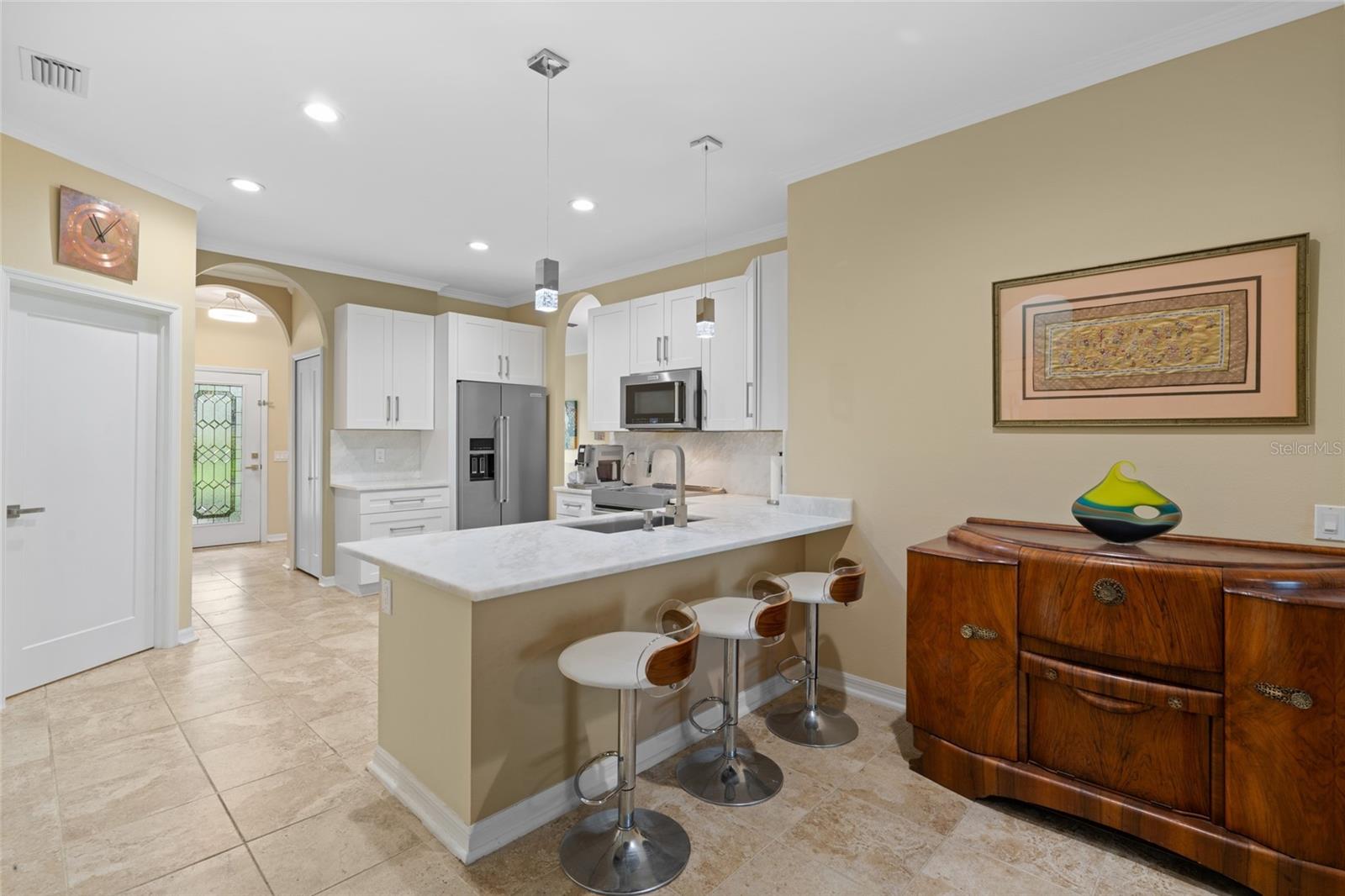Welcome to your BEAUTIFUL oasis in desirable Hickory Lake Estates! This immaculate 4 bed |2 bath | 2 car garage home boasts a SPLIT FLOOR PLAN and is adorned with premium mahogany flooring throughout, complemented by updated tile in all wet areas. The heart of the home features a NEWLY RENOVATED KITCHEN with Rhino marble countertops, custom marble backsplash, sleek cabinets, and four BRAND NEW stainless steel appliances, all top of the line Kitchenaid including a convection microwave and HIGH END oven featuring an induction cooktop that has an air fryer and bread mode with rising attachment. Unwind in the spacious primary bedroom, and enjoy the recently updated bathrooms with LUXURY solid surface counters. The home boasts a SMART AC system and smart wall switches & outlets which offer convenience and energy efficiency. Recently installed custom honeycomb blinds add style and privacy, and NEW ROOF in 2022 (w/ 18 year warranty!) provides longevity and peace of mind. Step onto the expansive covered and screened-in rear patio that is backed to a nature filled pond and mature trees, which provide shade and tranquility. Outdoors, the lush St. Augustine grass is enhanced by a 6-zone underground smart sprinkler system controllable from your phone or manually. Located in a prime spot NOT IN A FLOOD ZONE, NO CDD fees, LOW HOA fees and close in proximity to all amenities, restaurants, medical services, Brandon Town Center Mall, and just a short drive to downtown Tampa and Tampa International Airport. Don’t miss out on this exceptional opportunity to own a move-in ready single family home in beautiful Hickory Lake Estates.