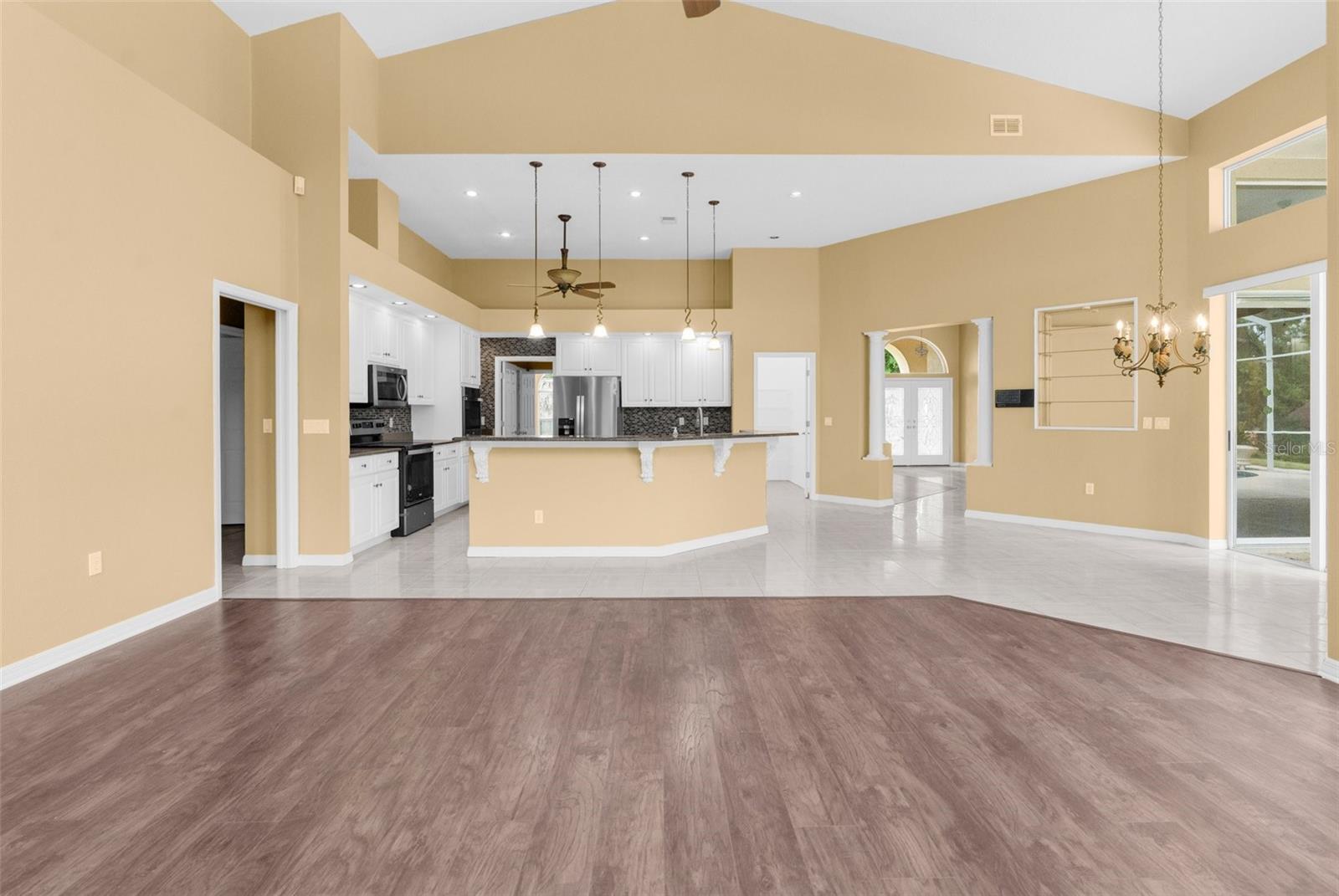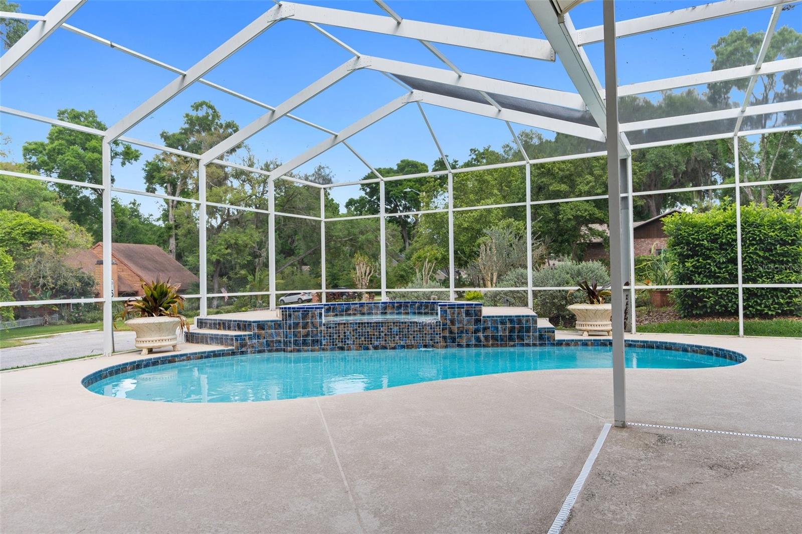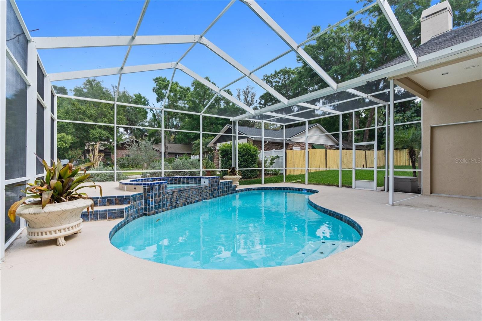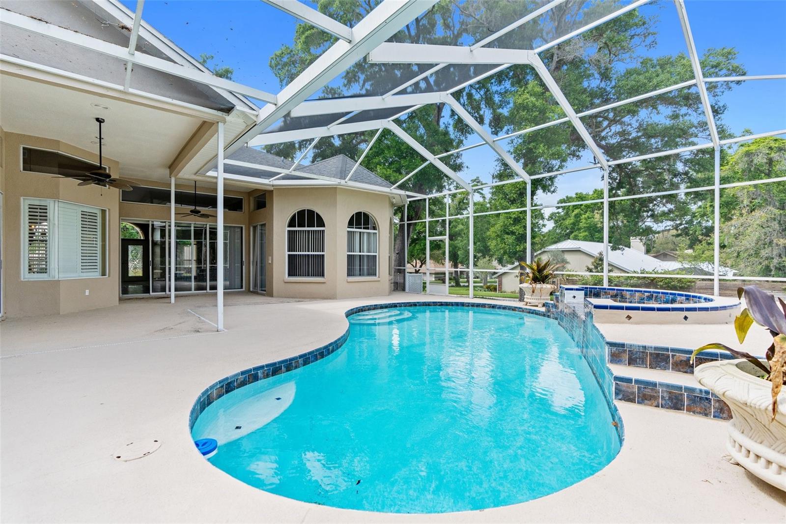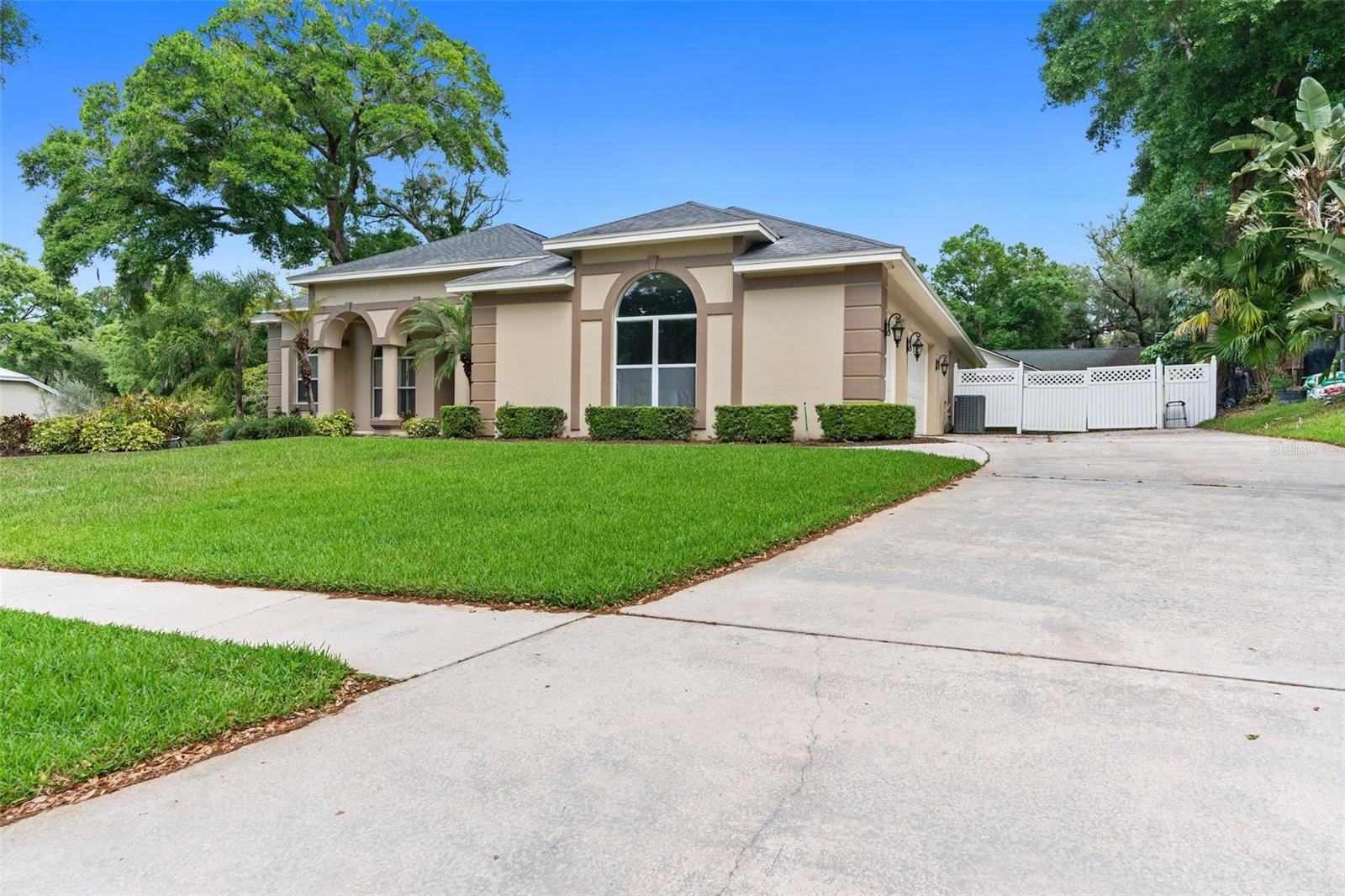 Welcome to this exceptional custom home boasting 4 bedrooms, 3 bathrooms, and a spacious 3-car garage, all within a coveted neighborhood without HOA or CDD fees. This residence exudes luxury with high ceilings that amplify its expansive feel. Each bedroom offers unparalleled privacy, featuring its own bathroom, with one bedroom even equipped with a pocket door for added seclusion. The master suite is a true retreat, featuring two walk-in closets, a walk-in shower, and a sunken tub for relaxation. The home has been thoughtfully updated with new interior and exterior paint, modern flooring throughout, and a fully remodeled pool and spa with a stunning Diamond Brite finish. Entertaining is a breeze with the open-concept layout flowing seamlessly into the enclosed pool and spa area, accessible from the great room, master bedroom, and backyard. Culinary enthusiasts will appreciate the newly installed appliances, including a built-in wall oven, catering to a variety of cooking needs. Outside, mature landscaping adds to the property's curb appeal, while a side yard with a double gate provides convenient off-street parking for recreational vehicles. Additional highlights include a new pool pump with a one-year warranty, a roof installed in 2013, and a six-year-old A/C unit. The oversized three-car garage and extra-long driveway ensure ample parking space for residents and guests. Schedule a viewing today and experience upscale living at its finest. Home is a repaired sinkhole. Comes with engineering documents and a lifetime transferable warranty.