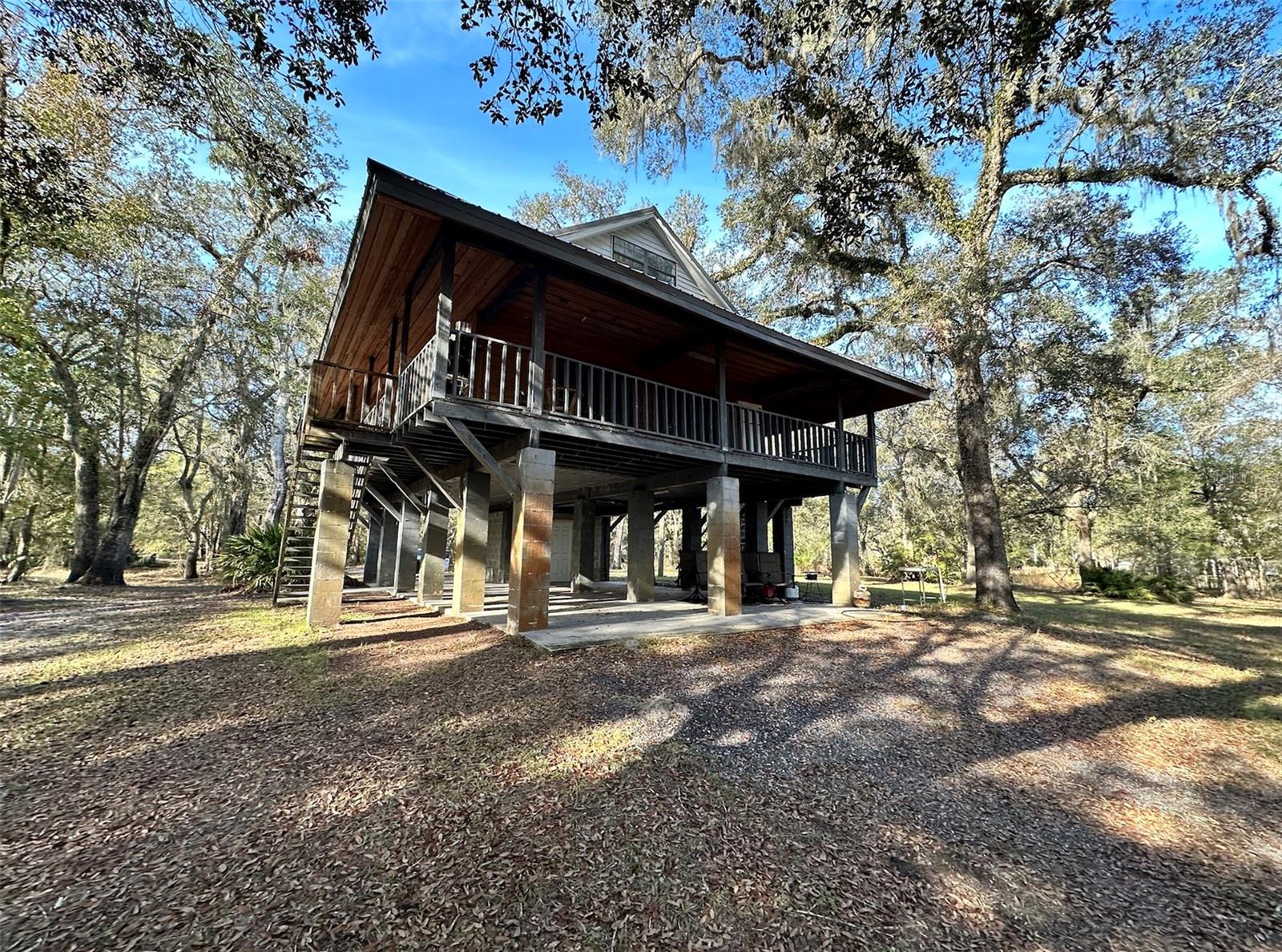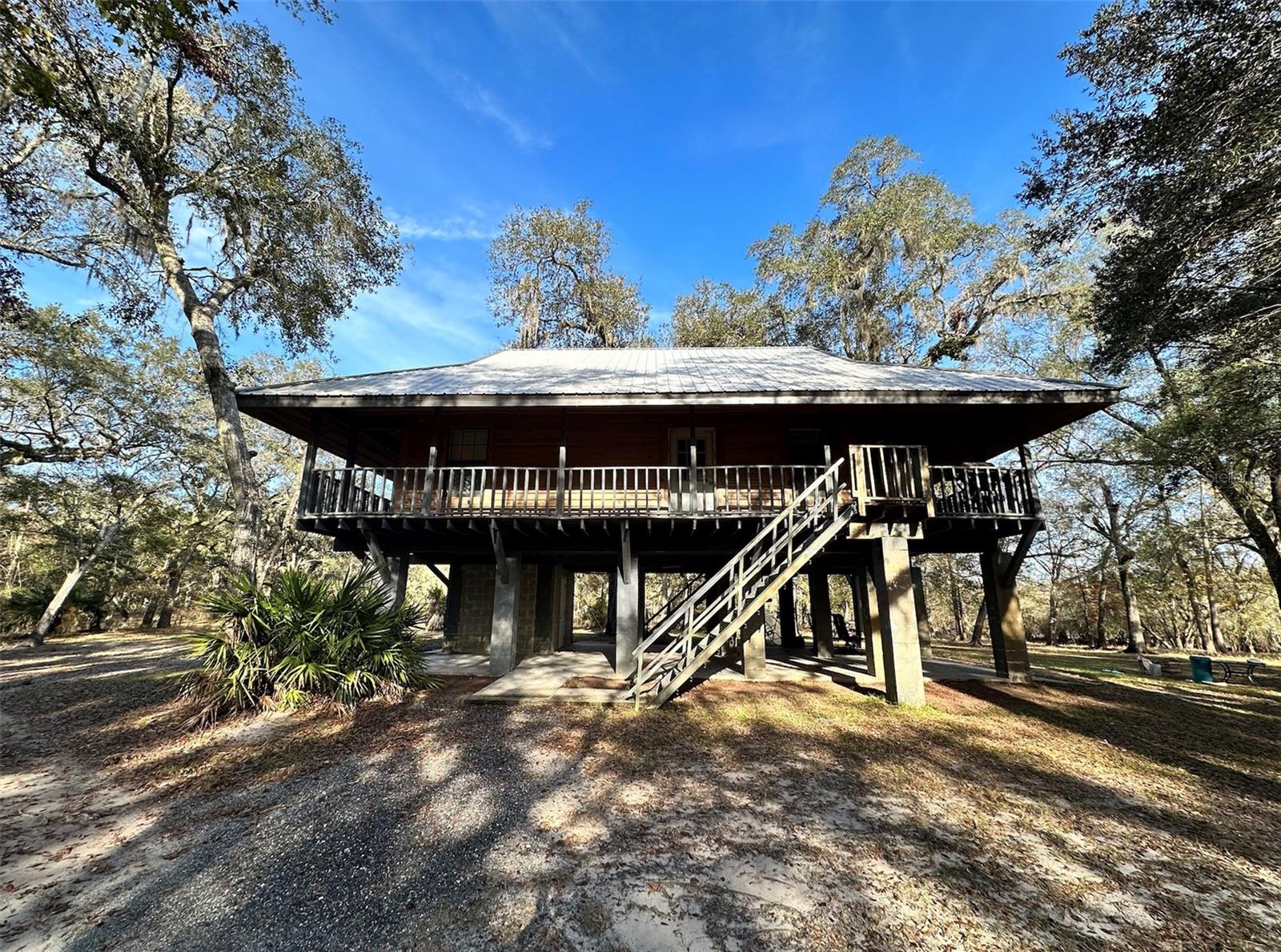 This is a rare opportunity to own 10+ acres on both the Santa Fe and Suwannee Rivers. Property features a dock on the Santa Fe River and a dock on the Suwannee River. There is a private concrete boat ramp on this property, so you can launch your boat in your back yard. Large concrete steps will lead you right into the Suwannee River. The house over looks a park like setting along the river. There is also a large pavilion for entertaining right on the river. Your views are amazing!