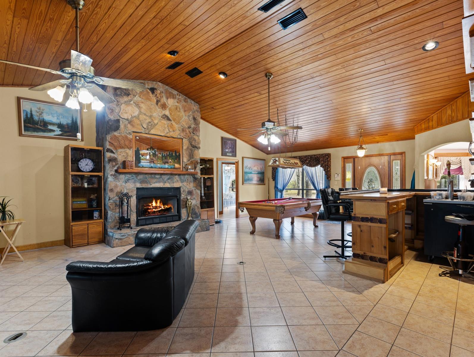 Welcome to your lakeside paradise! This impeccably maintained 2674 sq. ft. home boasts stunning views of Adams Lake and offers 3 bedrooms, 2 bathrooms, and an array of entertaining spaces. The spacious great room welcomes you with vaulted ceilings, surround sound, a statement fireplace, custom bar, and even a pool table, setting the stage for memorable gatherings. The large kitchen is a chef’s dream, featuring an island with a cooktop and plenty of cabinet space. Natural light floods the home through expansive windows, providing picturesque views of the lake. The generously sized master bedroom opens onto a 650 sq. ft. screened porch, perfect for enjoying your morning coffee or hosting gatherings. The master bathroom offers double vanities, a walk-in shower and a separate tub for ultimate relaxation. With a split floor plan, the spare bedrooms are spacious and feature large walk-in closets. Outside, amenities include a 30 amp RV hook-up, two sheds, a large carport and a full house generator. There is a fire pit area and an amazing dock going down to the gazebo over the water, it doesn't get any better than this! Adams Lake is perfect for all water sports and has great fishing ! It is also connected by a canal to Larger Pickett Lake so you have plenty of places to roam! Don’t miss the opportunity to make this stunning lakeside retreat your own! Bedroom Closet Type: Walk-in Closet (Primary Bedroom).