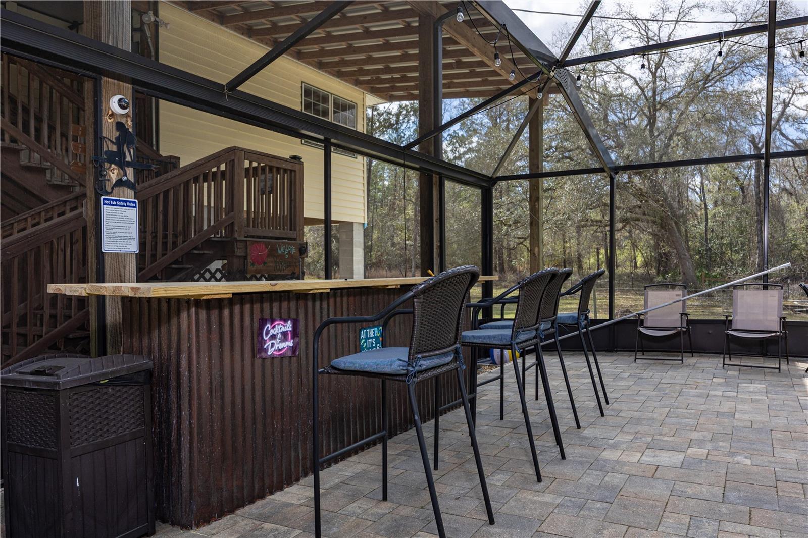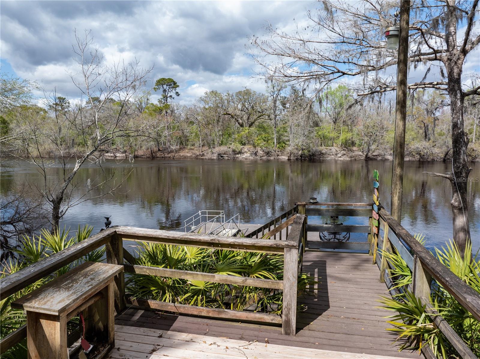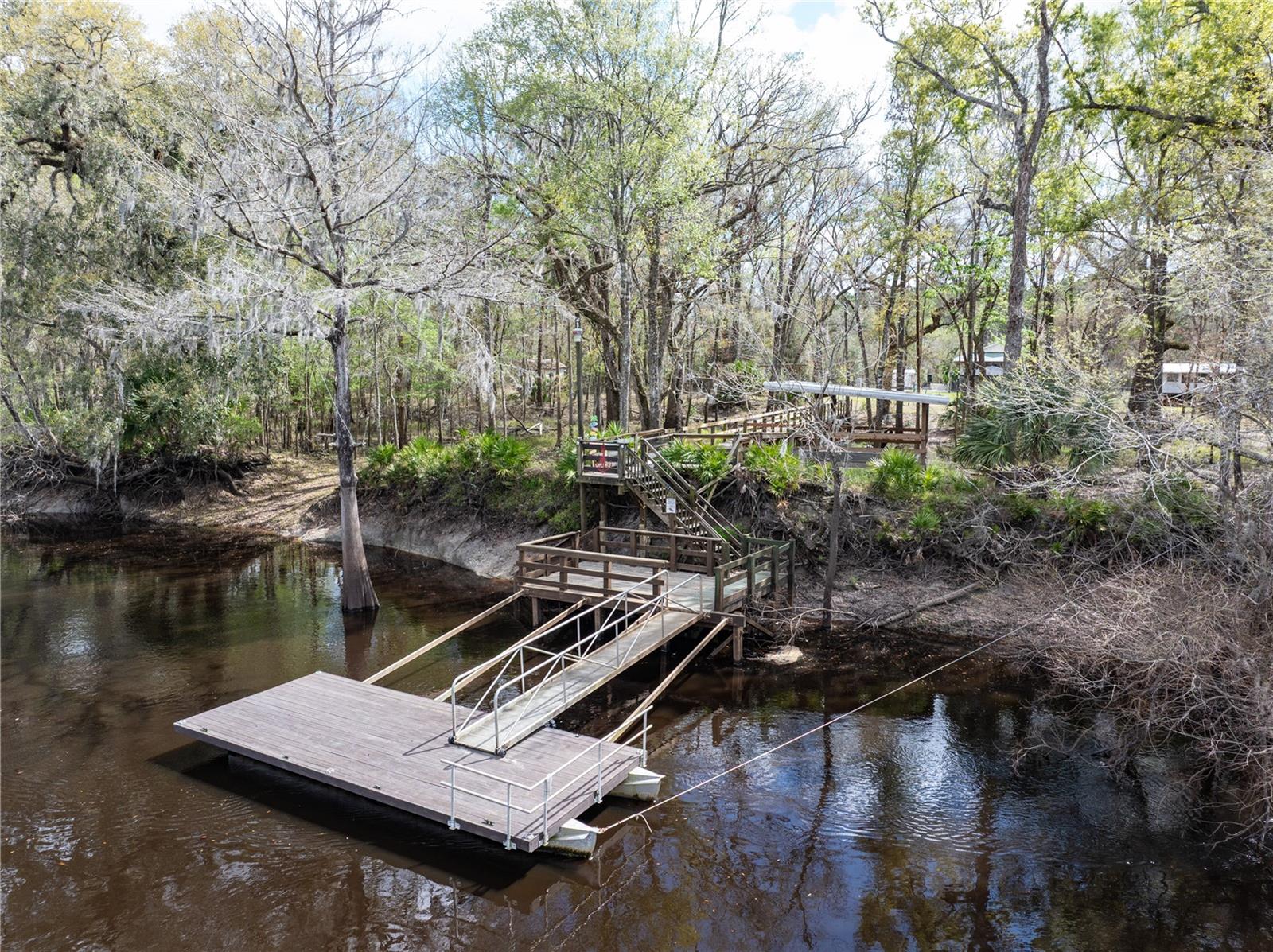 Nestled on the banks of the picturesque Suwannee River in Branford, FL, this stunning 3-bedroom, 2-bathroom home offers the perfect blend of comfort and adventure. Currently operating as a successful Airbnb, this income-producing property can be a turn-key investment & a scenic getaway. Upon entering, you are greeted by a spacious living area adorned with a charming gas fireplace and walls featuring beautiful cypress tongue and groove detailing, adding warmth and character. The home boasts covered porches both at the front and back, inviting you to relax and enjoy the breathtaking river views. One of the standout features of this property is its enclosed inground saltwater pool with a spa, ensuring year-round enjoyment and relaxation. Adjacent to the pool area, a convenient half-bath bathhouse adds to the ease and comfort of outdoor living. For those who love outdoor entertaining, a covered pavilion overlooking the river awaits, complete with a fish cleaning station nearby—perfect for preparing your fresh catch after a day on the water. A floating dock provides easy access for boating enthusiasts, making it effortless to explore the Suwannee River’s natural beauty. Inside, practicality meets convenience with amenities, including an elevator and a whole-house generator, ensuring ease of access and peace of mind for residents and guests alike. Whether you're looking for a peaceful riverside retreat, an income-producing investment, or both, this property has it!