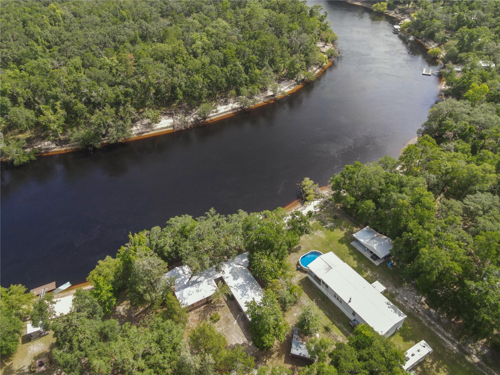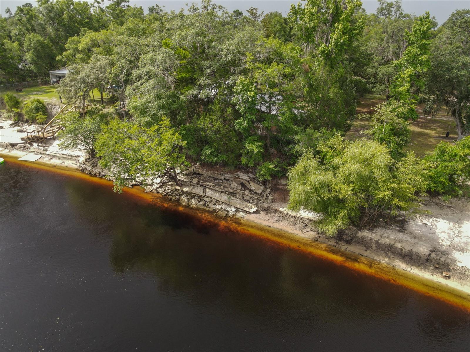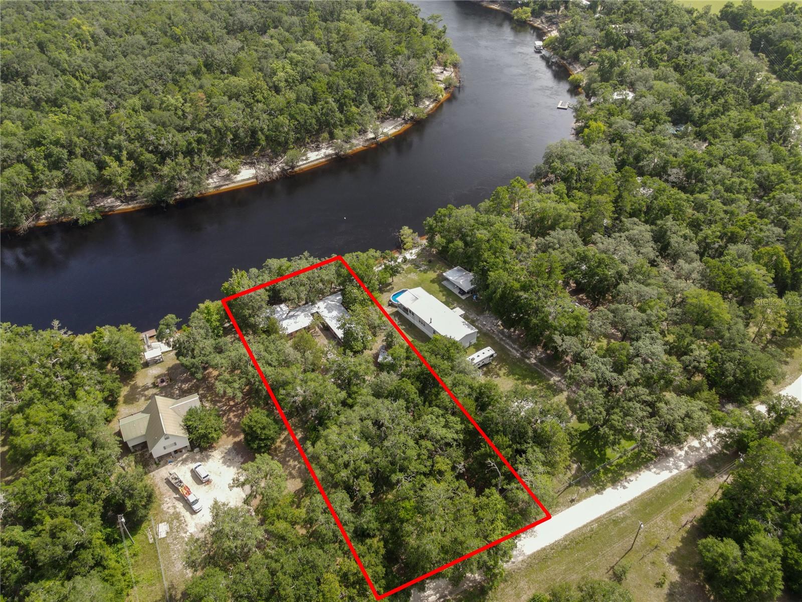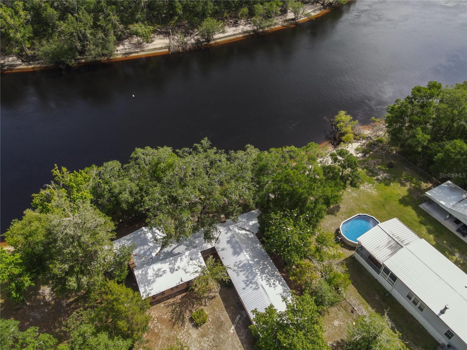 PRICE REDUCTION!! Take this great opportunity to purchase this river property with the recent price reduction! Plenty of hot summer days left to enjoy river life .This charming 1958 Florida block home offers a unique opportunity to own a piece of the amazing Suwannee River. Situated on a high bluff on a 0.69-acre lot, this 2-bedroom, 1 1/2 -bathroom residence is ready for your personal touches to create your ideal river retreat. The home retains its distinctive tongue and groove knotty pine paneling in the original footprint, complemented by a brick fireplace in the living room. Entertaining is a breeze with a large screened room, a Florida room, and various other additions perfect for guests. Recent updates include remodeled bathrooms. Enjoy an untouched natural setting as your constant view, as the property across the river is state-owned. The lovely lot boasts several large "grandaddy" oaks and other mature hardwood trees, including oaks, cedars, and magnolias, providing welcome shade during the summer months. The property is completely fenced with a gate for privacy and includes a carport and additional storage buildings. Call today to view this property and bring your imagination as you envision your riverfront dream home!