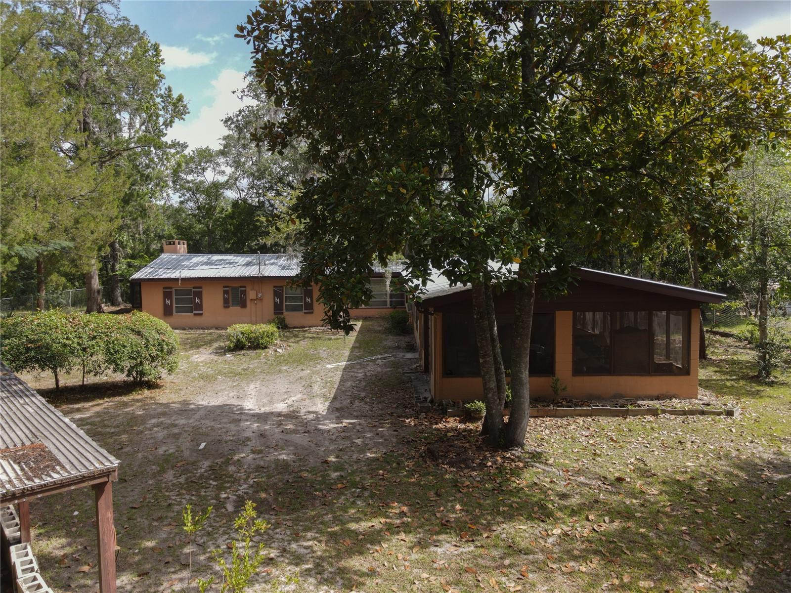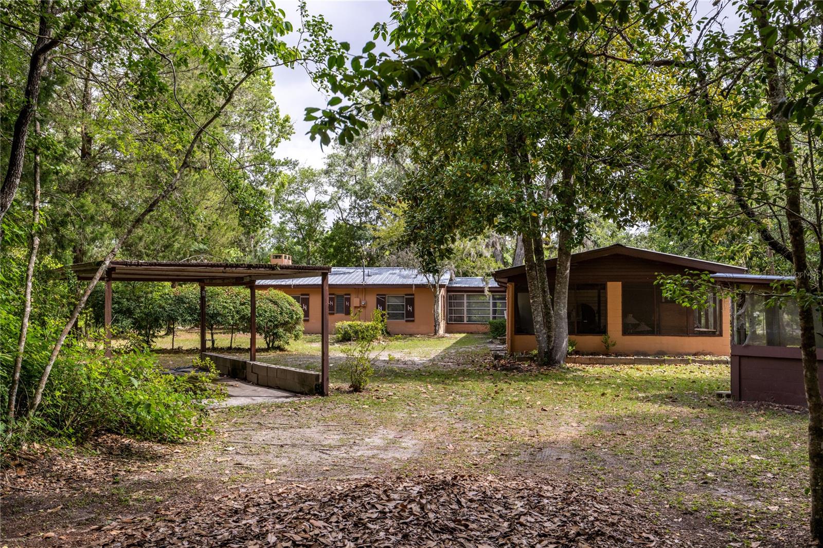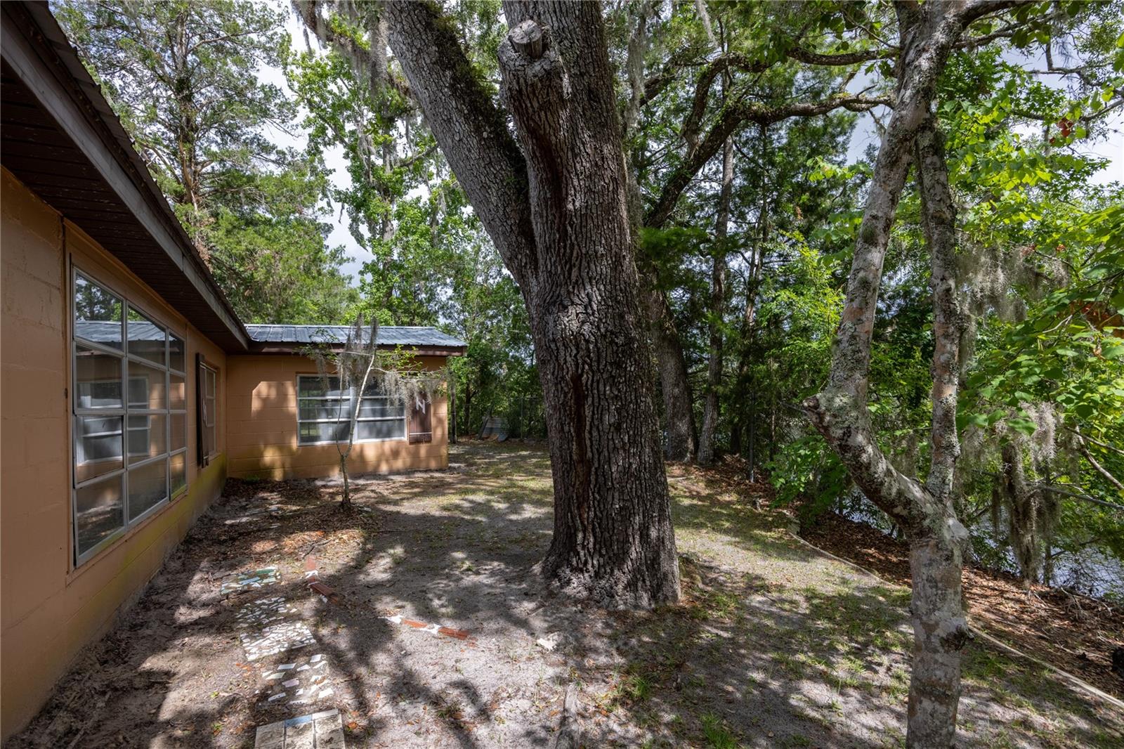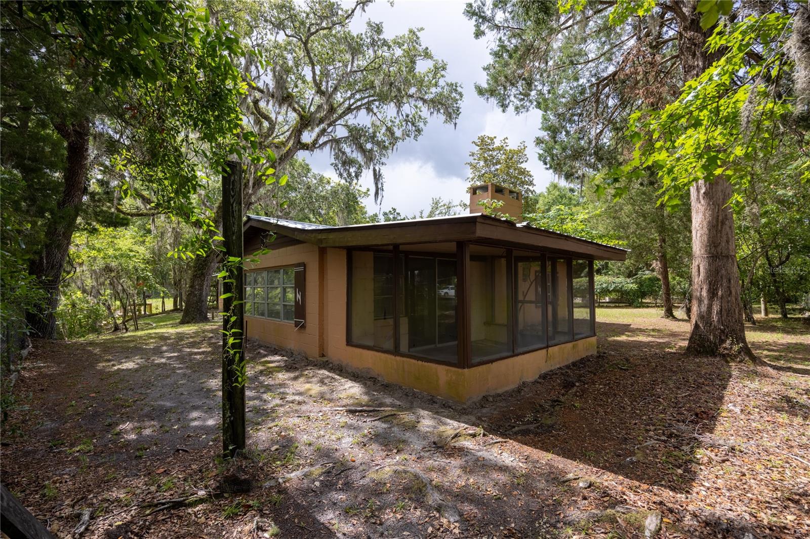 PRICE REDUCTION!! Take this great opportunity to purchase this river property with the recent price reduction! Plenty of hot summer days left to enjoy river life .This charming 1958 Florida block home offers a unique opportunity to own a piece of the amazing Suwannee River. Situated on a high bluff on a 0.69-acre lot, this 2-bedroom, 1 1/2 -bathroom residence is ready for your personal touches to create your ideal river retreat. The home retains its distinctive tongue and groove knotty pine paneling in the original footprint, complemented by a brick fireplace in the living room. Entertaining is a breeze with a large screened room, a Florida room, and various other additions perfect for guests. Recent updates include remodeled bathrooms. Enjoy an untouched natural setting as your constant view, as the property across the river is state-owned. The lovely lot boasts several large "grandaddy" oaks and other mature hardwood trees, including oaks, cedars, and magnolias, providing welcome shade during the summer months. The property is completely fenced with a gate for privacy and includes a carport and additional storage buildings. Call today to view this property and bring your imagination as you envision your riverfront dream home!