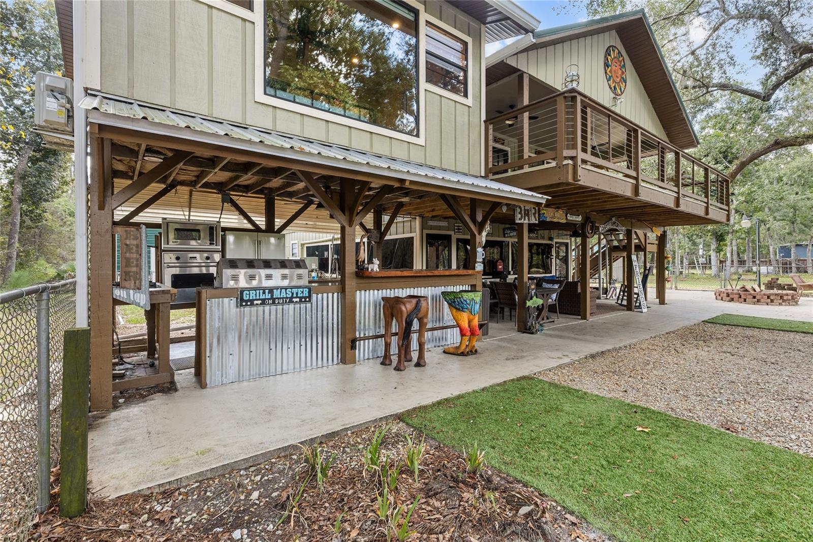 SUWANNEE RIVER RETREAT--YOUR PRIVATE RIVERSIDE GETAWAY! Welcome to your dream retreat on the high bluffs of the Suwannee River in the serene Hatchbend area! This delightful 4-bedroom, 3-bath home is nestled on a generous 1-acre lot, offering peace, privacy, and panoramic river views. Less than 2 miles from the Santa Fe River and just a short drive to the crystal-clear Ichetucknee River, this location is perfect for paddling, snorkeling, and embracing the natural beauty North Florida is known for. Inside, the home showcases charming rustic décor and a flexible layout. The main level features two cozy bedrooms and a shared bath, along with a fireplace—perfect for gathering on cool evenings. A private suite with its own entrance includes a spacious bedroom, a walk-in closet, and a large picture window overlooking the river, so you can wake up every morning to breathtaking views. On the lower level, you’ll find an additional bedroom and full bath, offering privacy and comfort for guests or extended family. There's also a large enclosed bonus room that can easily be transformed into extra living space, a game room, or the ultimate party room. Outdoor living shines with this property. Enjoy lazy afternoons on the porch swing, cook up a feast in the fully equipped outdoor kitchen and living area, then wind down around the firepit under the stars. A 42-foot aluminum ramp leads to a large floating dock with two jet ski docks, making river access easy and fun. Storage is abundant, with a 30’ x 40’ enclosed garage featuring three roll-up doors—ideal for housing all your toys and tools. There’s also additional covered parking for an RV or boat. The home is wired for a generator and includes an RV hookup. Located just a few miles from the quaint town of Branford, with a population under 800, this peaceful retreat offers small-town charm with big outdoor adventure. Whether you're looking for a full-time home, a vacation getaway, or a riverfront investment, this Suwannee River gem is a rare find. Tremendous potential for Air BNB! SCHEDULE YOUR PRIVATE SHOWING TODAY!