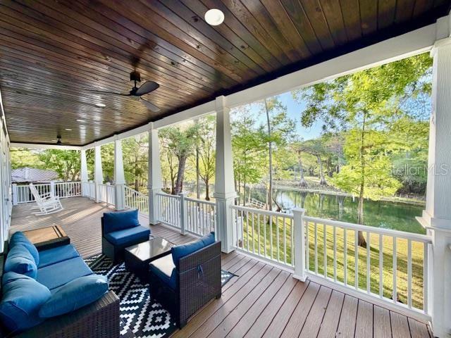 Experience the very best of waterfront living on the crystal-clear, spring-fed Santa Fe River in Branford! This stunning new construction home, built in 2025, offers 3 bedrooms and 3 bathrooms on a beautifully situated 1/2-acre riverfront lot with breathtaking views and direct water access. Designed for both comfort and style, this two-story home features a residential elevator for easy access to both levels. On the main floor there are 2 bedrooms. One has a private bath with large walk-in shower and the other bathroom gives access from the 2nd bedroom or hallway. The master bedroom has privacy at it is located on the upper floor with a small landing and storage room before entering the massive bedroom. This MBath has a tub/shower and large walk-in closet. All rooms have tall 10' ceilings and attention to detail cannot be missed. Transoms above the windows allow the natural light to pour in without losing privacy. The heart of the home is a show-stopping kitchen complete with a large island, stone countertops, a commercial-grade gas range, wine cooler, and a classic cast iron farmhouse sink—perfect for entertaining or everyday living. Enjoy the outdoors year-round with expansive covered porches on both the front and back of the home, all finished with durable composite decking on the porches and stairs. Take in peaceful river views, unwind with your morning coffee, or host gatherings with the water as your backdrop. The ground level is thoughtfully designed with a fully concreted area, ideal for parking, storage, or entertaining. A beautiful pathway of large concrete pavers leads you down to the river’s edge, where you’ll find an aluminum gangway, floating dock with swim ladder, and boat mooring—ready for boating, swimming, and enjoying everything river life has to offer. Whether you’re searching for a full-time residence or the ultimate riverfront getaway, this exceptional property delivers modern luxury in a serene, natural setting. Don’t miss your opportunity to own a brand-new home on one of North Florida’s most sought-after rivers!