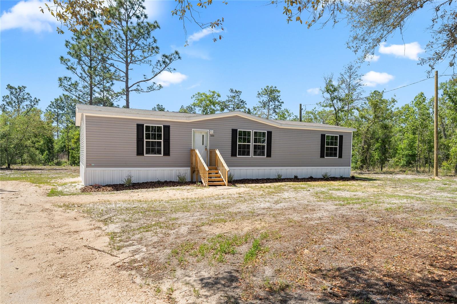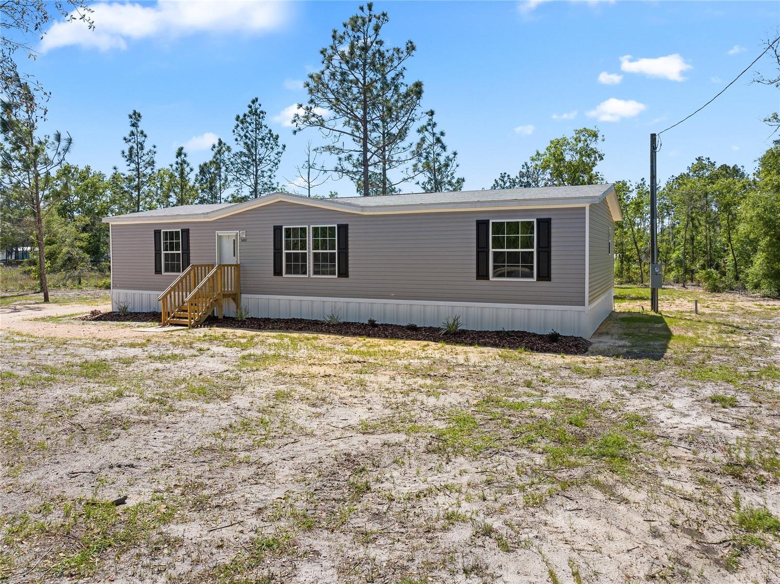 Be the first to own this newly constructed 2024 model Champion manufactured home! Nestled on nearly an acre (0.92) of land, this 3-bedroom, 2-bathroom home offers 1493 SF of comfortable living space just 30 minutes from Gainesville. Step inside to discover an inviting open-concept layout, with a spacious living room seamlessly flowing into the kitchen area. The home's thoughtful design includes a split bedroom plan, offering privacy and convenience. Enjoy modern comforts with energy-efficient features, including double-paned low-E windows, recessed LED lighting, and easy-to-maintain vinyl flooring throughout. The home also comes equipped with new appliances, including a dishwasher, refrigerator, and range/hood. The property boasts a brand-new septic system, well, and electrical utility infrastructure, ensuring reliable service. A one-year home warranty provides added peace of mind. Survey is providing a survey. Located on a limerock street, this home offers a rural setting away from the hustle of town, just minutes from downtown Bronson. Don't miss the opportunity to customize this affordable home and turn your creative ideas into reality. Qualified Buyers are encouraged to schedule a visit today!