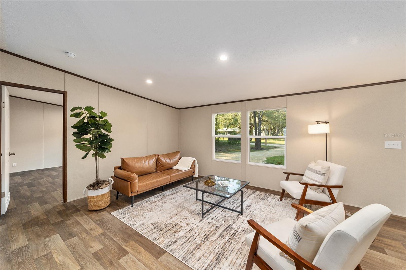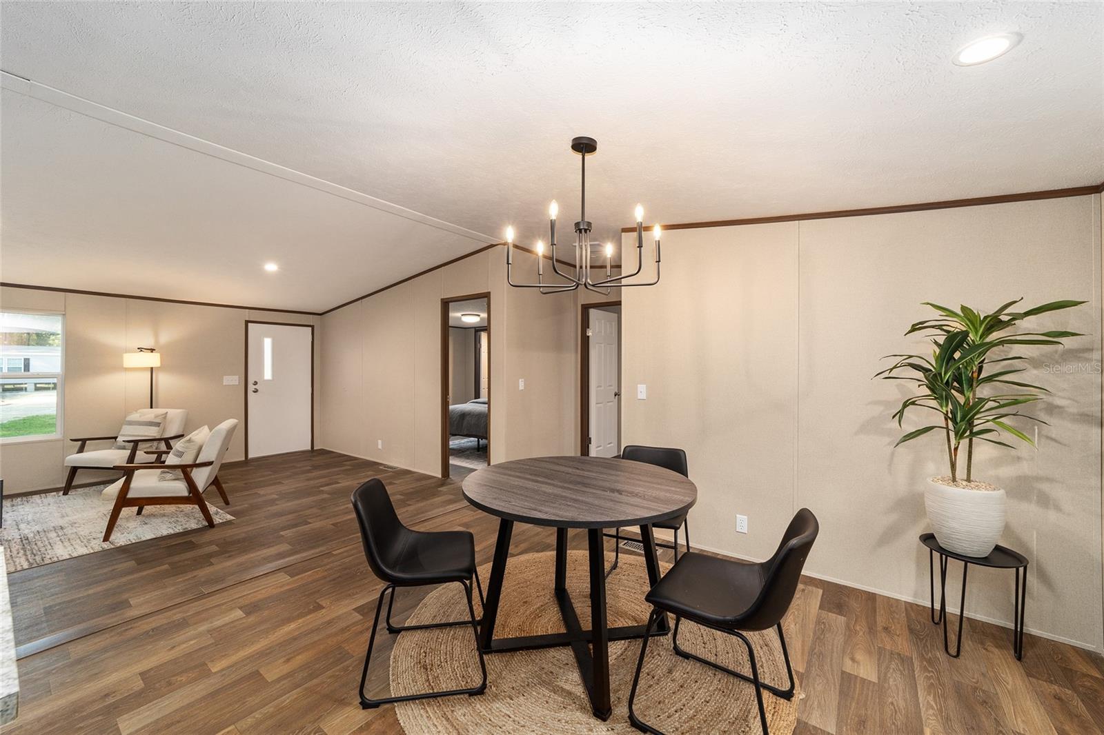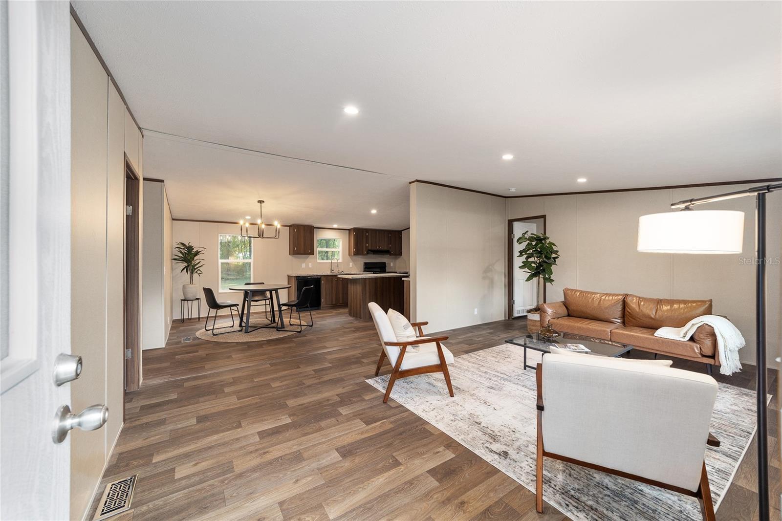 Welcome to this modern and charming 3-bedroom, 2-bath home. This property is Brand new and features a comfortable open floor plan with energy-efficient and stylish elements; it is designed for both daily living and entertaining. With a split floor plan and walk-in closets in all bedrooms, the house offers a seamless blend of functionality and style. Say goodbye to carpet and hello to beautiful wood-inspired flooring throughout. The primary suite even includes a relaxing garden tub for your enjoyment. Situated on .37 spacious acres, this home boasts excellent curb appeal, including a limestone driveway, custom mailbox, and fresh landscaping. Additionally, you'll find a new matching shed with an oversized door and electrical hookups, as well as a custom fire pit, perfect for creating lasting memories under the stars – perhaps even making s'mores. Financing is straightforward, and with low property taxes and utilities, this home offers both convenience and affordability. This property truly has it all; The only thing it's missing is you. Contact your realtor today for a personal tour.