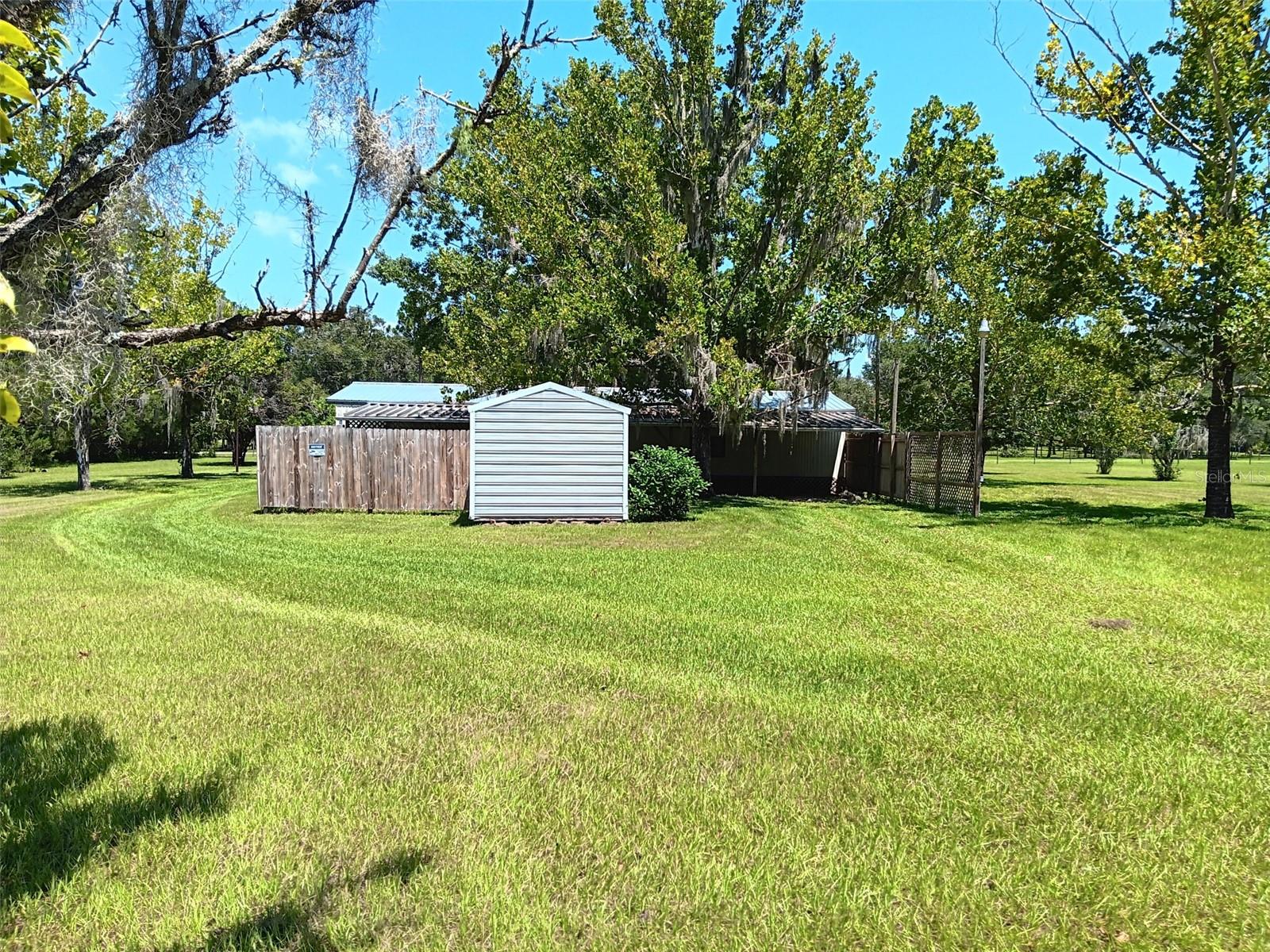 BEAUTIFULLY LANDSCAPED! 4.26 acres fenced with 1456 sq. ft manufactured home. Plenty of outside storage includes 20x25 metal storage building work shop featuring concrete floor, electric and water. 32x30 shed with stalls. 10x12 storage shed and small pump house. Lots of trees including crepe myrtles, fruit tress, sycamore trees and oak trees. Located in a quiet neighborhood that has road frontage on 3 sides so only one neighbor in the back. Inside you find large living room with plenty of windows for natural light, separate dinning room, Kitchen has plenty of cabinets and gas stove. Primary bedroom is spacious with 2 walkin closets and primary bath features shower stall with built in bench and linen closet. guest bedrooms have walkin closets. New metal roof, new gas stove and new carpet thru out the home. Schedule your showing today to see this quiet country living and gorgeous well manicured lot.