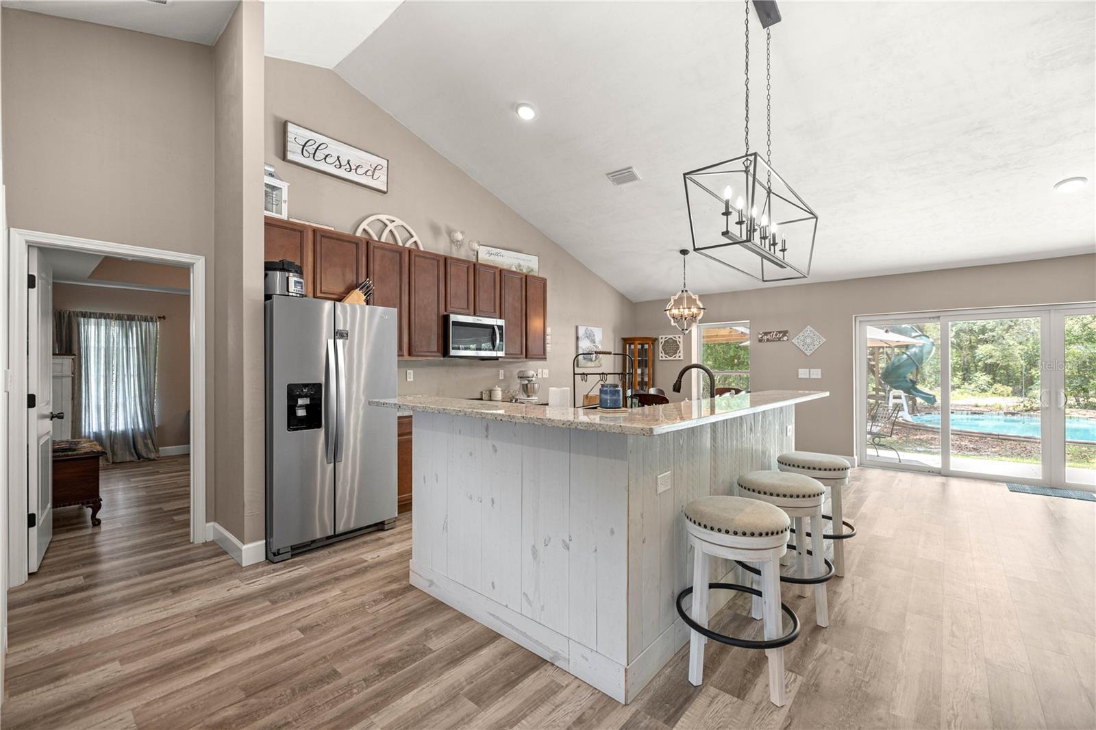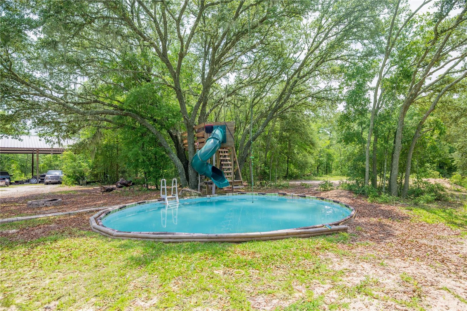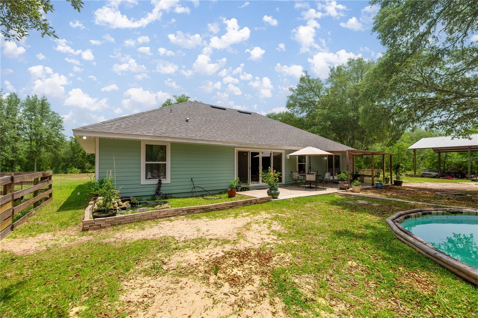 LUXURY COUNTRY ESCAPE ON 12+ ACRES Experience the perfect fusion of modern elegance and country freedom in this 2-year-new custom home, privately tucked away at the end of a long, winding drive. Spanning 2,100+ sq. ft., this 4 bedroom, 2 bath beauty features soaring vaulted ceilings, an airy open floor plan, and thoughtful details throughout. The heart of the home—its gourmet kitchen—flows seamlessly into the dining and living areas, making entertaining effortless. A split bedroom layout offers privacy, while the luxurious owner’s suite boasts trey ceilings, patio access, a walk-in closet, and a spa inspired bath with dual vanities, a tiled walk-in shower, and a deep corner soaking tub. Step outside and you’ll find your own backyard wonderland: a custom above/below-ground pool with a whimsical treehouse slide, expansive covered patio, and endless room to roam. A massive 45’x60’ pole barn easily stores tractors, RVs, and all your toys. Three fenced paddocks, a horse shelter, and a dedicated dog run make this property a dream for animal lovers. Peach and orange trees bring seasonal sweetness to your land, while the quiet setting offers pure privacy—just minutes from town. Upscale country living doesn’t get better than this.