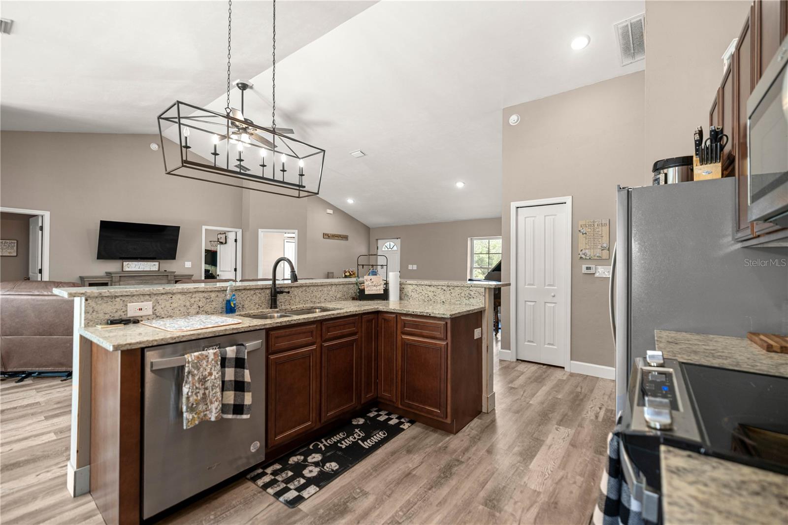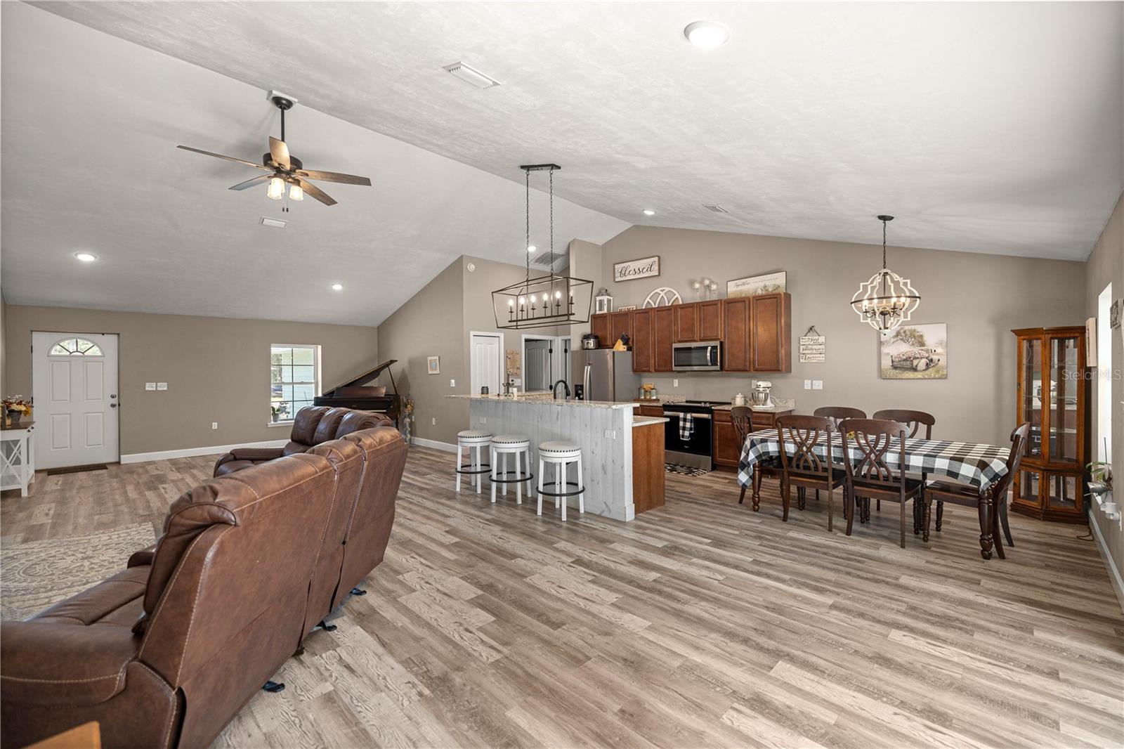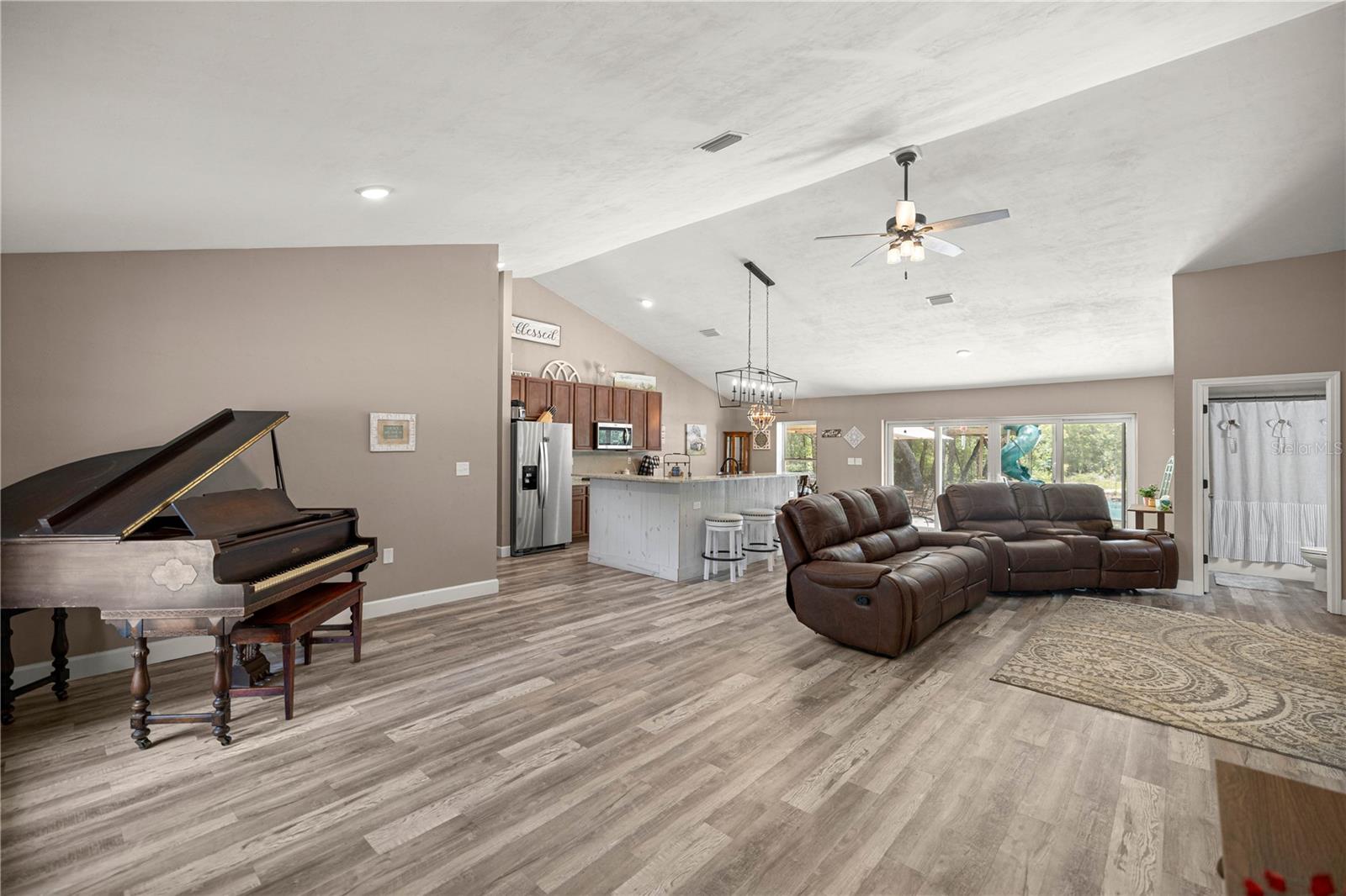 LUXURY COUNTRY ESCAPE ON 12+ ACRES Experience the perfect fusion of modern elegance and country freedom in this 2-year-new custom home, privately tucked away at the end of a long, winding drive. Spanning 2,100+ sq. ft., this 4 bedroom, 2 bath beauty features soaring vaulted ceilings, an airy open floor plan, and thoughtful details throughout. The heart of the home—its gourmet kitchen—flows seamlessly into the dining and living areas, making entertaining effortless. A split bedroom layout offers privacy, while the luxurious owner’s suite boasts trey ceilings, patio access, a walk-in closet, and a spa inspired bath with dual vanities, a tiled walk-in shower, and a deep corner soaking tub. Step outside and you’ll find your own backyard wonderland: a custom above/below-ground pool with a whimsical treehouse slide, expansive covered patio, and endless room to roam. A massive 45’x60’ pole barn easily stores tractors, RVs, and all your toys. Three fenced paddocks, a horse shelter, and a dedicated dog run make this property a dream for animal lovers. Peach and orange trees bring seasonal sweetness to your land, while the quiet setting offers pure privacy—just minutes from town. Upscale country living doesn’t get better than this.