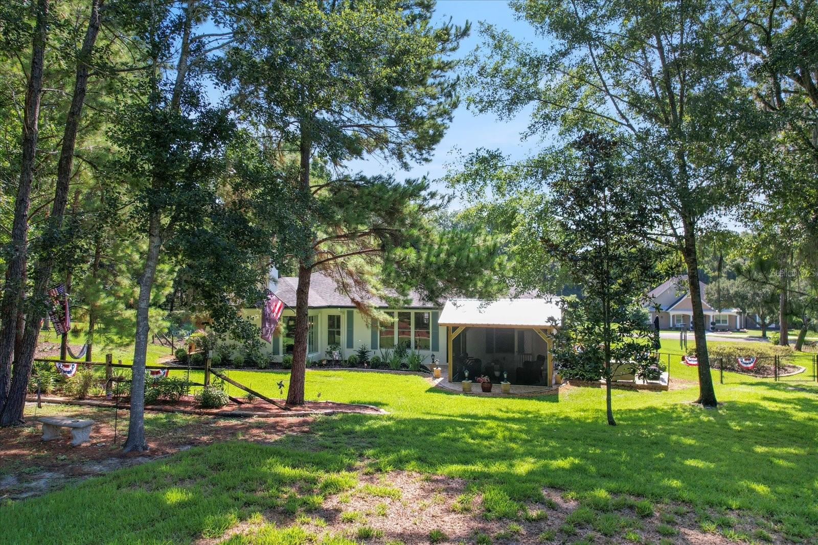 Superbly designed for beauty and function, this custom Arthur Rutenberg home sits on a rare 1.43 picturesque acres, and is a true example of the pride of homeownership. Roof replaced in 2021 (home and gazebo), upgraded 5-ton AC 2022, water heater 2018 and too many updates/upgrades to mention, complete list attached. The open and bright floorplan features 3 bedrooms, 2 bathrooms, gourmet chef’s kitchen, executive office/library, formal dining, formal living, and a magnificent great room. The master craftsmanship is highlighted by grand windows, 10 ft ceilings, designer lighting, soft contemporary interior paint tones, plantations shutters, and warm hardwood floors. No detail was untouched or expense spared in the remodeling of the home. Some of the distinctive updates/upgrades are: Completely upgraded and custom kitchen featuring solid wood cabinetry, beautiful quartz countertops, Italian marble backsplash, custom built-in cabinetry/showpieces, expansive island, new appliances, designer Italian porcelain tile, and ample storage. The master bath features granite countertops with double sinks, relaxing jacuzzi soaking tub, porcelain tile, spacious walk-in roman shower, & walk-in closet with beautiful and functional custom closet systems. Additional noteworthy features of the home are: window replacement in the home, stunning crown molding/baseboards/window and door trim, closet system in all the closets, expanded rear porch with brick pavers and a new custom screened pavilion with power, lighting/fan, outlets/USB ports. Totally refurbished gazebo, exterior repainted 2016, door handles/hinges/hardware replaced, fireplace/mantle renovation, LED lighting throughout, full guest bathroom remodel, professional landscaping/hardscaping, and so much more! Fabulously designed for entertaining or peaceful relaxation. This home is exquisite to say the least. Take a tour - https://my.matterport.com/show/?m=CTmwXgq4bET or video tour - https://player.vimeo.com/video/981290330?badge=0&autopause=0&player_id=0&app_id=58479