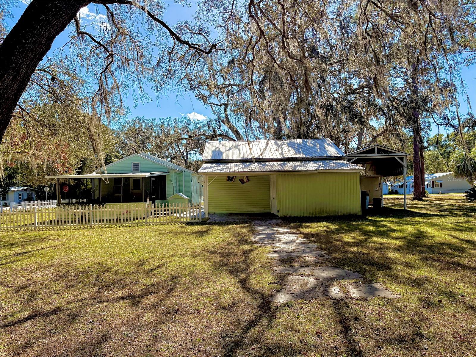NATURE LOVERS! Set your GPS for this Beautiful Vintage Home with the country charm you’re looking for. Pride of ownership is evident in how this home has been cared for. Corner lot on .80 acre with mature oaks and a park like setting. Two bedroom one bath quaint country kitchen with vintage cabinetry. Bead board ceilings in kitchen. Enclosed back porch perfect for office or bonus room. Cookouts, parties, and backyard gatherings can all be enjoyed from an additional large screened in porch. Oversized garage includes an upstairs room that is fully insulated. TONES OF STORAGE!! RV shed with RV hook up adjacent to garage. NATURE LOVERS DON'T MISS THIS OPPORTUNITY. To live close to the hiking and biking trails and access to the Withlacoochee River and State Forest.