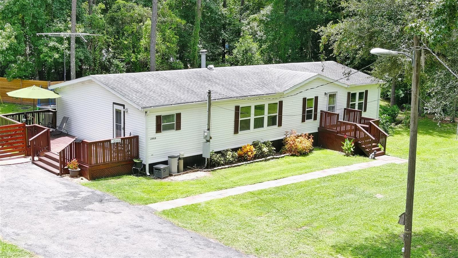 Nestled on a sprawling 1.3-acre lot in the heart of Brooksville, this charming home offers a tranquil retreat from the hustle and bustle of everyday life. The expansive property boasts lush greenery and mature trees, providing ample privacy and a serene atmosphere. The home itself features a well-maintained exterior with a welcoming front porch, and a side deck perfect for enjoying your morning coffee or evenings. Inside, you'll find a cozy and functional living space with an open floor plan that seamlessly connects the living room, dining area, and kitchen. The kitchen is equipped with modern appliances and ample storage space, making meal preparation a breeze. The home offers 3 comfortable bedrooms , and 2 bathrooms. The spacious 1.3-acre lot provides endless possibilities for outdoor activities, with a 2 car garage with extra storage space, Above ground pool, and unique "clubhouse", lots of space for gardening, or simply relaxing in nature. With its peaceful setting and convenient location in Brooksville, this mobile home offers a unique opportunity to embrace a simpler, more relaxed lifestyle.