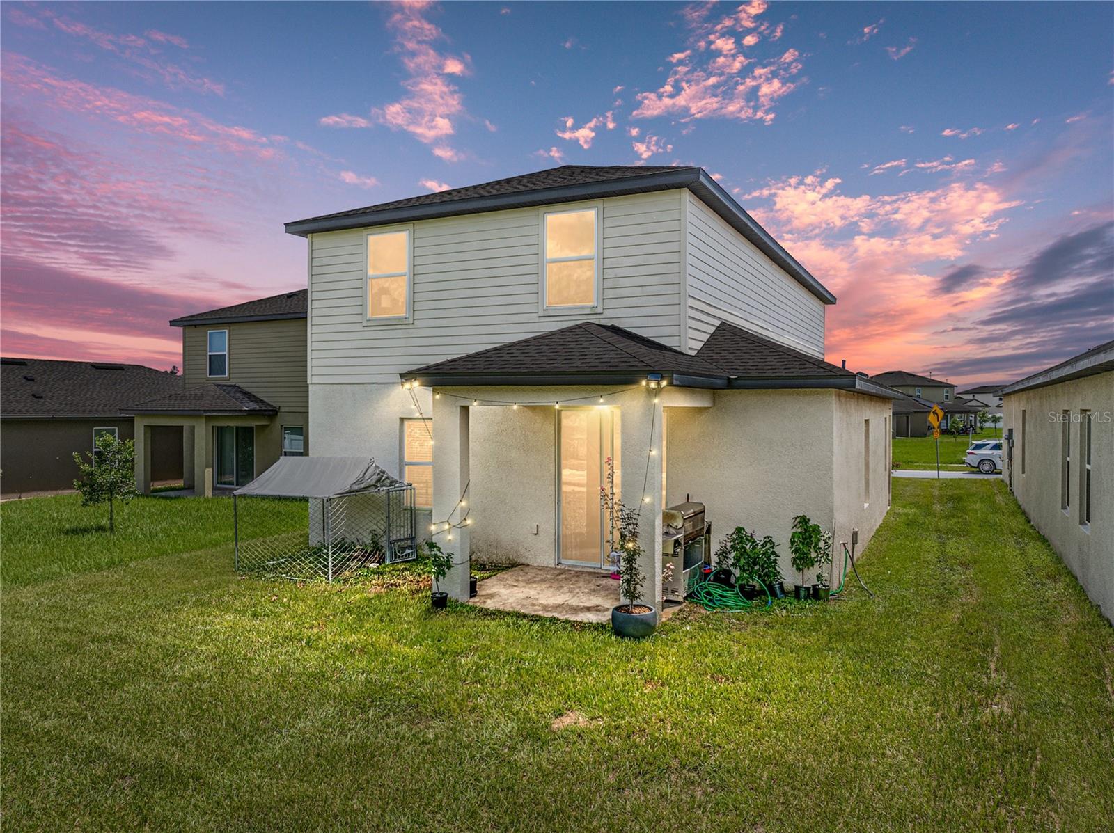 Why wait on new construction?! Built in 2022, this like-new 5 bedroom, 3.5 bath, 2 car garage, 2 story home offers expansive, open living spaces and a flexible bedroom layout suitable for a wide range of new home seekers. Located in the desirable Trilby Crossings neighborhood, you are welcomed by sidewalk-lined streets and a covered entryway. Step inside to easy-to- maintain plank tile flooring, a modern color palette, and a first floor designed for entertaining. The main living area is spacious and features a sliding door to the covered patio, a ceiling fan, and open sightlines of the nicely appointed kitchen and dining room providing wood cabinetry, granite countertops with breakfast bar seating at the central island, pantry storage, and a 4 piece stainless steel appliance package. Privately set on the first floor, the primary suite has plush carpet flooring, a large walk-in closet, and a lovely ensuite bathroom with dual sinks and a walk-in shower with a glass enclosure. Completing the first floor is the laundry room and a half bath for guest’s convenience! Stroll up the staircase to a carpeted second floor with a bonus room/loft, 4 generously sized bedrooms, and 2 full bathrooms with tub/shower combos. Trilby Crossings is a centrally located Brooksville community with just a short drive to major highways and offers a playground and dog park in the low HOA fee. Do not miss your chance to view this sizable like new home; call us today!!