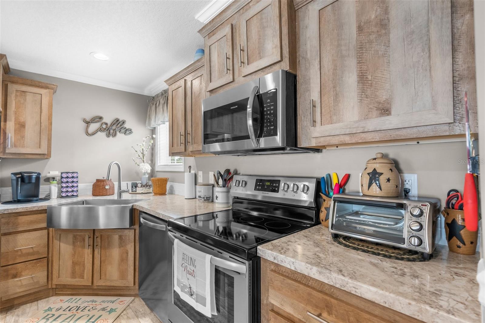 Welcome to this STUNNING and spacious open floor plan home, built in 2022 and located in the GATED golf community of Brookridge. This one-owner property has received numerous upgrades inside and out. Inside, you'll enjoy upgraded stainless steel appliances, energy-efficient 6-inch insulation, crown molding throughout, and elegant solid wood cabinets. The home also features taller toilets for added comfort, a whole-house ventilation system, new ceiling fans, 6-inch baseboards, and ceiling-mounted AC vents for improved airflow. Decorated in modern 2024 colors, this home was built by Destiny Home, a forward-thinking builder. Outside, the property offers an extended driveway, rain gutters, and a concrete patio ready for a gazebo while located in FLOOD ZONE X, NO FLOOD. A sidewalk surrounds the entire home to help keep dirt out, and a new carport provides additional covered parking. The 10x26 garage offers impressive storage space with two lofts, perfect for storing a golf cart. The home also includes double-pane tilt windows, and all books and manuals will be transferred to the new owner. Be sure to view the 3D TOUR and WALK-THROUGH VIDEO under "Virtual Tour." Located directly on the golf course and shielded by trees for privacy, this home perfectly balances luxury, privacy, and convenience. The 55+ gated community features a 24/7 security guard, an 18-hole par 72 golf course, tennis, pickle-ball, bocce, shuffleboard, a heated pool, a sauna, fitness center, clubhouse, and picnic areas—offering endless activities. Outside the community, you'll find local attractions like Weeki Wachee Springs with its famous live mermaid shows, Buccaneer Bay, and the beautiful Weeki Wachee River. The charming downtown Brooksville is just minutes away, offering quaint shops, restaurants, and coffee spots. Plus, you're close to public boat ramps leading to the Gulf of Mexico, public golf courses, parks, hiking and biking trails, medical facilities, shopping centers, and outlet malls. Tampa's concerts, sporting events, and Tampa International Airport are just a short drive away. Bring your golf cart and start living the Florida lifestyle today!