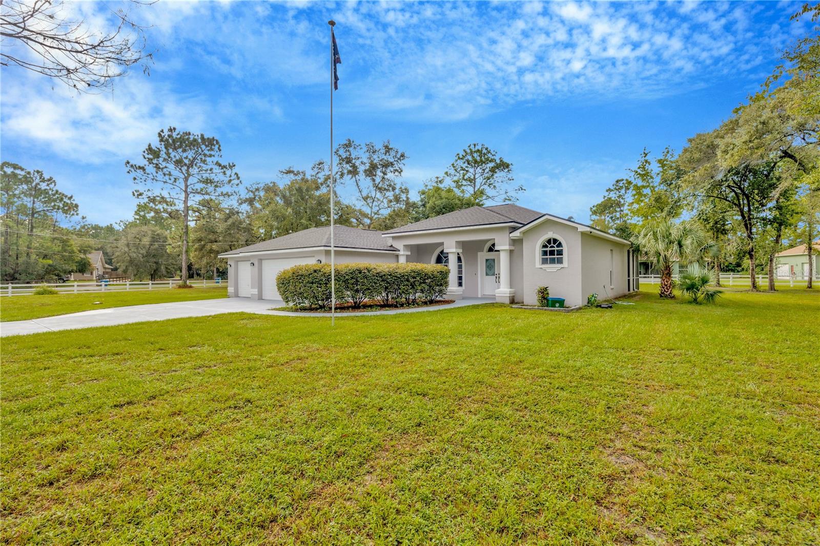 A Dream Home Awaits: Take Flight to Your Own Country Estate A breathtaking panorama with: lush greenery, majestic shade trees surround a secluded estate nestled among nature’s beauty. You have arrived in paradise, at this prime location. Step into a world of refined elegance, where every detail has been meticulously crafted to create a truly exceptional living experience. From the grand entrance to the well planned living spaces, you'll be captivated by the harmonious ambiance of country charm yet utterly delighted with the modern marvel of applied design sophistication in this newly remodeled 3 bedroom, 2 bath, 3 car garage masterpiece complete with a new driveway. From the new luxury waterproof vinyl flooring & grand windows throughout allowing the most captivating natural light quality, combined with the rounded curves of the walls, there is no detail overlooked providing you with that “flying high” feeling of excitement and wonder as to what is yet to captivate your feeling of home and hearth. This exceptional home is more than just a residence it’s a lifestyle. With its unique design elements, thoughtful touches for even the most discriminating of tastes, it offers the oh so perfect combination of comfort with the ideal flow of the open floor plan, which seamlessly connects the living spaces, creating a sense of harmony and balance inviting meaningful family time. The spacious, bright kitchen, features white cabinetry and top of the line stainless steel appliances, is a culinary enthusiast’s cherished vision of efficiency with a well designed layout ensuring a smooth and fun cooking experience while making the most cherished memories with family and friends in the spacious dining room area. You can’t help but notice the appealing window so perfectly designed that adds to the most enjoyable dining experience bringing the outside greenery inside adding more beauty to your meal. An evening gazing out at the stars in your screened in porch/sunroom is an ideal spot for relaxation and entertaining. The fenced yard provides a secluded outdoor oasis, ideal for gardening or simply enjoying the peace & Quiet. Retreat to the primary bathroom, a sanctuary of tranquility with dual sinks, a luxurious soaking tub is the perfect way to end the day before retiring for the night in your private primary bedroom haven. The second bathroom offers a similar spa-like experience for family and guests to enjoy. Immerse yourself in the tranquility of nature’s playground while enjoying the elegance of a modern estate. This is your dream come true! Don’t let your dream fly away, schedule your appointment today and experience firsthand the perfect blend of this stunning one acre property and elegant living at its absolute best. NEW ROOF