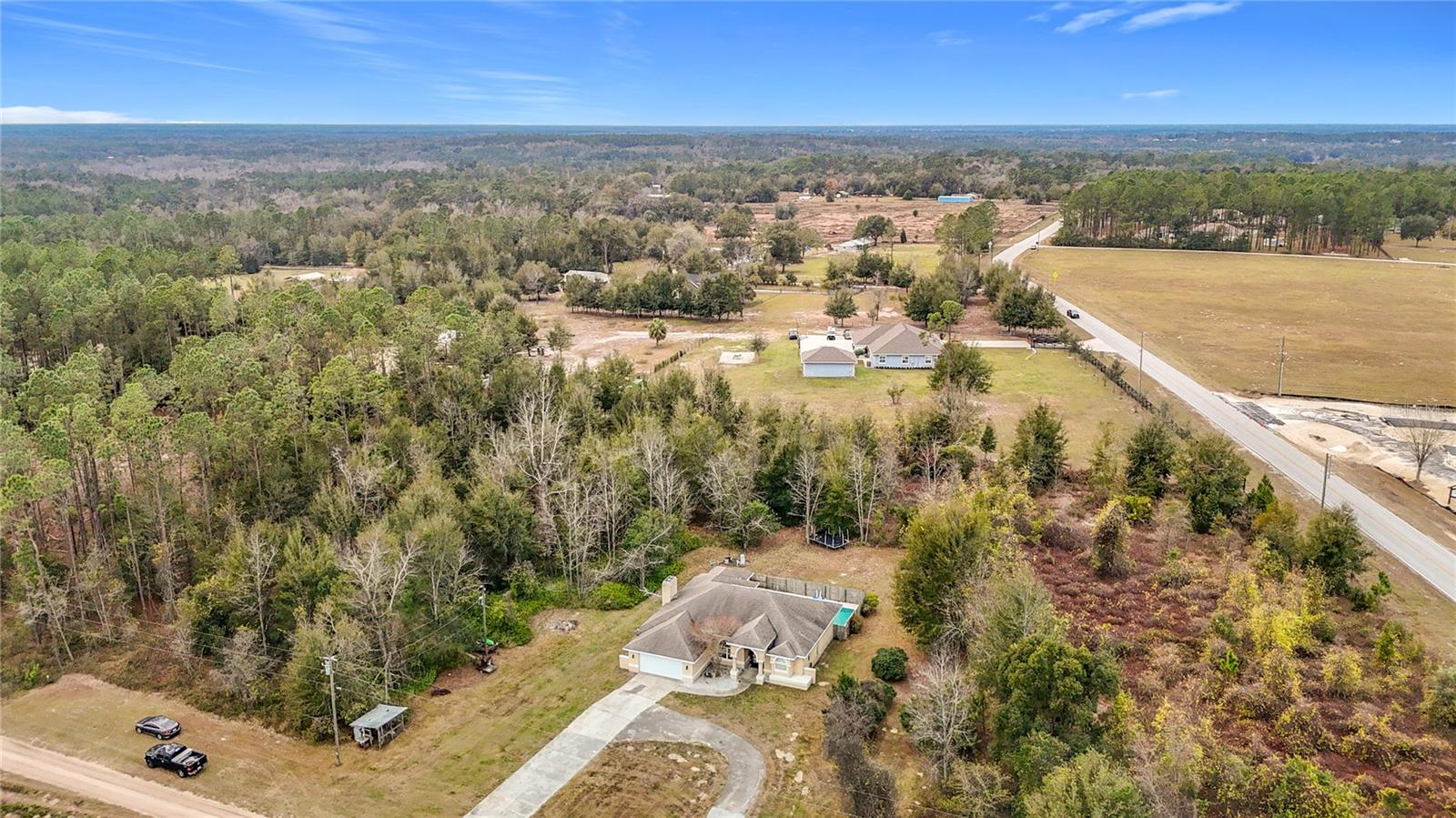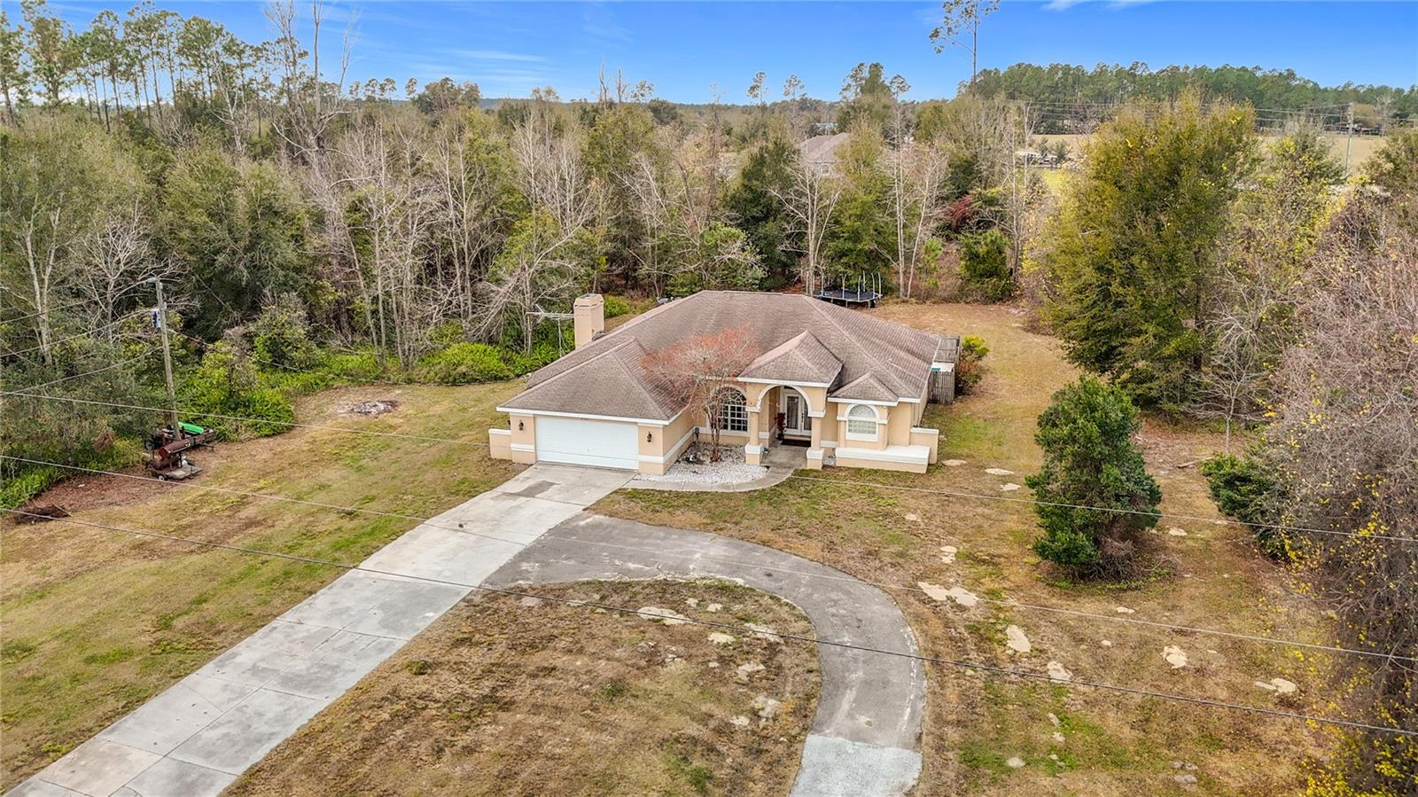 Welcome to Your Private Paradise! Discover the perfect blend of tranquility and convenience at 4367 Burns Road, Brooksville, FL. where peaceful country living meets modern comfort. Nestled on 3.2 sprawling acres, this stunning 3-bedroom, 2-bath Split Plan Pool home offers the ultimate retreat with plenty of space to roam and grow. Step through the beautiful glass Double-Door entry into a haven of comfort and elegance, bright and inspiring with unique architecture . The vaulted ceilings create an airy, open ambiance, complemented by the home's spacious layout of 1,982 sq. ft. The flowing split floor plan is perfect for family living and gatherings or spaces of privacy too. Upon entry, the Spacious Living Room area with double French doors along the wall, allows you to glimpse into the sparkling pool and they also provide quick & easy pool access. The generous size kitchen and dining area flow seamlessly together. The dining area has a huge viewing window to see the pool area and the Lanai, allowing more natural light to come in. The kitchen also features an L-shaped bar overlooking the Florida Room that has a built-in electric fireplace to enjoy. The second bathroom has a shower/ tub combo with a pool access door for those swimming days. The large Master Bedroom features another set of French doors that provides easy access to the pool area and also a nice size walk in closet. The Master bath has a nice garden tub, separate shower & dual sinks. The 2 bedrooms are nice sized and have ample closet space as well. Outside, your personal Oasis awaits! Surrounded by nature and unparalleled privacy, you can dive into the huge Sparkling Pool, perfect for sunny Florida days, surrounded by a privacy fence or just enjoy the quiet, lush, private surroundings of this 3.2 acre parcel where nature is your closest neighbor around you. The massive Lanai area is perfect for cookouts where you can entertain or have family gatherings. Zoned for agriculture, this property is ideal for those dreaming of a sustainable lifestyle, raising animals, or creating a garden paradise. Whether you're entertaining or relaxing, this home delivers all that you will ever need to expand and create memories for years to come. Bring your boat, RV, ATV, and ALL your toys.. you have plenty of room to explore. Conveniently located, you’ll have the best of both worlds: the serenity of rural living and access to all city conveniences and also a quick and easy commute to the big city of Tampa and Tampa Intl. Airport within 50 min. Don't miss this rare opportunity to own land, a beautiful home and a piece of Florida paradise! Schedule your tour today and start living the life you’ve always imagined.