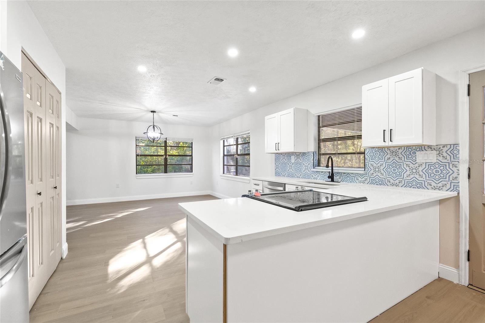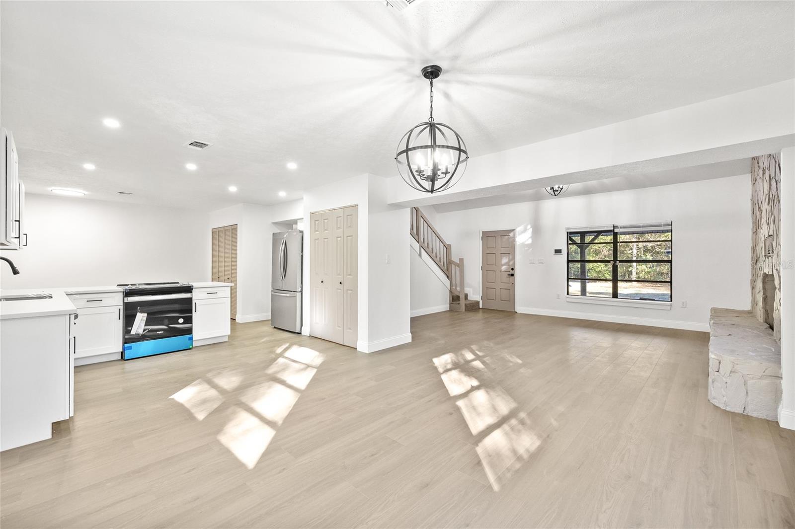 Welcome to 8057 Shaw Rd, where modern elegance meets tranquil country living. This beautifully remodeled home features a brand-new kitchen with stunning quartz countertops, sleek stainless steel appliances, and a functional design perfect for entertaining. The home boasts new, stylish bathrooms and luxury vinyl plank flooring throughout, adding a cohesive and contemporary touch. With a newer roof and AC, you'll enjoy peace of mind for years to come. Nestled on 2.5 acres, this property offers the space and serenity you've been dreaming of—ideal for outdoor activities, gardening, or simply enjoying nature. Don't miss your chance to own this exceptional Brooksville retreat! Also available as a lease option.