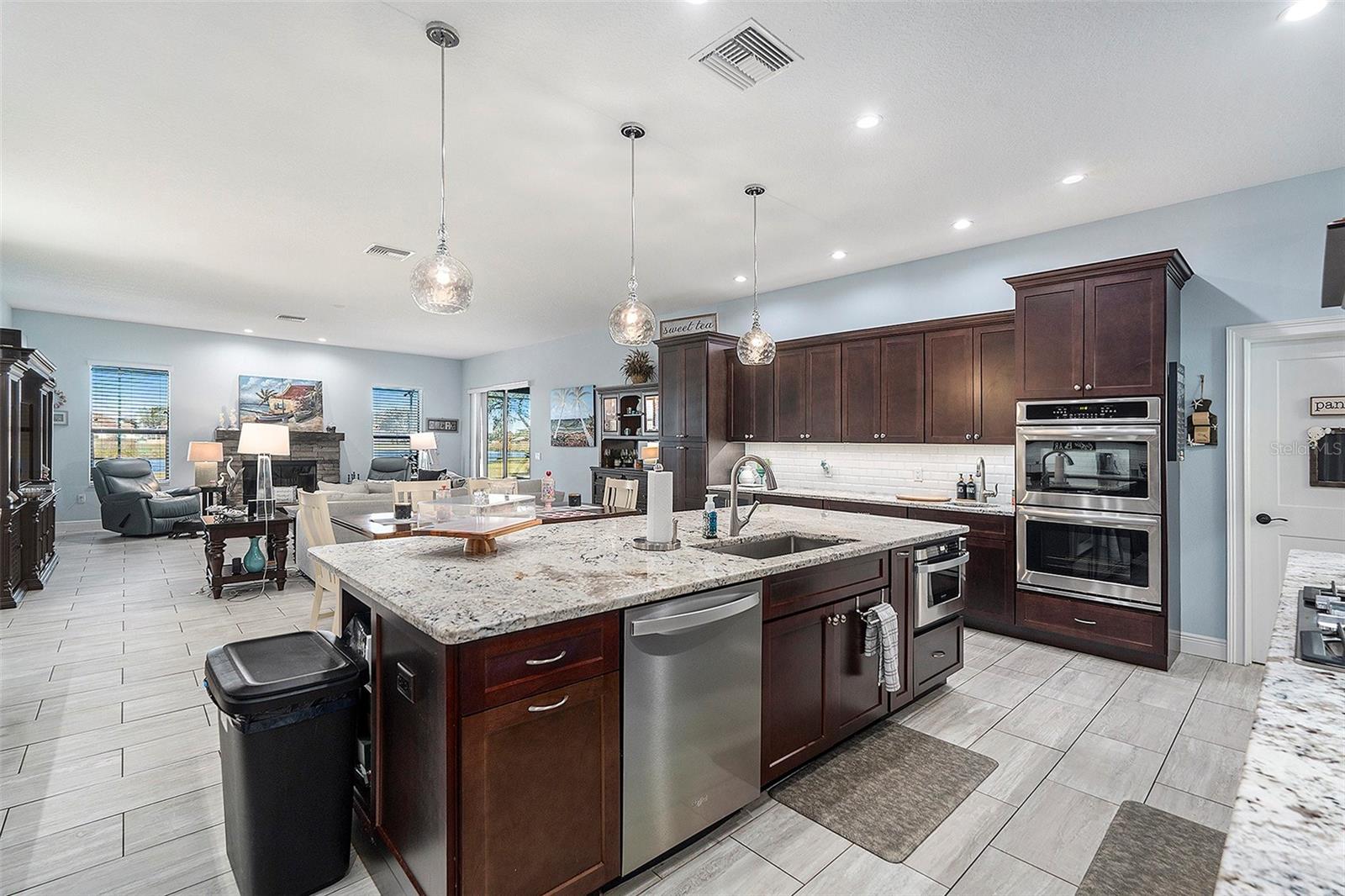 This stunning 2019-built pool home is located in the prestigious Glen Lakes Golf and Country Club community, offering 4,296 square feet of luxurious living space and a total of 5,671 square feet under the roof. With five bedrooms, four bathrooms, an office/den, and a three-car side-facing garage, it combines spaciousness and elegance. Situated on a sprawling 0.74-acre waterfront lot with breathtaking views of the lake and Bird Island. The property is not in a flood zone and has no CDD. The home’s curb appeal is undeniable, with its impressive stone-accented front porch, side-facing epoxy-coated floor garage with attic storage, and a brick paver driveway that includes an additional parking pad. Upon entering through the luxury double doors, you are welcomed into an elegant foyer leading to a formal dining area and the main living spaces. The interior is adorned with high-end finishes, including solid wood doors, ceramic tile throughout, which even extends under the kitchen cabinetry for ease of future renovations. The gourmet kitchen features granite countertops, stainless steel appliances with extended 10 year warranties, a gas cooktop, double oven, built-in microwave, bar sink, wine fridge, and a walk-in pantry equipped with California Closets Built-Ins. Adjacent to the kitchen is a spacious family room complete with a cozy gas fireplace and sliding doors that open to the outdoor living space. The screened-in lanai offers a 400 square feet covered outdoor kitchen area with gas hookup, a large pool with a waterfall feature, sun shelf, electric heater, and built-in dining booth. A separate entry provides convenient access down the hall to the pool bathroom. The luxurious primary suite is a true retreat, featuring a 16x28 bedroom with direct access to the lanai, two walk-in closets with California Closets built-ins, and a spa-like bathroom with a garden tub, separate walk-in shower, split vanities, and a private water closet. The additional bedrooms are equally impressive. Bedroom 2 is spacious with a walk-in closet and California Closets built-ins. Bedroom 3 hosts its own full en-suite bathroom. Bedroom 4 also has a full en-suite bathroom and a walk-in closet. Bedroom 5 is next to a full bathroom that doubles as a pool bathroom. The home also includes a custom-designed laundry room that’s a dream come true, featuring quartz countertops, a utility sink, ample cabinetry, and a built-in dog wash station. Additional highlights include two HVAC units installed in 2019, an oversized 2019 hybrid water heater, and impeccable attention to detail throughout. Glen Lakes is a premier guard-gated community with 24/7 security, Glen Lakes features a championship 18-hole golf course designed by Ron Garl, named the Best Golf Course Community by the Hernando Sun in 2023, making this home not only a spectacular property but part of an award-winning community with separate Golf Club Memberships, as well as basic cable and internet included in the HOA Fees. Set alongside Florida’s serene Nature Coast and surrounded by 85,000 acres of state-owned wildlife preserve. Just minutes from the Gulf, the community offers a range of social membership amenities, including a country club with a ballroom, top-rated restaurant, full bar, fitness center, pool, pickleball courts, tennis courts, bocce ball, billiards, and numerous social clubs.