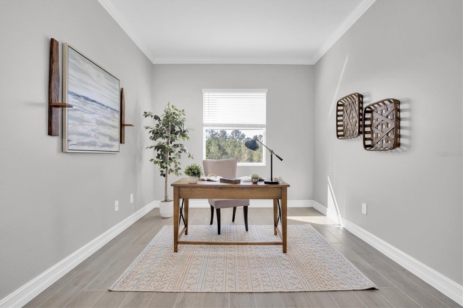 Turn-Key, Brand-New Home on Oversized Conservation Lot in Southern Hills Plantation. Discover the perfect blend of sophistication, comfort, & convenience in this stunning, move-in-ready home located in desirable Southern Hills Plantation. Built in 2024, this Lennar Halos 1 story floor plan features 3 spacious bedrooms, 2.5 baths, a versatile office or flex, & a 2 car garage w/ a unique walk-in storage loft. Nestled on an oversized .28-acre lot, this home enjoys serene views of lush conservation areas and a peaceful pond, offering tranquility & privacy. With a transferable 2-year limited builder warranty & 10-year structural warranty, this property ensures a secure & stress-free investment. From the moment you arrive, this home’s timeless curb appeal captivates w/ its neutral palette, stone accents, and thoughtfully designed landscaping. A 30-yr dimensional shingle roof, paver driveway + walkway, & welcoming front porch w/ wrought iron detailing set the tone for elegance. Inside, high ceilings and a tray ceiling with crown molding create a sense of openness, while one consistent wood-look tile floor and a fresh coat of Sherwin Williams Drift of Mist paint throughout provide a cohesive, modern aesthetic. The split-bedroom floor plan offers privacy for all. Secondary brs are generously sized, each featuring walk-in closets, and are conveniently located near a full bath. The primary suite, tucked at the back of the home, serves as a tranquil retreat with its peaceful views, tray ceiling with crown molding, & recessed lighting. The spa-inspired ensuite boasts dual sinks with quartz counters, a walk-in shower with neutral tile, and a spacious walk-in closet. The gourmet kitchen is thoughtfully designed for both function and style. 42-inch white shaker cabinets with crown molding and brushed nickel hardware are paired with elegant quartz countertops and a classic subway tile backsplash. Stainless steel appliances, including a built-in oven, microwave, gas cooktop, & vent hood, elevate the space, while a butler’s pantry & walk-in pantry provide exceptional storage. The oversized island with seating for three invites casual dining and effortless entertaining. Adjacent to the kitchen, the open-concept living and café dining areas are filled with natural light & showcase breathtaking views of the conservation area. A versatile office or flex space provides endless possibilities. The outdoor living space is equally impressive. The extended covered lanai is ideal for al fresco dining or unwinding with a view, while the oversized lot offers ample room for future backyard enhancements. Additional features include a dedicated laundry room w/ washer & dryer, energy-efficient & smart home technology, and an innovative garage storage loft that could easily be converted into additional living space. Southern Hills Plantation provides a lifestyle of unmatched luxury, with HOA fees covering lawn care, irrigation, cable, and internet. Residents enjoy exclusive resort-style amenities, including a pool, fitness center, dog park, and 24-hour manned security gate. Golf enthusiasts can take advantage of the private 18-hole Pete Dye Signature Golf Course, complemented by a clubhouse, pro shop, and community bar and grill. This exceptional home offers a rare opportunity to enjoy modern construction, a serene setting, and resort-style living without the wait. Schedule your private showing today and experience the charm of Southern Hills Plantation for yourself.