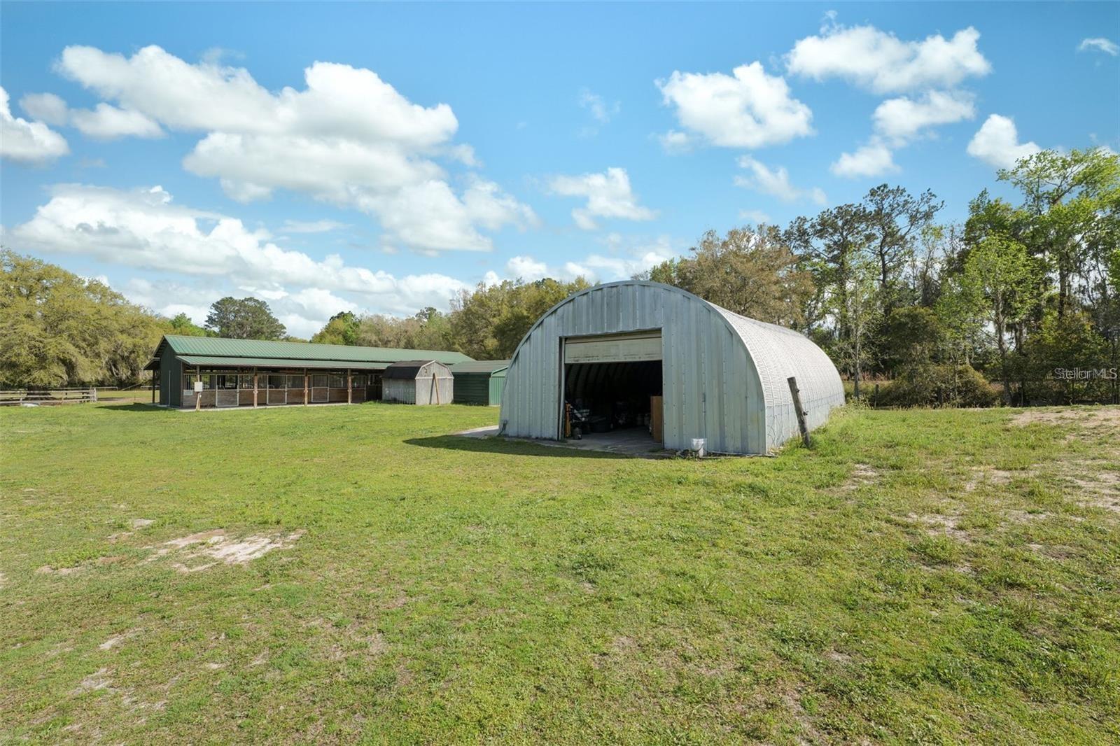 Welcome to Brooksville! This 12 acre (MOL) property comes with a 3 bedroom 2 full bath 2005 Jacobson Manufactured home! with a new AC installed on 2023. Also, a 14 stall horse BARN (concrete floors, rubber matting and attached feed/storage room), oversized steel Quonset building, three sheds and a tiny house. TWO RV hook-ups! Multiple pastures and a concrete euorcizer walker pad are in place. Each stall, paddock and pasture area have an own automatic waterer. With over 6000 total sq footage, 2112 of it heated, there are so many possibilities with this property. The split floorplan offers a large separate family room with a fireplace. This area could easily be converted into more bedrooms. Master suite has its own bath and walk-in closet. Livingroom and kitchen are together. Kitchen has a separate dining area and a large center island. Inside laundry room with ample storage. Two separate rear doors leading out to the 68-foot covered back porch. Home also has a beautiful front porch overlooking the pastures. All NEW vinyl flooring and fresh paint throughout. Pictures show previous flooring and paint. Property is completely fenced and cross fenced with a beautiful pond and outside area to enjoy the views. Paved road frontage and a circular drive. Just minutes from downtown Brooksville for all the conveniences., yet you still have that private country life that so many desire.