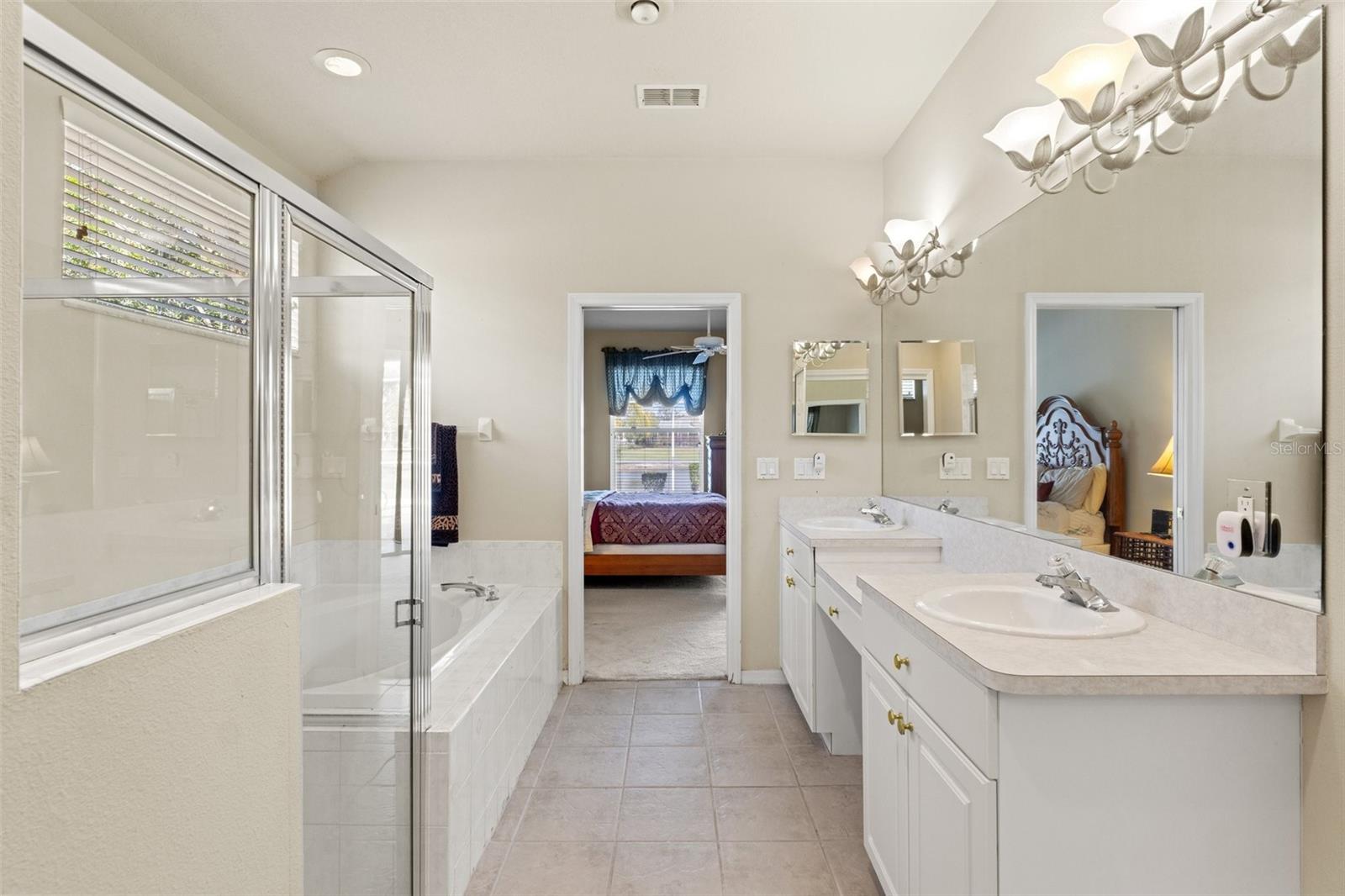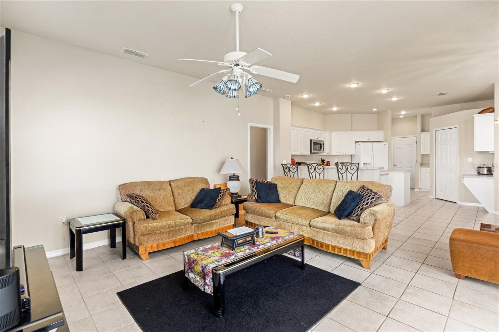 Price Improvement! Located in a desirable golf course community, this spacious 4-bedroom, 2-bathroom home offers an ideal floor plan that can accommodate multigenerational living with ease. The open-concept layout creates seamless flow between the living, dining, and kitchen areas—perfect for both everyday functionality and entertaining. With a split-bedroom design, there's privacy and flexibility to modify the space for extended family or guests. The gourmet kitchen includes a butler’s pantry, and the primary suite features a garden tub, separate shower, and ample closet space for a relaxing retreat. Step outside to enjoy a screened-in pool and lanai—your own backyard escape for relaxing or hosting. Additional highlights include a 3-car garage and a new roof to be installed prior to closing. As an added bonus, the seller is offering the buyer the option to select one interior paint color, to be completed before move-in. This home is located near top-rated schools, shopping, dining, and offers access to resort-style amenities within the golf course community. Schedule your showing today—this versatile home won’t last long!