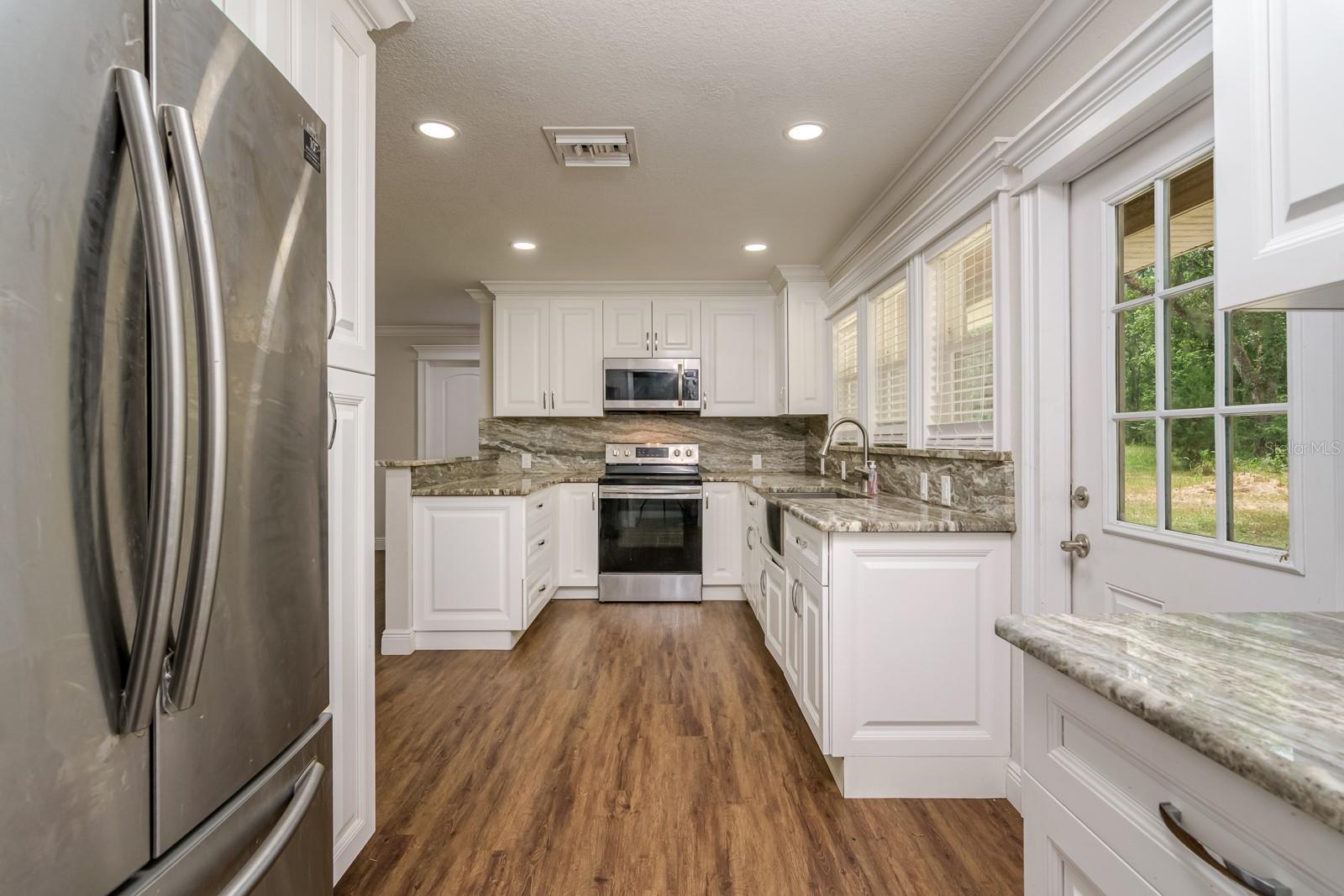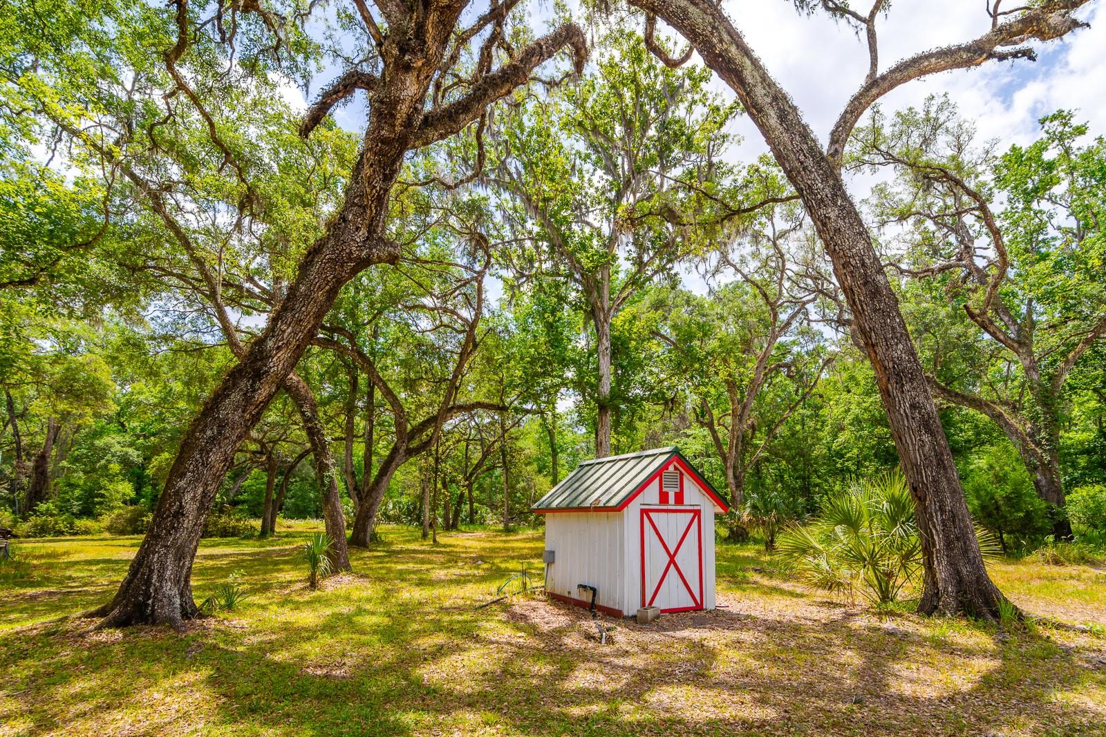 Welcome to your dream homestead! Nestled on 8.7 private acres, this incredible property offers the perfect blend of modern comfort, outdoor adventure, and room to grow — all without the burden of an HOA. The main home features 3 spacious bedrooms and 2 beautifully updated bathrooms. Enjoy cooking and entertaining in the gorgeous modern kitchen, complete with crisp white cabinetry, gleaming stone countertops, stainless steel appliances, and a deep stainless steel farmhouse sink. Elegant crown molding adds a touch of sophistication throughout. Retreat to the huge master suite, which boasts an upgraded en suite bathroom, stunning tile finishes, and a generous walk-in closet. The guest bedrooms are equally spacious, offering large closets, ceiling fans, and plenty of natural light. A fully upgraded guest bath showcases stone countertops and a tiled shower that feels like a spa retreat. You'll also love the convenience of the dedicated laundry room with sink. This property also includes a second building – a fully updated 1-bedroom, 1-bathroom guest house featuring brand-new flooring throughout. Perfect for guests, in-laws, or an office. Step outside and explore the expansive grounds. A firepit with a built-in seating area invites cozy nights under the stars. The huge pole barn provides ample space for equipment, hobbies, or even horses. With room to add a pool, garden, or anything you can dream of, this land is your blank canvas. Located just minutes from the Withlacoochee River National Forest and scenic riding trails, and only a short drive to the quaint shops and cafés of historic Brooksville. You'll also enjoy quick access to I-75, Suncoast Parkway (589), and US-19, making commuting a breeze. Spend weekends at the local beaches, or kayak the crystal-clear springs of Weeki Wachee – all just a stone’s throw away. This is your chance to own a peaceful, private sanctuary with all the conveniences of modern living and endless possibilities.