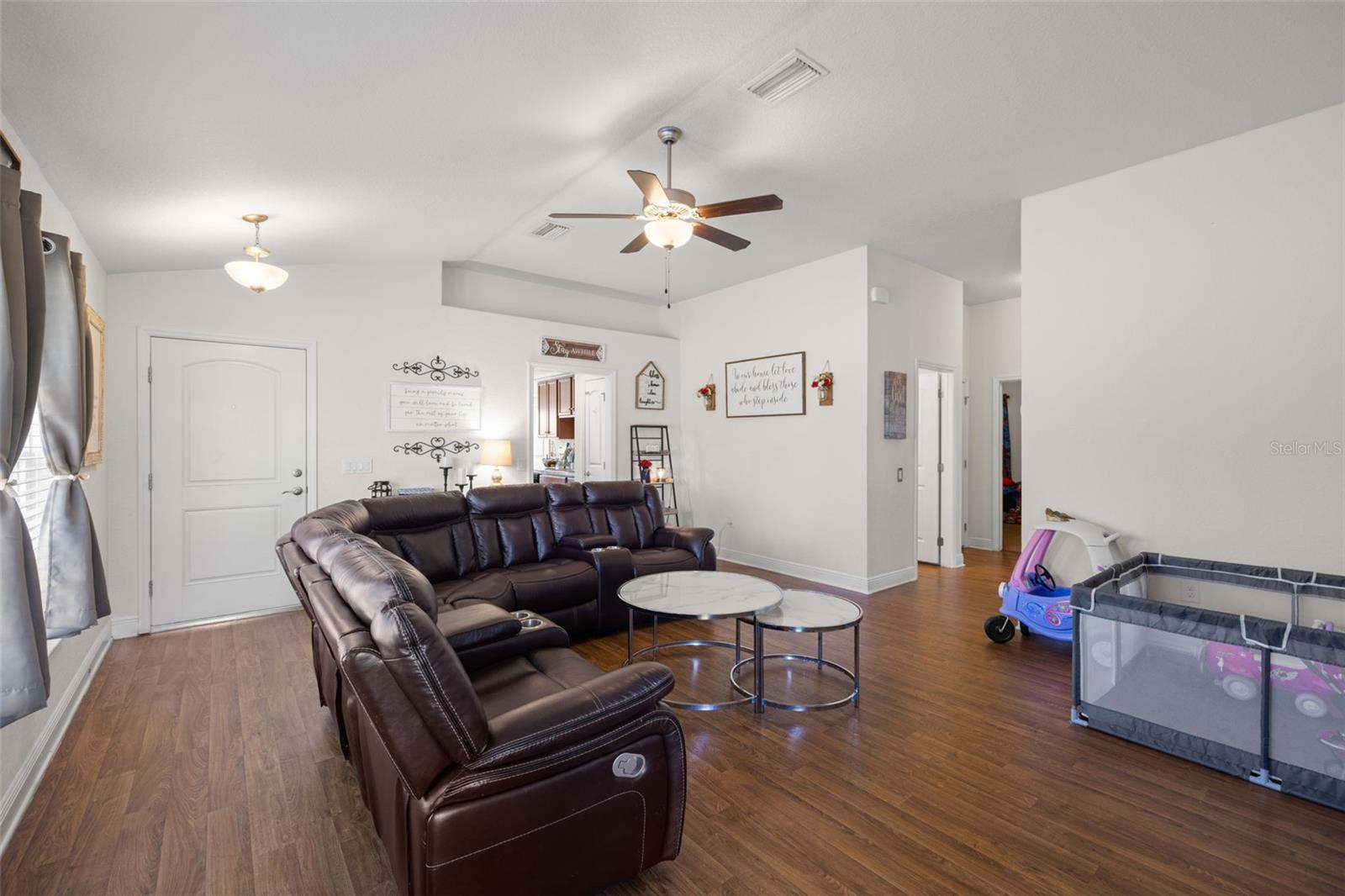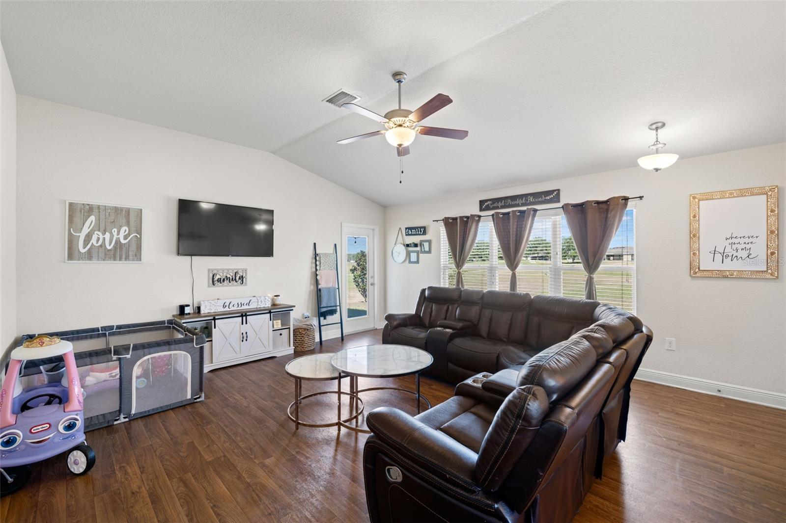 ROOM TO ROAM ON THIS .25 ACRE, CUL-DE-SAC, GOLF COURSE VIEW LOT! A WELL-MAINTAINED, 2016 BUILT ADAMS HOME, IN THE QUAINT COMMUNITY OF SHERMAN HILLS! A CHARMING STARTER OR RETIREMENT HOME WITH 3 BEDROOMS, 2 FULL BATHROOMS, 2 CAR GARAGE, AND A SPACIOUS GREAT ROOM FLOOR PLAN! A COVERED PORCH WELCOMES YOU. UPON ENTRY, YOU'LL NOTICE THE ELEVATED CEILINGS, NEUTRAL DECOR, CEILING FANS, DUAL PANE THERMAL WINDOWS, BLINDS, PLANT SHELVES, EASY-CARE LINOLEUM WOOD LOOK FLOORS, AND AN EXIT DOOR (WITH ADJUSTABLE INTERIOR BLINDS FOR PRIVACY) LEADING TO THE OUTDOOR COVERED PATIO FROM BOTH THE MAIN LIVING AREA & PRIMARY BEDROOM! THE GALLEY STYLE KITCHEN OFFERS STAGGERED WOOD CABINETS, PLENTY OF COUNTER PREP SPACE, A COZY DINETTE AREA, AND ALL THE APPLIANCES CONVEY WITH THE PURCHASE, INCLUDING THE WASHER & DRYER! THERE'S A LARGE MAIN BEDROOM RETREAT, AND ENSUITE BATHROOM WITH LINEN & WALK-IN-CLOSETS, AND A SHOWER & SOAKING TUB COMBO! TWO OTHER NICE-SIZE BEDROOMS, AND A GUEST BATH, PLUS AN INSIDE LAUNDRY! THE YARD HAS PLENTY OF ROOM FOR A POOL! SCHEDULE YOUR SHOWING TODAY! WELCOME HOME!