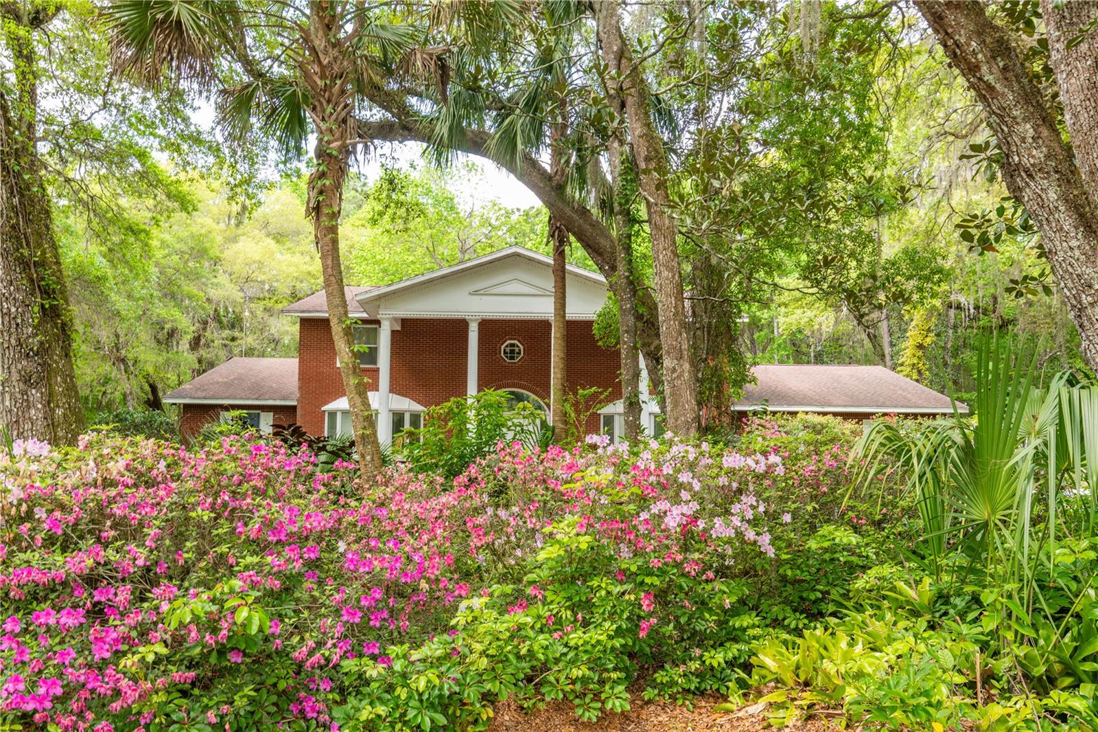 Step into timeless elegance with this custom-built British Colonial masterpiece, offering over 4,300 sq. ft. of air-conditioned living space plus an enclosed sunroom, spacious patio, and an oversized 2-car garage with additional storage. Set on 2.5 beautifully landscaped acres filled with fruit trees and flowering plants, this home offers space, privacy, and charm in equal measure. Built in 1983 by renowned builder Don Richards, the home features a solid brick exterior, a deep foundation, and unique architectural elements throughout. Inside, you'll find 5 bedrooms (including a spacious primary suite with private balcony), 4 full bathrooms, and thoughtful details that elevate every room—from 24-karat gold-plated fixtures to custom cut-glass accents framing the entryway. Enter through the tiled foyer with its soaring ceiling and arched doorways. The kitchen has been upgraded with granite counters and flows into a large laundry room and corridor. The living and dining rooms feature real polished wood floors, oversized bow windows, and elegant touches like a salon door and chandelier lighting. Relax in the sunken den, complete with rich wood paneling, a surround sound system, and a brick wood-burning fireplace. Adjacent, the bar/rec room boasts a tiled counter, wood paneling, and built-in benches with hidden storage. A cozy guest bedroom offers privacy in its own quiet corner of the home. Upstairs, the primary suite includes a carved wooden wardrobe, TV nook, and spacious bathroom with double sinks, dressing area, and balcony views over the backyard and neighboring farm. There are 3 additional generously-sized bedrooms, a study/library with built-ins, two smaller rooms perfect for hobbies or homework, and updated bathrooms with European bidets and dual sinks. Outside, enjoy your own private pool with a slide, electric heater, and an enclosed sunroom with lockable sliders and garden views. The home is equipped with 3-zone A/C, brand new water heater (2025), updated plumbing (2024-2025), and a durable roof in good condition. Additional features include: -Wired for alarm & intercom -Pool heater -Custom chandeliers (1 large, 7 small) -Attic storage -Colonial-style curved staircase -Iron security doors -Multi-use prayer room or pantry with built-in shelving. This property is an exceptional blend of character, comfort, and craftsmanship. Don't miss this rare opportunity to own a true Brooksville gem!