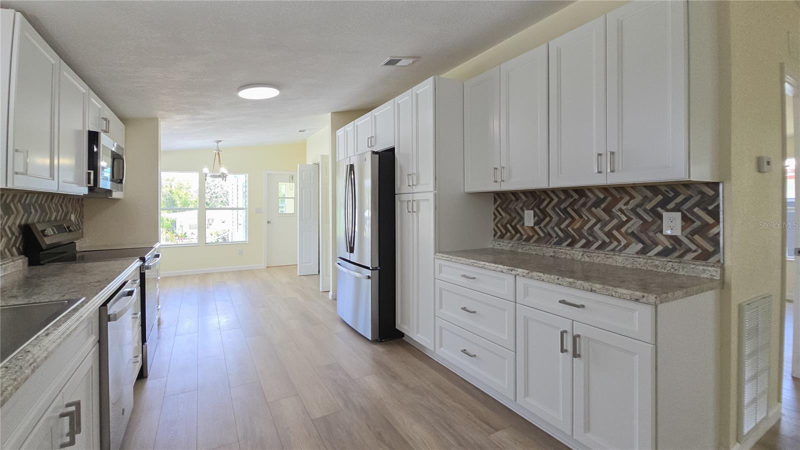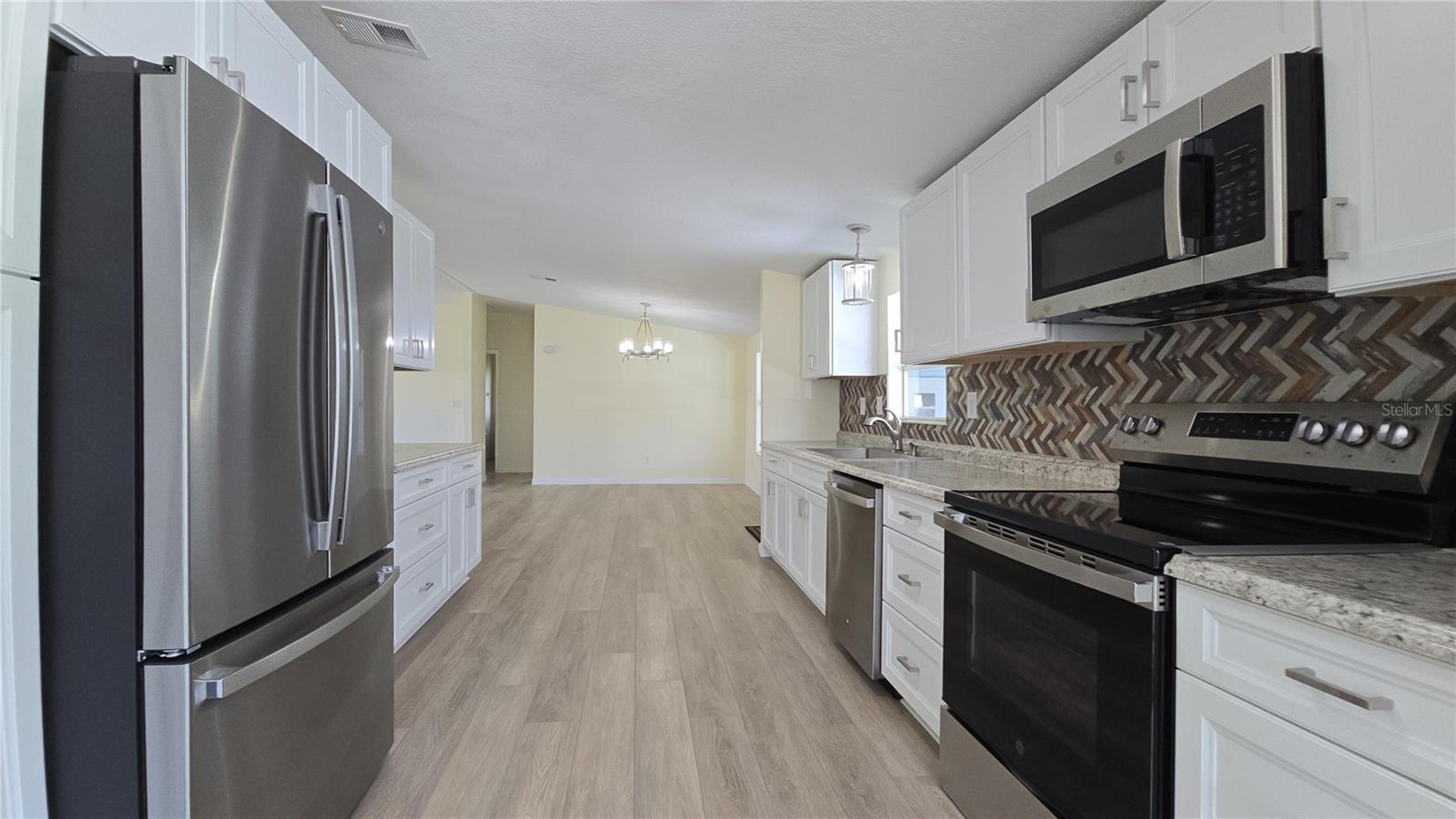 Step into this FULL RENOVATED 3-BEDROOM, 2-bath home featuring brand new LVP hybrid flooring and trim throughout, ALL NEW DESIGNER FIXTURES, LED LIGHTING, and fresh interior paint. The expansive kitchen is a chef's dream, offering an abundance of ALL WOOD/SOFT CLOSE cabinets, ample counter space, a pantry, and BRAND NEW APPLIANCES. Cathedral ceilings enhance the bright, open feel of the home, while the nearly 200 SQUARE FOOT GLASS ENCLOSED & TILED FLORIDA ROOM provides the perfect spot to relax or entertain. Tons of curb appeal of a FRESHLY PAINTED EXTERIOR AND DRIVEWAY. Enjoy the convenience of an INSIDE LAUNDRY. GOLF CART STORAGE NEW WATER HEATER 2025 RE-PLUMBED 2025 (NO GRAY PIPE) ROOF INSTALLED 2015 HVAC INSTALLED 2016 Ask your agent about the SELLER-OFFERED 2-YEAR HOME WARRANTY. Located in the vibrant High Point Golf Community, this home offers resort-style living in a friendly, active 55+ neighborhood. The High Point Community offers tons of amenities such as Golf, tennis, pickleball, heated pool, social events and so much more. High Point is located close to shopping, restaurants, entertainment, and medical facilities. Low HOA fees and you OWN YOUR OWN LAND.Don't miss this move-in-ready opportunity!