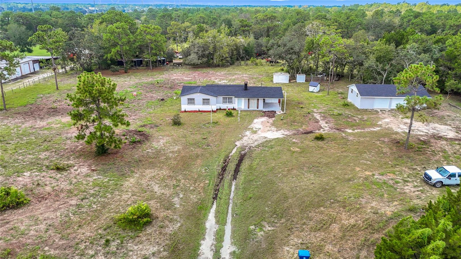 Welcome to this beautifully remodeled 4-bedroom, 2-bathroom home situated on 2.4 acres with endless possibilities. The property features a detached 3-car garage with electricity and a new roof, offering a unique opportunity to convert into a guest house, in-law suite, or rental unit. With two septic tanks and a private well, the land is ideal for adding mobile homes, bringing your animals, or building your dream estate. The neighboring properties already enjoy goats and chickens, making this the perfect setting for those who love country living. Inside, you’ll find a completely updated interior with new tile flooring throughout, a luxury kitchen with a large island, and brand-new stainless-steel appliances (never used). Both bathrooms have been tastefully renovated with high-end finishes and designer tile work. The spacious room is fully insulated and lined with windows, filling the home with natural light and views of the surrounding property. Additional upgrades include a new roof (home and garage), new water heater, and modern finishes throughout. With no HOA or CDD fees, this home offers true freedom. Bring your RV, boat, work vehicles, or even start a home-based business. Located just minutes from Walmart, BJ’s, shopping plazas, and with quick access to major highways, this home offers the perfect balance of peaceful country living with city convenience. Don’t miss this rare opportunity.