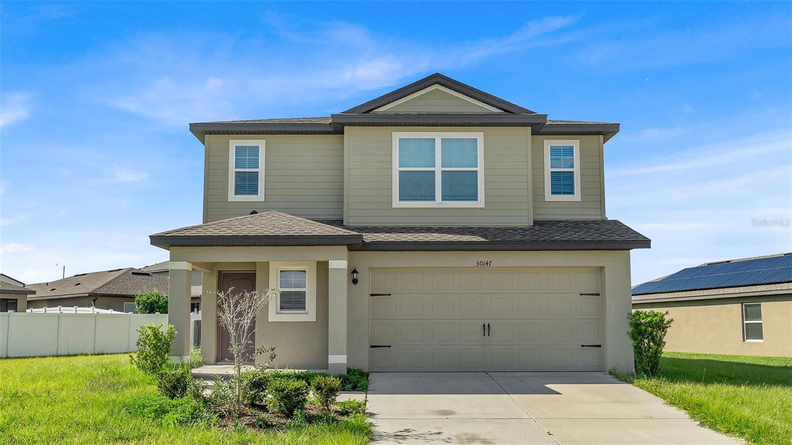Welcome to this beautifully designed two-story home in the desirable community of Trilby Crossing. Built in 2021, this 4-bedroom, 2.5-bath residence offers 1,823 sq ft of living space with a perfect blend of style, comfort, and functionality. The open-concept layout features a spacious living and dining area that flows seamlessly into a modern kitchen complete with granite countertops, 36” upper cabinets with crown molding, and energy-efficient Whirlpool® appliances. Upstairs, you’ll find generously sized bedrooms, including a private owner’s suite with a large walk-in closet and dual-sink vanity. Enjoy relaxing or entertaining outdoors with a covered back patio and lush green yard. Additional highlights include a two-car garage, smart home features. Trilby Crossing offers a family-friendly lifestyle with community amenities such as a playground, sports fields, pavilion, and even a fenced-in dog park. Conveniently located near US-301, I-75, and local shopping, this home combines modern living with a peaceful suburban setting. Move-in ready and waiting for its new owner!