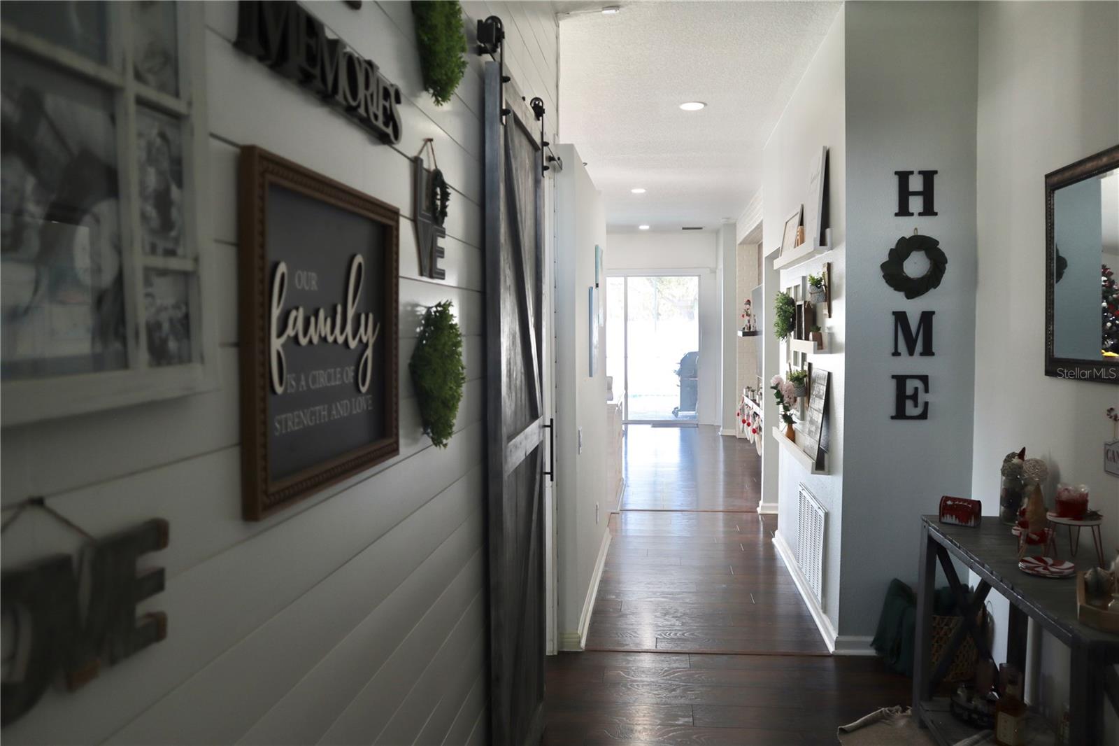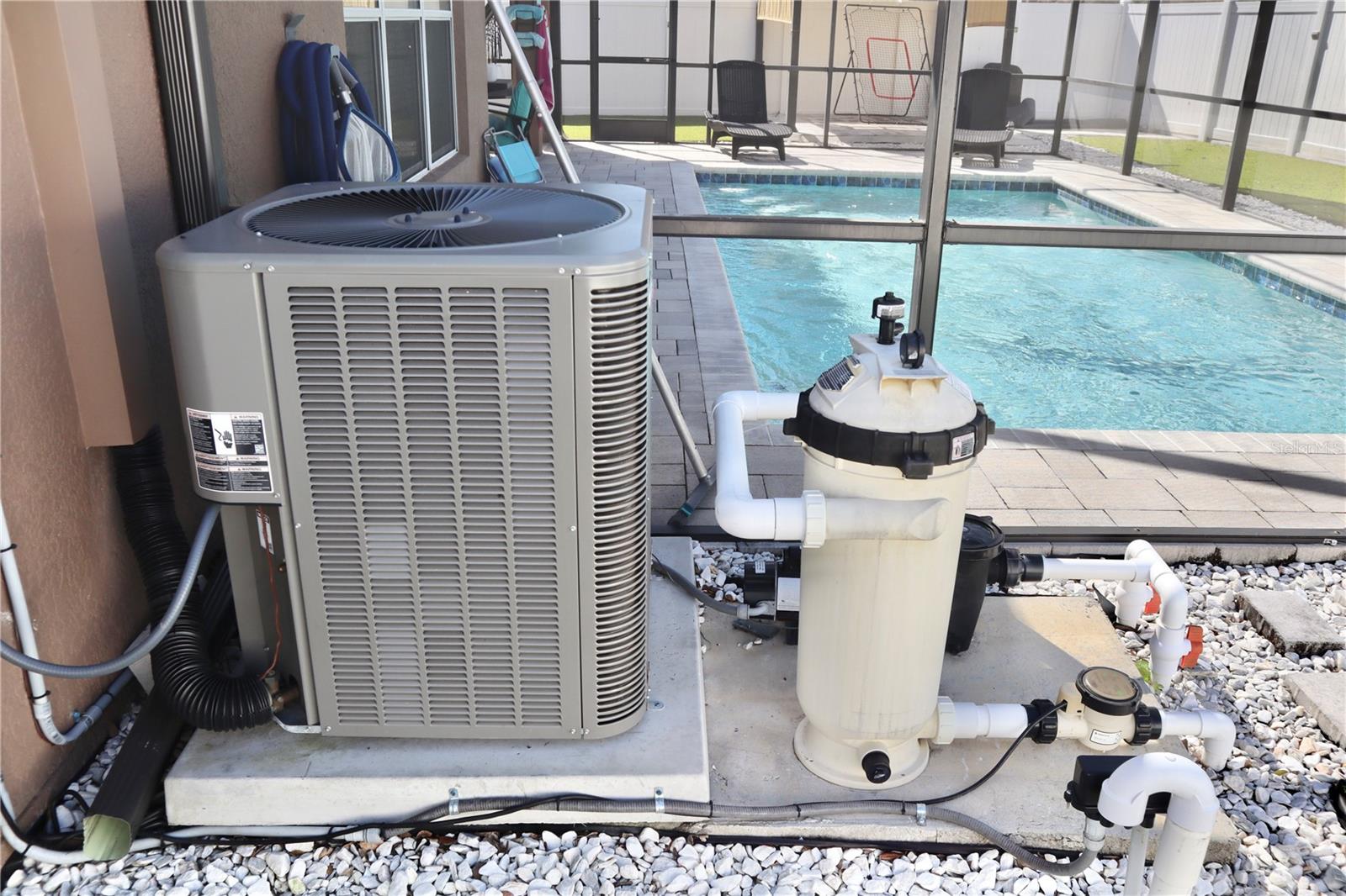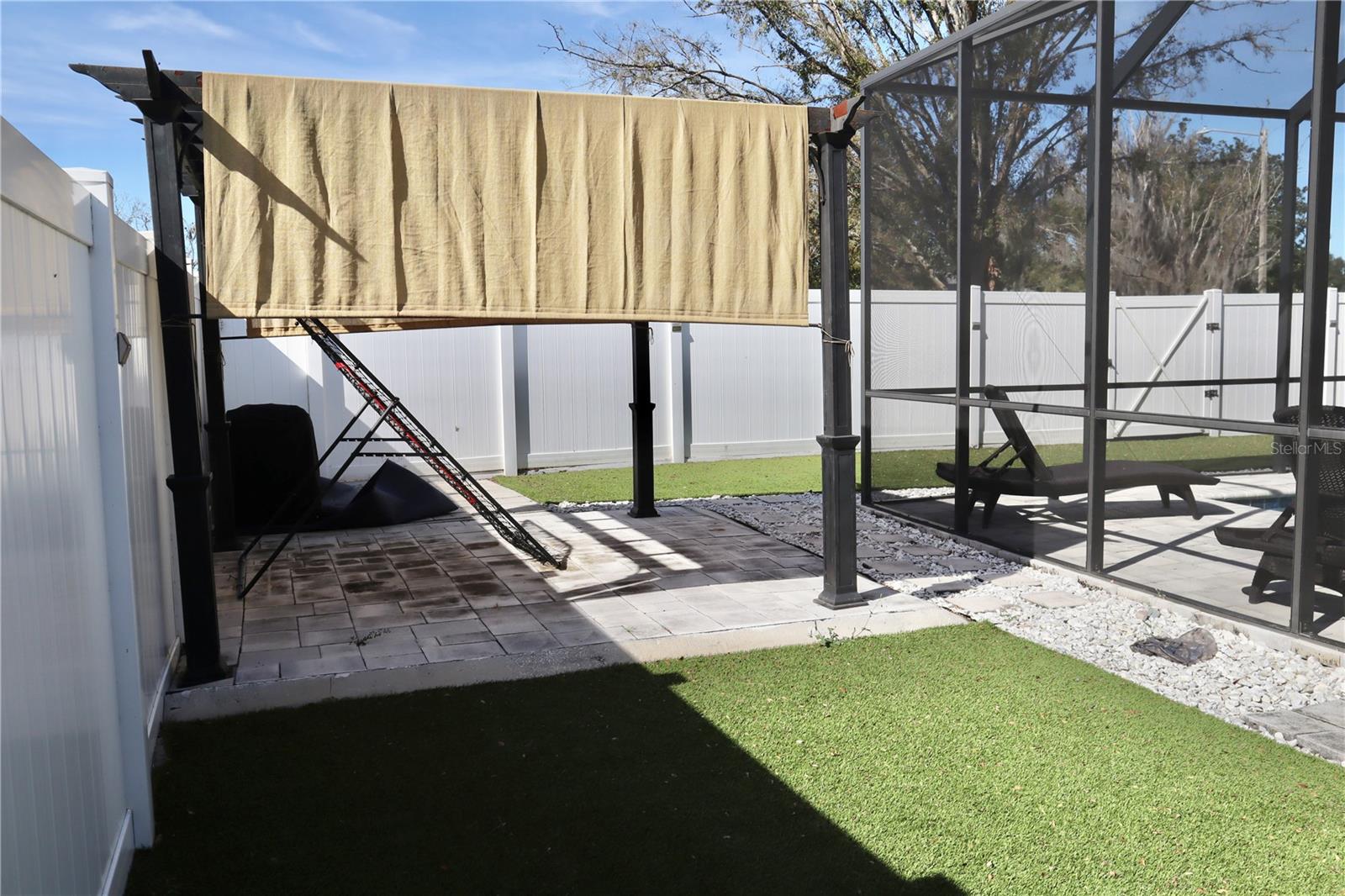 Must see this Pool Home with its own backyard oasis! 3-4 bedroom (flex room currently used as 4th bedroom), 2-Bath, 2 Car garage Located in the Highly Desirable Trillium Community, just one mile from the Suncoast Parkway and 30 minutes to Tampa Airport. This well-maintained 1,814 sq. ft. home features a brand-new roof (Jan. 2025), Newer A/C system (2 yrs old) and your own backyard Oasis with inground, screened enclosed pool (installed 3 years ago) with Saltwater pool filter, artificial turf backyard with firepit, and brick Pergola area. Backyard also has a covered Patio with lighting and fan with a fully fenced six ft Vinyl fence for privacy. The interior features a well-lit, welcoming environment with high ceilings and an open floor plan. This homeowner has taken pride of this home and has added many modern features to this home. First you will walk into spacious foyer area with a drop zone (mud room). The front, large flex room is currently being used as a 4th bedroom with Shiplap walls and Barn door. This room can also be used as a large den/office, mancave or guestroom. The kitchen, seamlessly connected to the family room, showcases a generous island with granite countertops and is equipped with contemporary stainless-steel appliances. The family room offers generous space and features a three-panel sliding glass door providing access to the covered lanai and a private outdoor area. The primary bedroom has three large windows and a walk-in closet. The en-suite includes a garden tub, dual-sink vanity, separate shower, and private water closet. All living areas and bedrooms feature laminate wood plank flooring, helping to prevent allergy issues. The Community amenities include a resort-style pool, with 2 cabanas with tables and chairs that can be used for birthday parties and other special events. Low monthly HOA with no CDD! This home has so many upgrades and unique features. Schedule your show today and see all it has to provide!