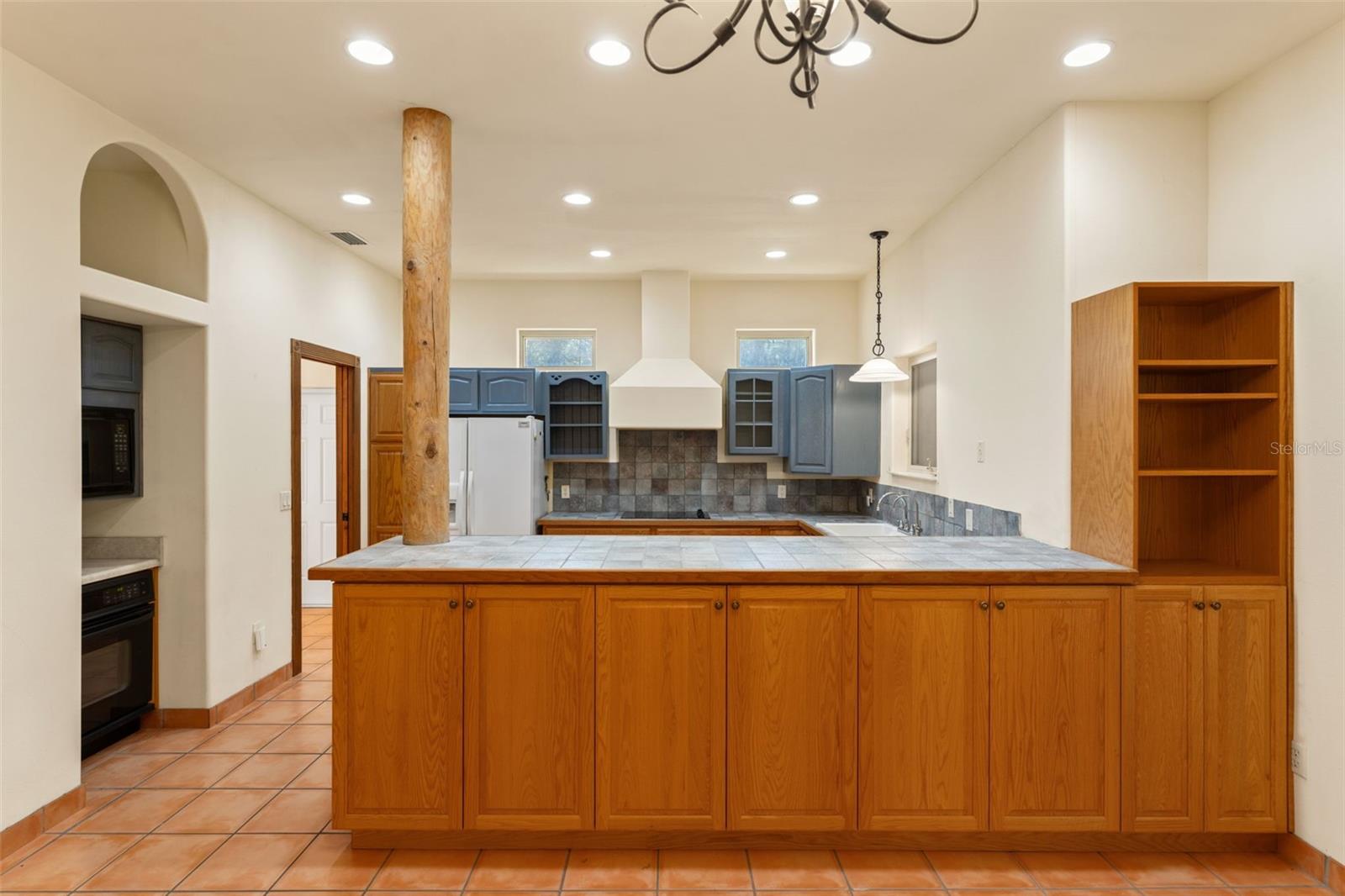 One or more photo(s) has been virtually staged. Welcome to this serene 4-bedroom, 2.5-bathroom residence nestled on nearly 5 acres in the peaceful community of Brooksville. Set back from the road and surrounded by mature trees, this property offers privacy, space, and NATURAL BEAUTY—ZONED AGRICULTURAL (BRING YOUR FARM ANIMALS INCLUDING HORSES)! IDEAL for outdoor living. Inside, you'll find thoughtfully designed OPEN living space with warm, rustic details. The OPEN-CONCEPT LIVING ROOM showcases EXPOSED LOG BEAMS, HIGH CEILINGS, and a seamless flow into the kitchen and dining areas. French doors, tile and wood-accented finishes, and large windows create a cozy yet spacious environment. The kitchen includes SOLID WOOD CABINETRY, BAR SEATING, and easy access to the adjacent dining area, where FRENCH DOORS lead out to enclosed porch with wet bar and further to the backyard patio. The home features TILE FLOORING throughout, blending durability with comfort. The PRIMARY BEDROOM offers a peaceful retreat with soft natural light, a WALK-IN CLOSET, and PRIVATE BATH ACCESS. Additional bedrooms are light-filled and versatile, ideal for guests, family members, or office space with two bedrooms sharing a Jack and Jill bath! Step outside to enjoy a COVERED BACK PORCH and OPEN PATIO—PERFECT FOR OUTDOOR DINING OR RELAXING UNDER THE TREES. The property includes a 2-CAR GARAGE, DETACHED RV GARAGE, and a WORKSHOP/BARN/WAREHOUSE—ideal for hobbies or additional storage needs. Additional highlights include a METAL ROOF, CENTRAL AIR AND ELECTRIC HEAT, a PRIVATE WELL AND SEPTIC SYSTEM, GENERATOR and UNDERGROUND UTILITIES. Located in a quiet community with a LOW HOA FEE and ZONED AG for flexible land use, this home offers a blend of COUNTRY CHARM and EVERYDAY COMFORT.