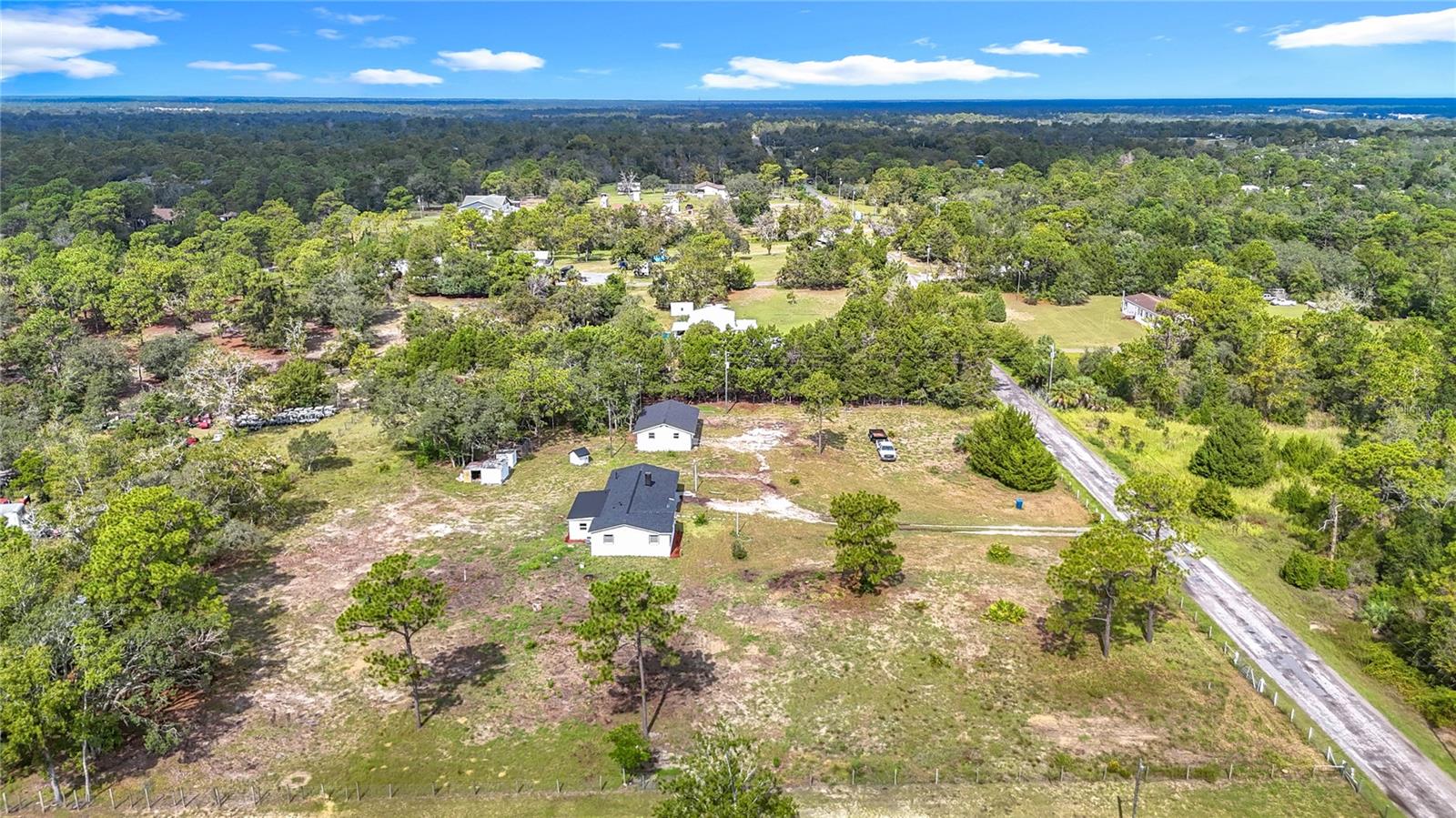 Welcome to this beautifully remodeled 4-bedroom, 2-bathroom home situated on 2.4 acres with endless possibilities. The property features a detached 3-car garage with electricity and a new roof, offering a unique opportunity to convert into a guest house, in-law suite, or rental unit. With two septic tanks and a private well, the land is ideal for adding mobile homes, bringing your animals, or building your dream estate. The neighboring properties already enjoy goats and chickens, making this the perfect setting for those who love country living. Inside, you’ll find a completely updated interior with new tile flooring throughout, a luxury kitchen with a large island, and brand-new stainless-steel appliances (never used). Both bathrooms have been tastefully renovated with high-end finishes and designer tile work. The spacious room is fully insulated and lined with windows, filling the home with natural light and views of the surrounding property. Additional upgrades include a new roof (home and garage), new water heater, and modern finishes throughout. With no HOA or CDD, this home offers true freedom. Bring your RV, boat, work vehicles, or even start a home-based business. Located just minutes from Walmart, BJ’s, shopping plazas, and with quick access to major highways, this home gives the perfect balance of peaceful country living with city convenience. Don’t miss this rare opportunity.