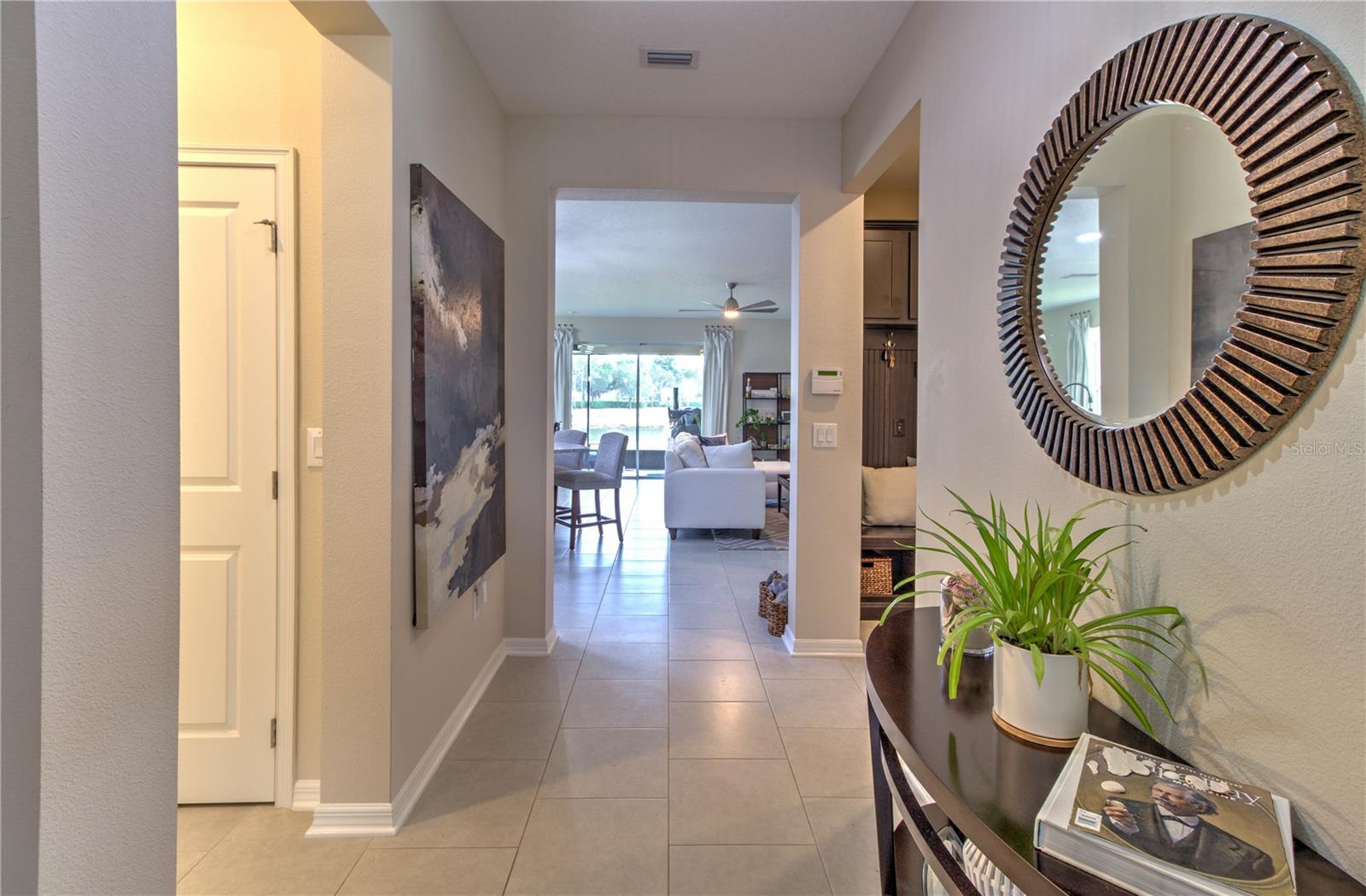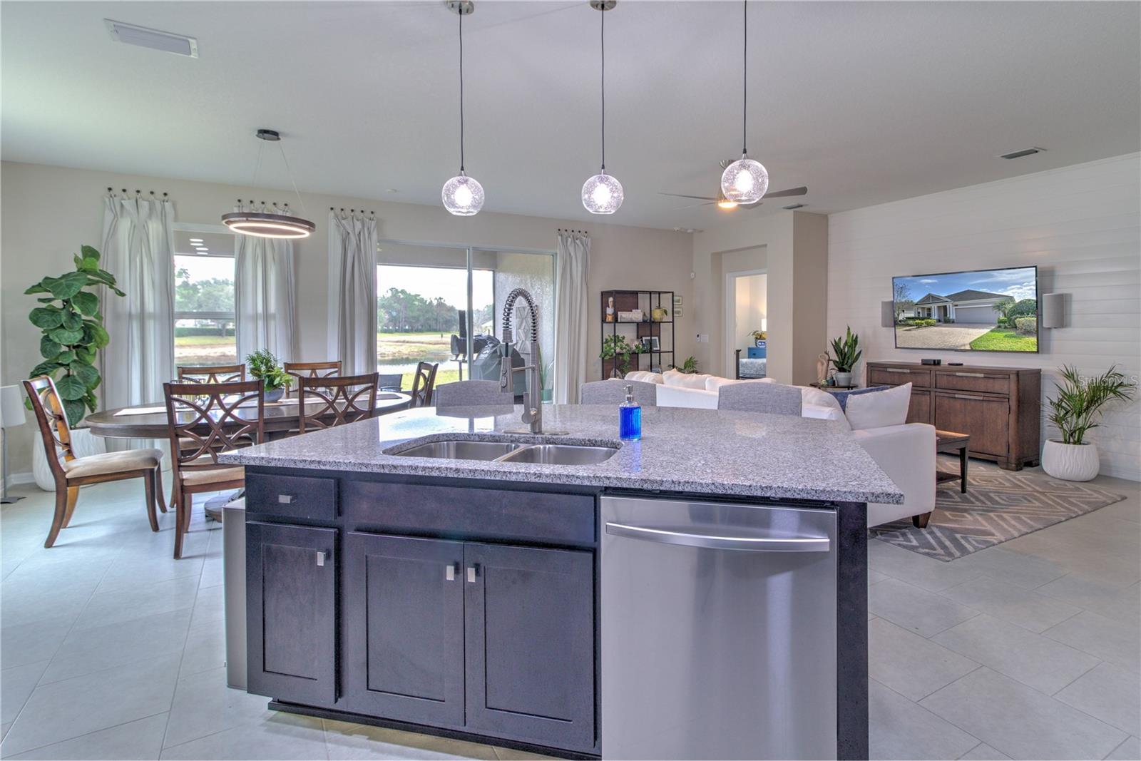 Former Elmwood Model Home in Cascades at Southern Hills (55+ Community) Welcome to this beautifully upgraded former Elmwood model home, located in the sought-after Cascades at Southern Hills Plantation—an active 55+ community designed for comfort, convenience, and connection. This thoughtfully designed 2-bedroom, 2-bath residence with a versatile flex room showcases the quality upgrades Inland Homes is known for. The gourmet kitchen is a standout, featuring quartz countertops, 42-inch cabinetry, stainless steel appliances, a natural gas range, breakfast bar, and closet pantry—perfect for both everyday living and entertaining. Additional enhancements include a whole-home water filtration system and an epoxy-coated garage floor. The spacious primary suite offers a large walk-in closet and a spa-inspired en-suite bath with dual vanities, an oversized walk-in shower, and a private water closet. Step outside to the screened-in lanai, where tranquil pond views and Florida wildlife create the perfect backdrop for relaxation. The HOA provides exceptional value, covering lawn care, pest control, irrigation, cable, internet, and access to resort-style amenities, including a clubhouse, pool, fitness center, pickleball and bocce courts, meeting spaces, kitchen facilities, and a full calendar of organized social activities. Just minutes away is the Southern Hills Plantation Club, home to a Pete Dye–designed championship golf course, with optional discounted memberships available. Conveniently located near shopping, hospitals, and approximately 45 minutes north of Tampa, this home offers an exceptional active-adult lifestyle with something for everyone to enjoy.