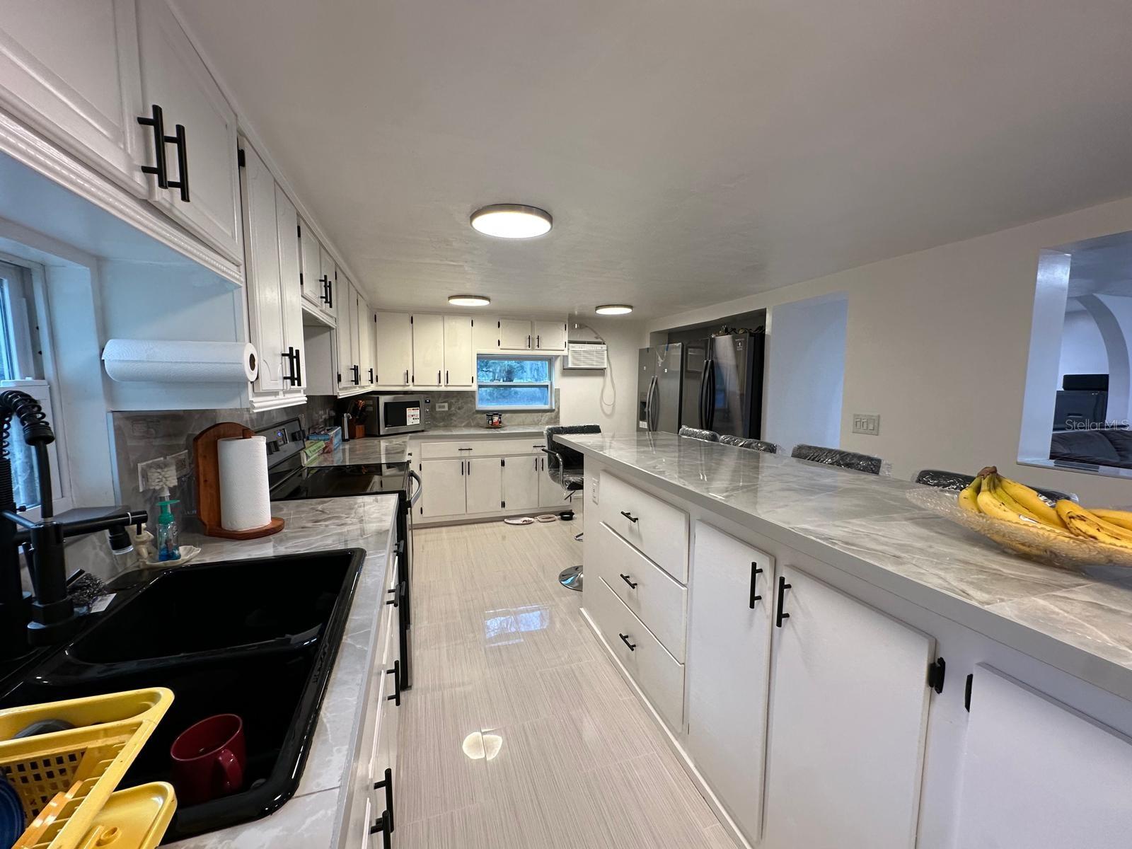 Completely Renovated double-wide manufactured home on over half an acre with NO HOA, NO CDD, and NOT in a Flood Zone! Located at 7690 Gordon Loop, Brooksville, this spacious 4-bedroom, 2-bath home with a dedicated office offers approximately 1,800 sq ft under roof and has been extensively updated from Top to Bottom. The heart of the home is a custom-built Chef’s Kitchen (approx. 26’ x 12’) featuring expansive Marble-style Countertops, abundant cabinetry, two new Double-door Refrigerators, and all New appliances, making it ideal for entertaining or large households. A massive center island provides seating and storage and opens seamlessly into the living and dining areas, creating a modern, open-concept layout. The home features New marble tile Flooring, new Cement board flooring, and double sub-flooring throughout, along with a Level 5 drywall finish for a clean, contemporary look. Both bathrooms have been fully renovated with new vanities, sinks, toilets, and faucets. Major upgrades include new Hurricane-impact Windows and exterior Doors, new Siding, a Metal Roof, new Plumbing and sewer lines, and a new motel-style HVAC system with a Wi-Fi controller. The Updated Electrical system includes a 50-amp RV connection and a generator hookup capable of Powering the entire home, including refrigerators. The layout offers exceptional flexibility and can accommodate a potential in-law suite, with plumbing Already in place and two separate entrances, or serve as a traditional bedroom setup. City water and sewer are connected, and there is potential space with Existing Utility Hookups, including plumbing for a future Third Bathroom, offering added flexibility for expansion or additional living space. Property may be rented long-term or used for short-term rental such as Airbnb or VRBO. Buyers can finance this property.