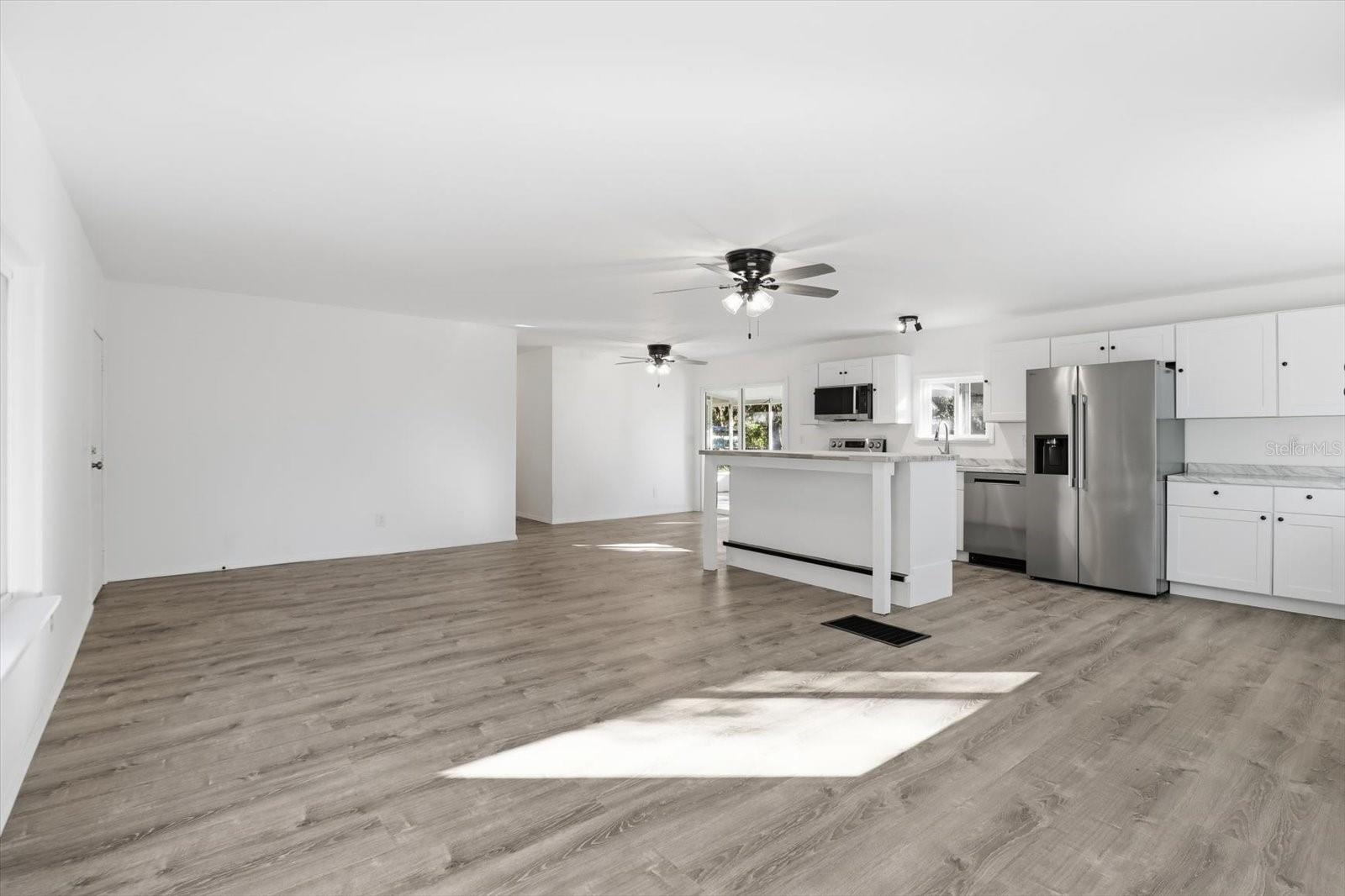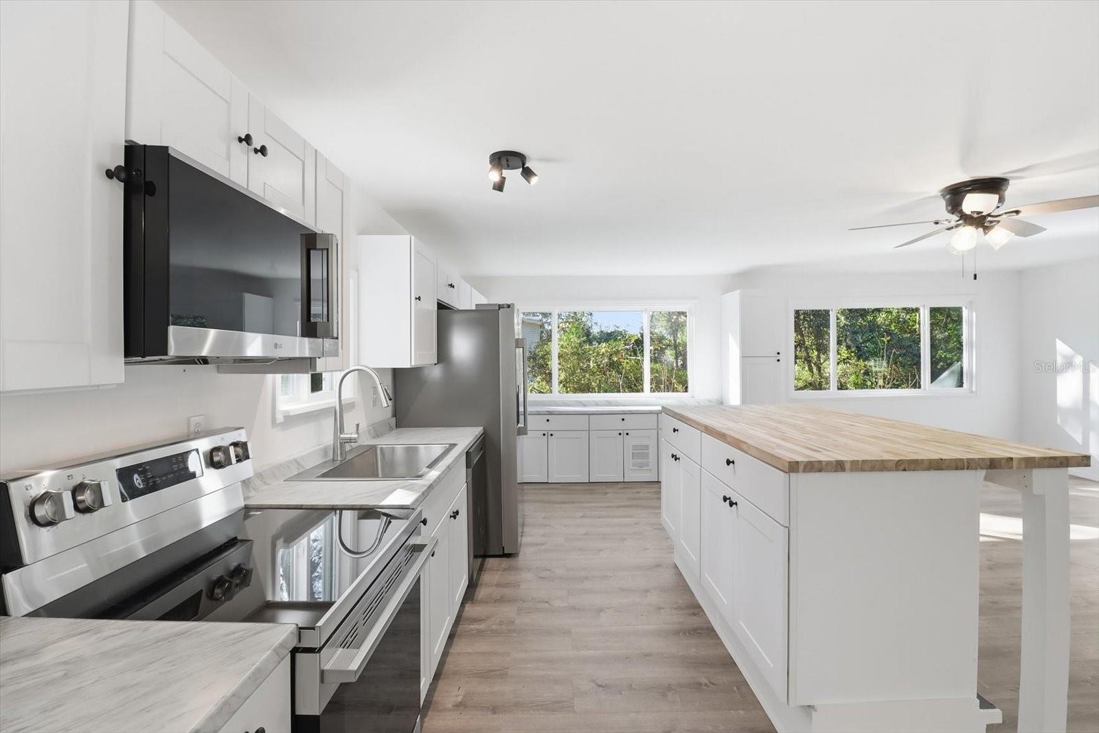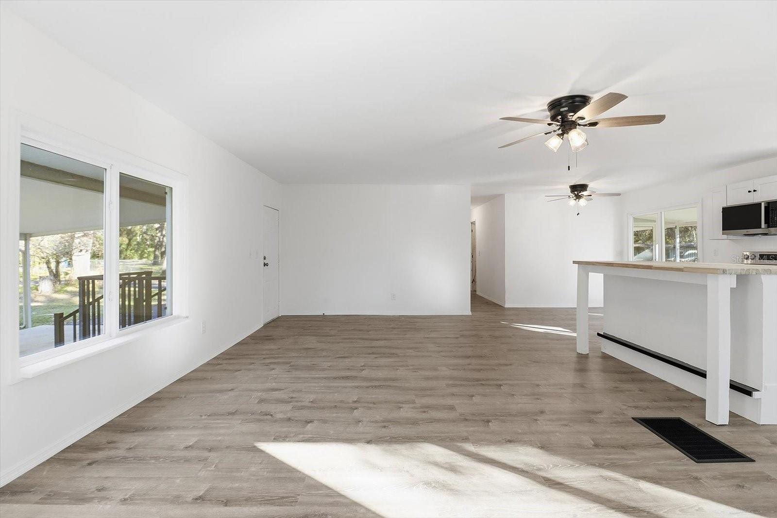 WOW—this one has it ALL! Welcome to this updated 3-bedroom, 2-bath doublewide that’s bursting with upgrades and charm inside and out. From the moment you step inside, you’ll love the bright, open floor plan, oversized living room, brand-new luxury vinyl flooring throughout, fresh paint, drywall walls, new doors, stylish lighting, and loads of natural light from all-new windows and a new sliding glass door. The kitchen is a showstopper! Completely renovated with TONS of new cabinets, a large island, and an open layout that’s great for entertaining, hosting holidays, or everyday living. The primary suite features a walk-in closet and vanity area, while the guest bath brings fun personality with eye-catching retro tile. A separate laundry room tucked under the patio adds convenience you’ll appreciate every day. Outside is where this property really shines—set on a large, mostly fenced lot with mature trees, a circular drive, and two gated entrances for easy access. The updated metal roof adds peace of mind, and the large adorable shed with its own metal roof is ready to be your man cave, she shed, workshop, or ultimate storage space. Two carports and a relaxing screened porch round out this incredible setup. Move-in ready, loaded with upgrades, and packed with possibilities—this is more than a home, it’s a lifestyle. Schedule your showing today before it’s gone!
