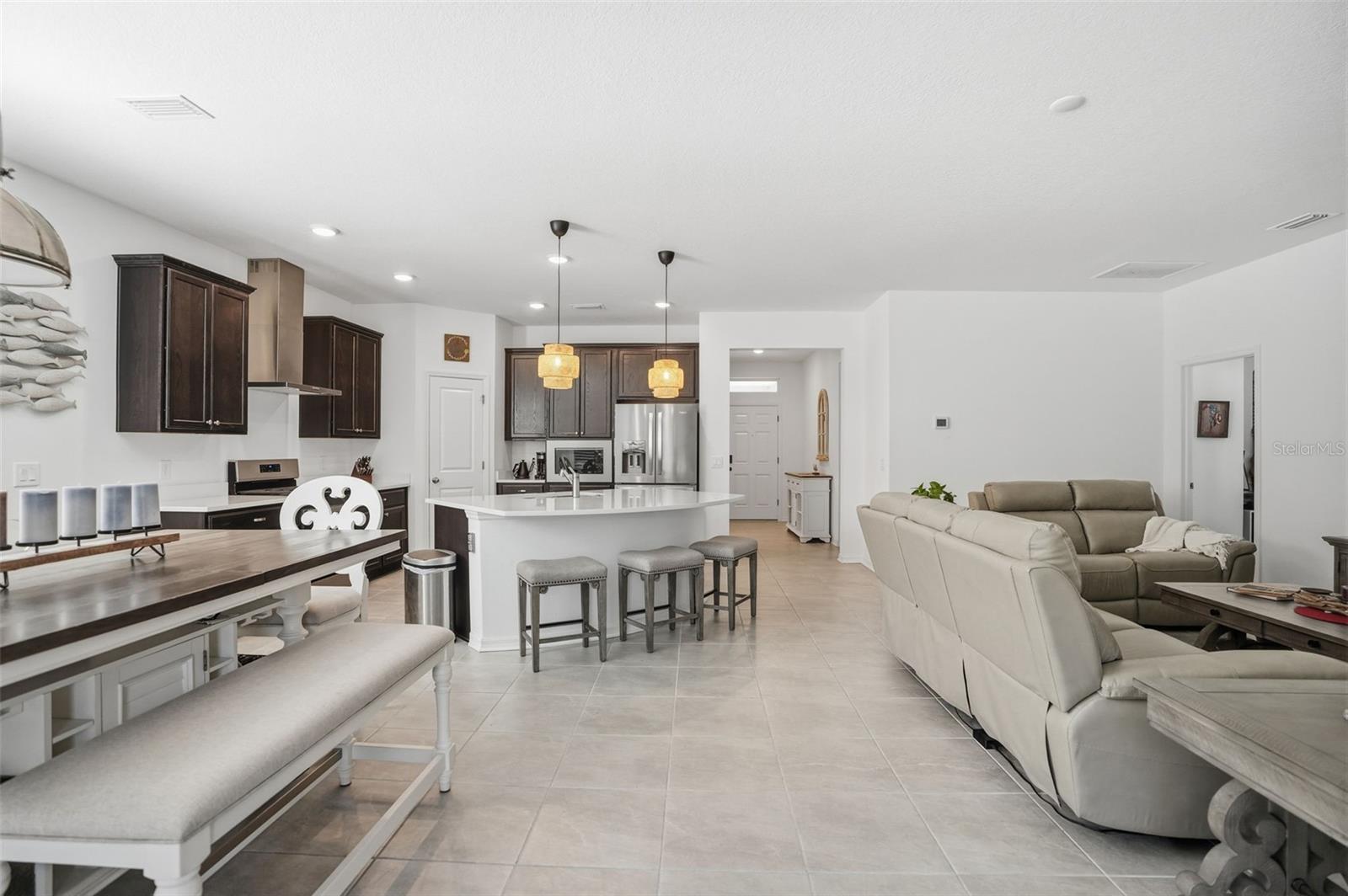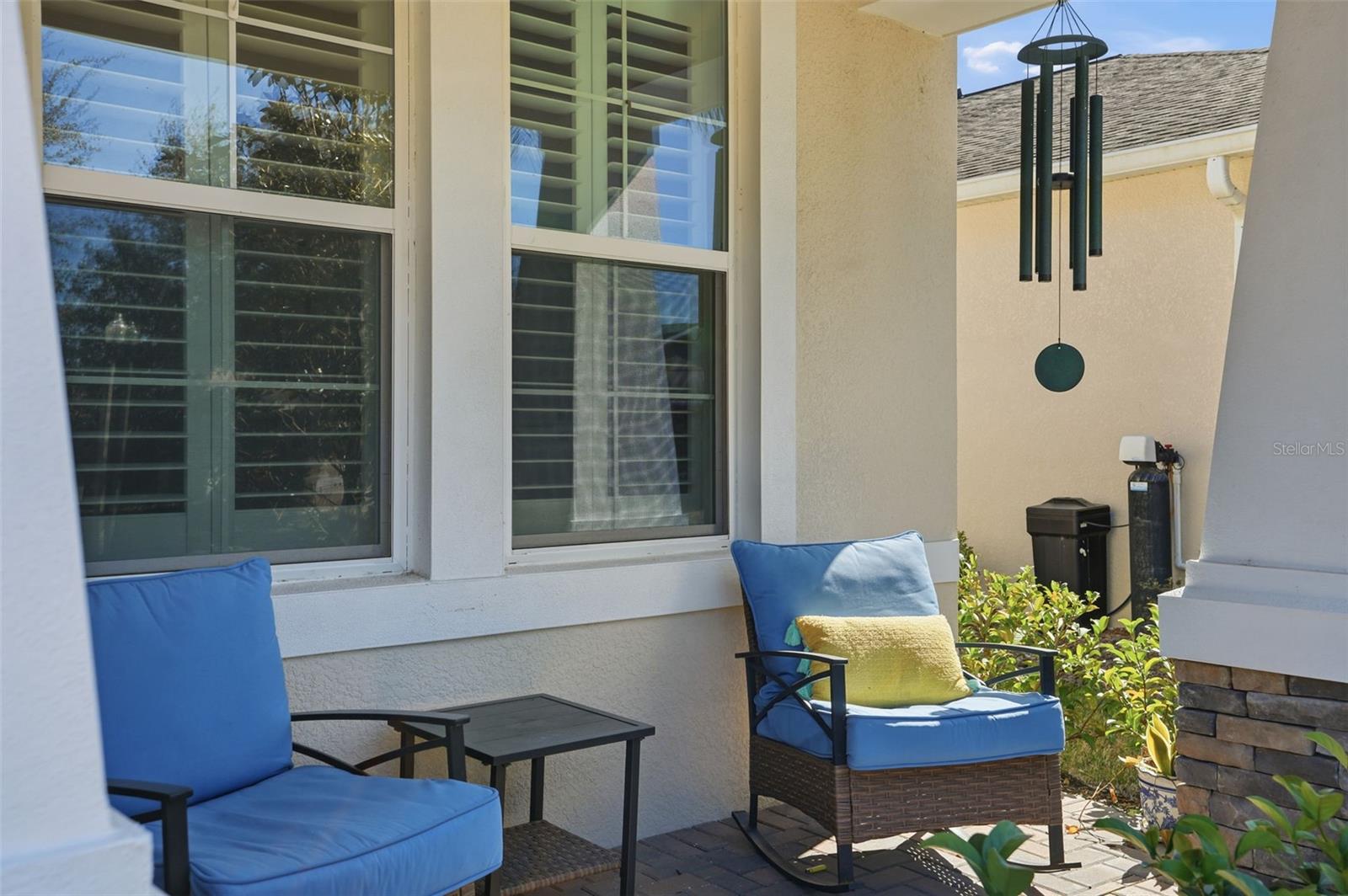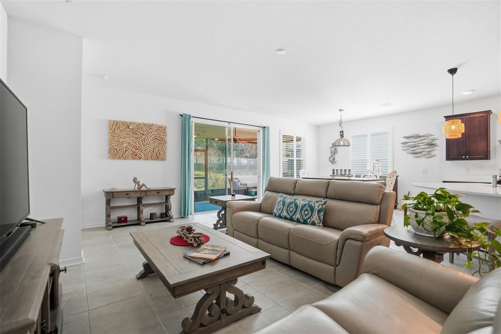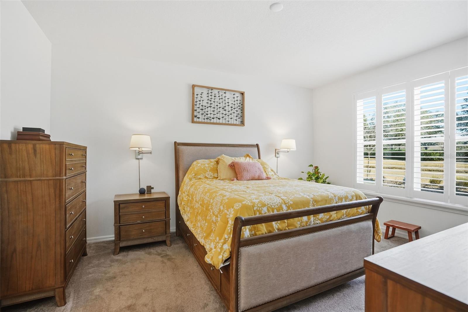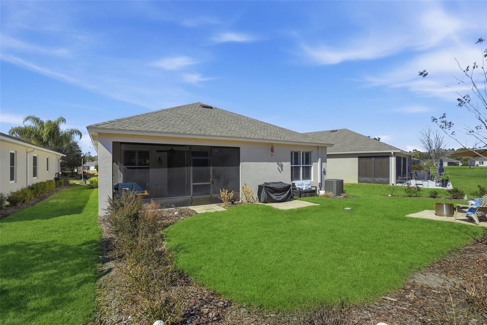 Impeccably upgraded and move-in ready, this 2-bedroom, 2-bath + flex room. This is the Elmwood Model with craftsman elevation. This home is located in the desirable 55+ gated community of The Cascades at Southern Hills and sits on a premium lot with backyard privacy. While new-construction homes may have the basics, this gem goes above and beyond with thoughtful, high-end upgrades that elevate daily living. Enjoy plantation shutters throughout, a screened-in lanai with privacy shades, beautifully installed pavers, enhanced landscaping, and custom ceiling-mounted storage racks in the garage—details that don’t come standard in new builds. The open-concept floor plan is bright and welcoming, complemented by upgraded lighting and a flexible layout that is ideal for a home office, craft space, or guest room. The kitchen features quartz countertops, stainless steel appliances, and a natural gas range. The spacious primary suite includes a walk-in closet and an en-suite bath with dual sinks and a large walk-in shower. A separate laundry room includes a washer and a gas dryer. Outside, relax year-round on your private lanai, or take advantage of the community's resort-style amenities: clubhouse, pool, fitness center, pickleball, bocce ball, and social activities—all covered under a low-maintenance HOA that also includes lawn care, pest control, irrigation, cable, and internet. Just minutes from the Southern Hills Plantation Club and its Pete Dye–designed championship golf course (optional discounted membership available). Convenient to shopping, healthcare, and dining—this is Florida living at its finest!