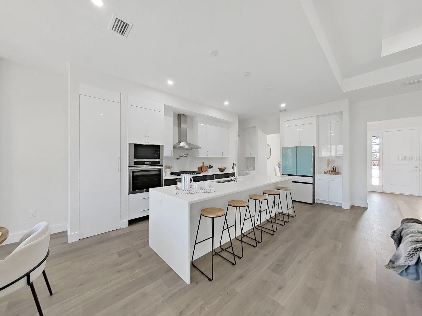 This newly constructed residence in Southern Hills Plantation captures the essence of boutique custom craftsmanship—where thoughtful design, refined finishes, and practical luxury come together effortlessly. Created for buyers who appreciate elevated living without unnecessary maintenance, the intelligently sized backyard offers just the right amount of outdoor space to enjoy—without the constant upkeep. It’s luxury that respects your time. The expansive covered lanai extends your living space outdoors in seamless fashion. A fully appointed outdoor kitchen—complete with built-in sink and refrigerator—creates the perfect setting for weekend gatherings, sunset dinners, or relaxed evenings with friends. There is ample room for both dining and lounge seating, transforming the backyard into a true entertainment destination. Inside, the gourmet kitchen serves as the centerpiece of the home. Quartz waterfall countertops create a dramatic focal point, complemented by premium appliances and a concealed oversized pantry that keeps everyday essentials discreetly tucked away. A dedicated coffee and tea bar space adds a thoughtful touch—designed for quiet mornings, effortless hosting, and daily rituals done beautifully. Just beyond, a light-filled breakfast nook provides an inviting setting for casual meals and meaningful conversation. Custom-built wooden closets with integrated LED lighting elevate organization into an experience. Spa-inspired bathrooms feature ceiling-mounted rain showers and refined finishes that bring a resort-quality feel to everyday routines. Throughout the home, subtle architectural details and precision craftsmanship reflect the care and intention of a boutique builder—far beyond standard new construction. A spacious three-car garage and wide paved driveway ensure convenience for both homeowners and guests, blending function with understated elegance. This is not simply a move-in-ready home—it is a carefully curated living experience for those who value quality, efficiency, and timeless design without concession.